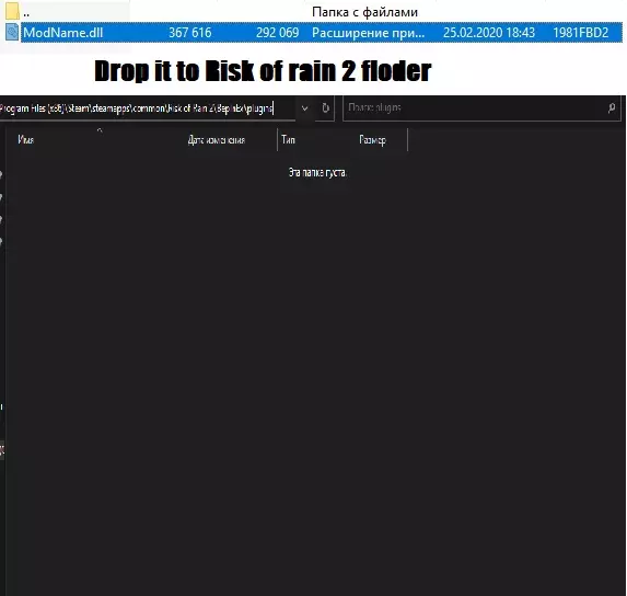 现在打开你下载的压缩包,找到DLL文件,然后将其拖放到“steamapps common Risk of Rain 2 BepInEx plugins”文件夹中。