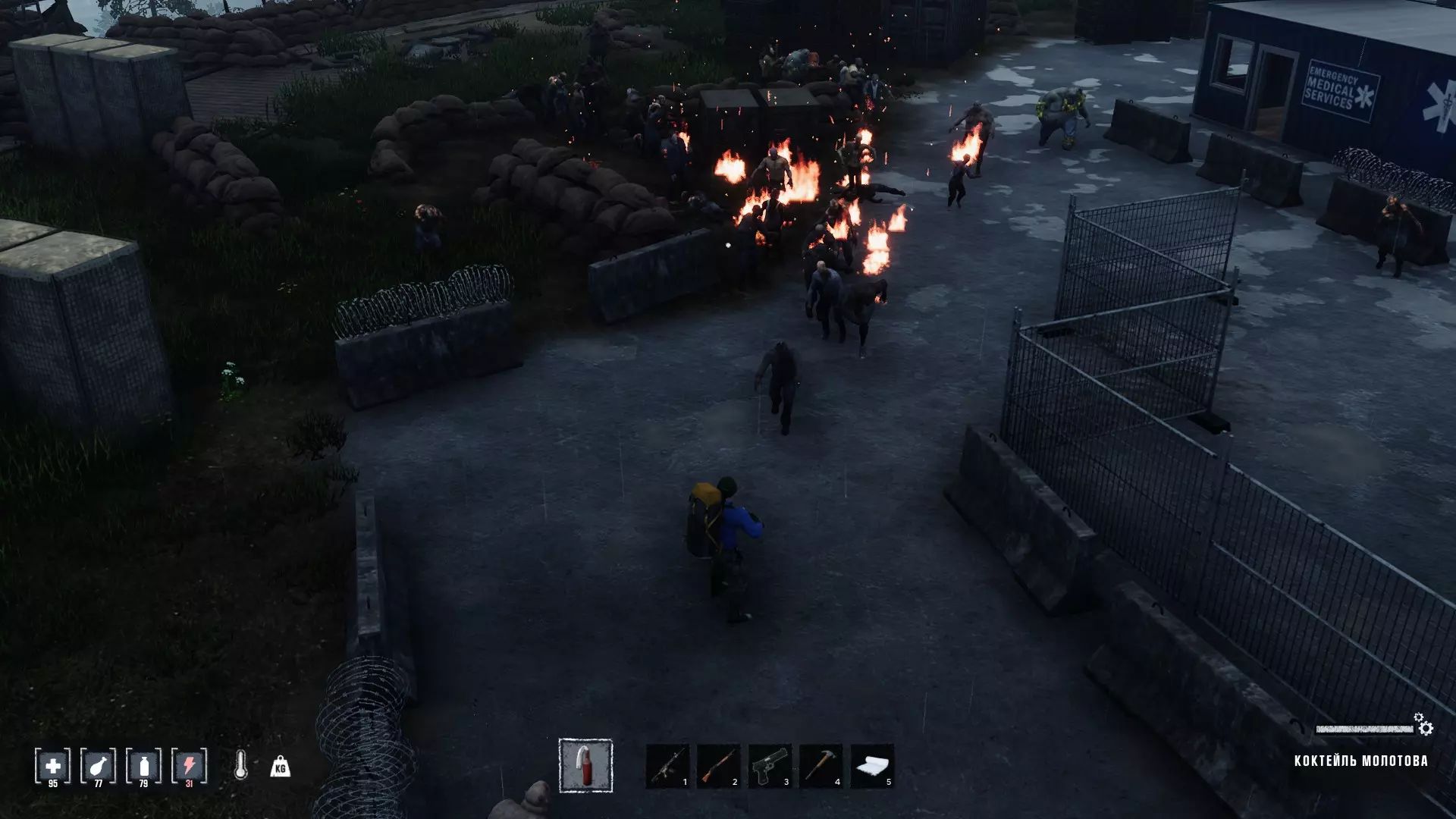 手榴弹、燃烧瓶。后者相当容易用烈酒和布条绷带制作。对群体敌人最为有效,你可以故意聚集敌人,例如用石头打破玻璃,或者在被感染的群体周围跑动,逐渐将他们聚集起来(先射杀最快的那些)。可惜它们没有额外的【】。背包格子总是不够用,必须在绷带和燃烧瓶之间做选择,而在战斗中做这种选择非常困难(除非爬上卡车)。 同样地,如果僵尸群里有穿着黄色或橙色防化服的僵尸,击中它背上的气瓶(或身体)就会引发爆炸。这样可以节省大量弹药。 别忘了从商人那里购买所有需要的弹药。他们高度重视弹药和武器作为交换货币,以及其他稀有资源(见交易部分)。当你拥有载具后,就可以在后备箱中存放额外的武器和弹药。 在哪里获取?