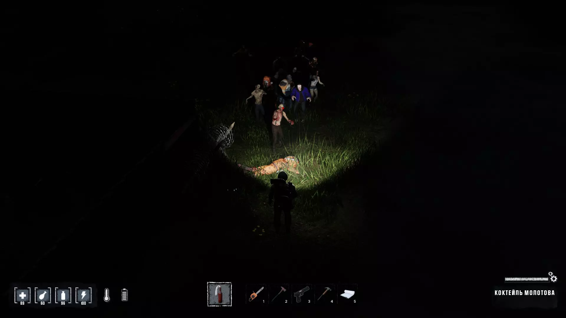 所有近战武器分为轻型(瞄准时有小刀图标)、中型(锤子图标)和重型(可能是大锤图标?)。 高尔夫球杆或消防斧等武器的攻击距离相当远,这能让你与僵尸保持安全距离。游戏初期最好优先提升冷兵器技能。如果不算武士刀的话,我最喜欢的武器是消防斧和锋利的砍刀。 因此,如果你点了这些技能,并且耐力值达到最大,在普通难度下可以非常高效地用1-2刀砍倒僵尸。近战武器和工具可以用胶带修理【中型武器】,用磨刀石修理【轻型武器】。你的耐力值对攻击质量影响很大。如果用斧头攻击僵尸时耐力值为5,攻击会很弱且效果不佳。因此,最好多积累一些耐力,或者尽量让耐力保持在白色或浅色区域。 同样,僵尸散发的有毒气体也会极大影响攻击的准确性。当靠近这类敌人并受到毒气伤害时,你在大多数情况下都会不可避免地攻击落空。 刀具可能是对抗僵尸最糟糕的武器,因为它们的攻击距离极近,你会不断受到伤害。但如果你学会闪避,刀具对付单个目标时会有效得多。