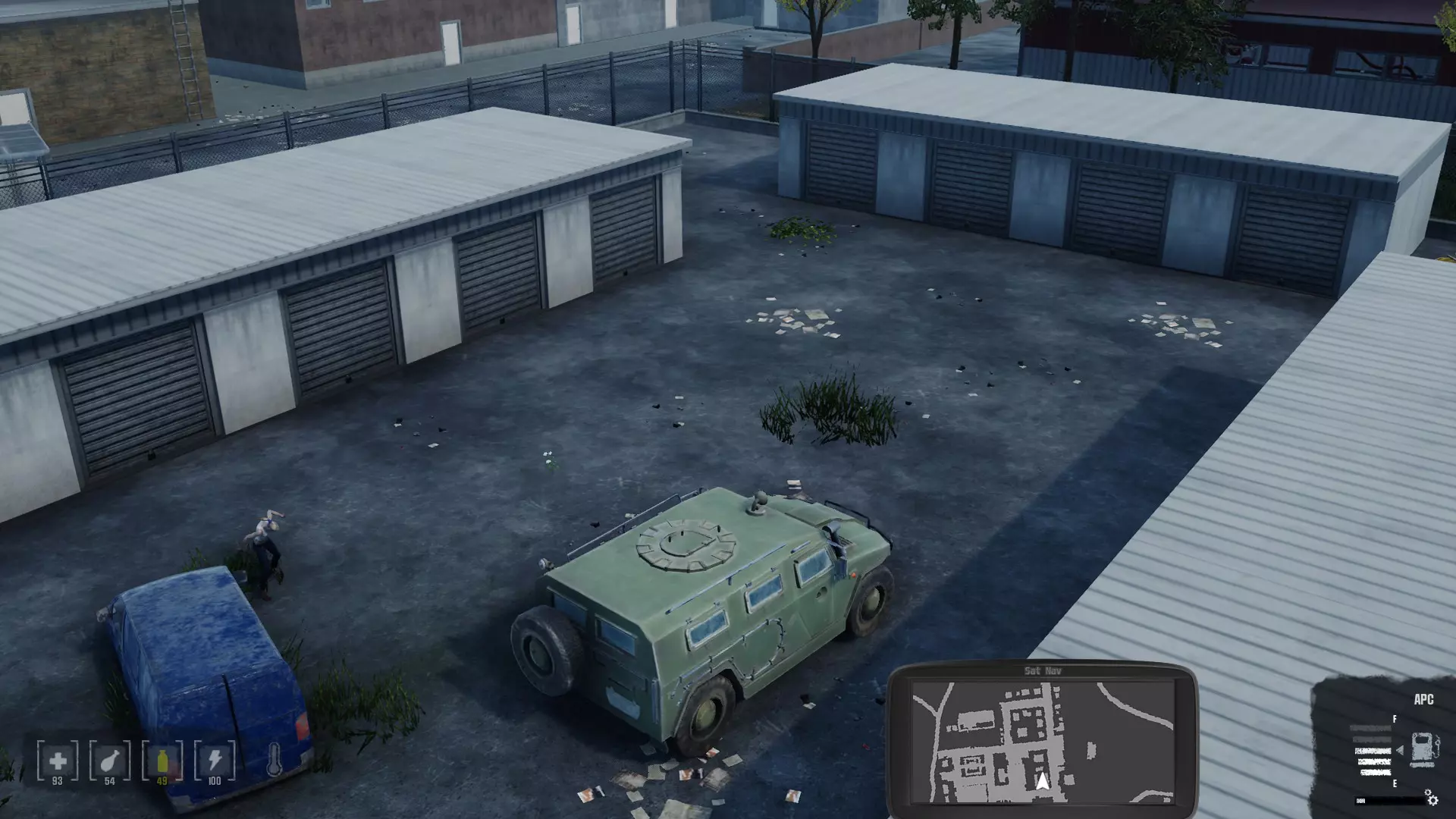 此外,在地图中心的哈德森城(Huddson city)这座大城市里,有一个车库式仓库,里面有大量战利品。这些仓库的门可以被破坏。类似的储物点有时也会出现在小村庄里,但数量较少。