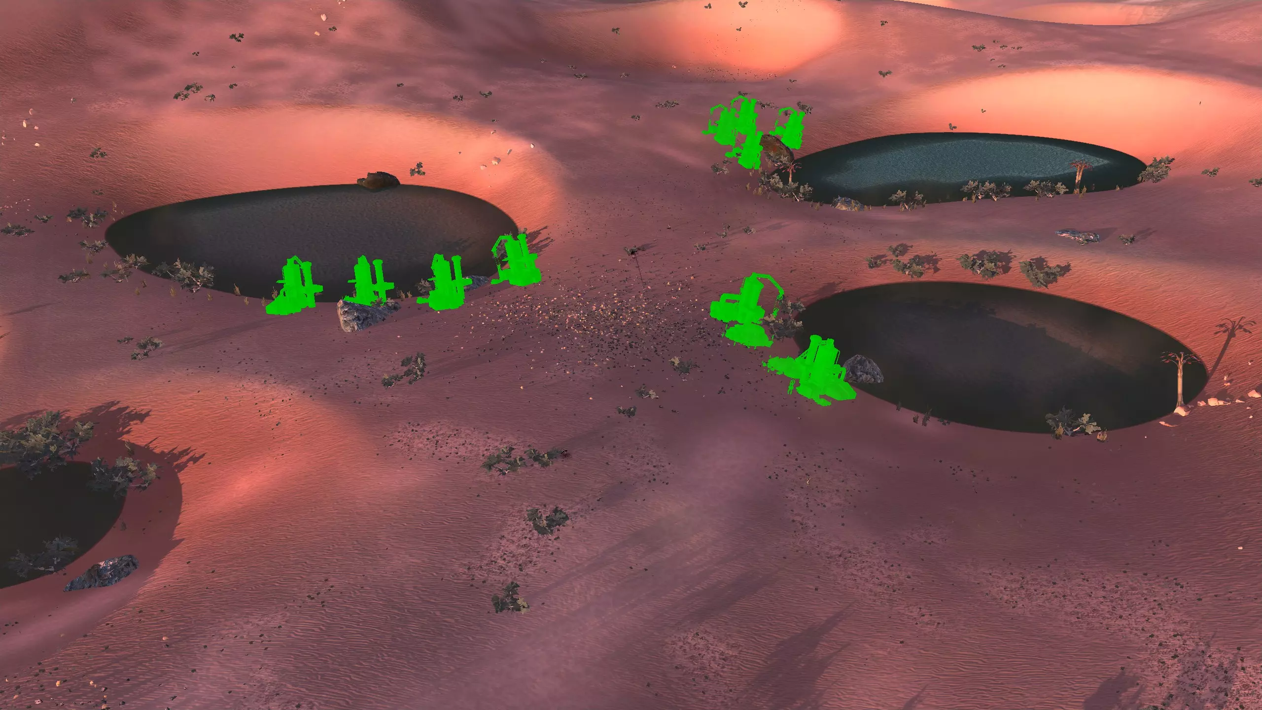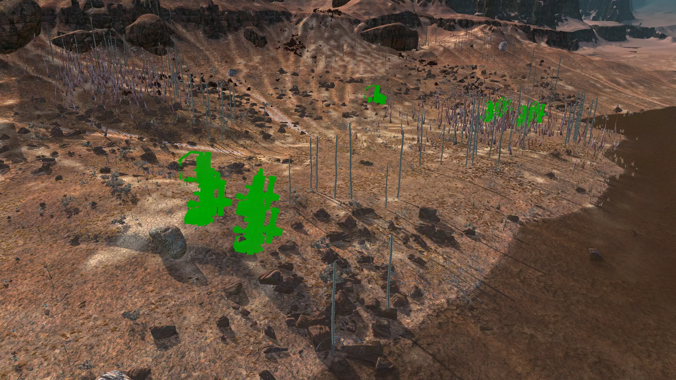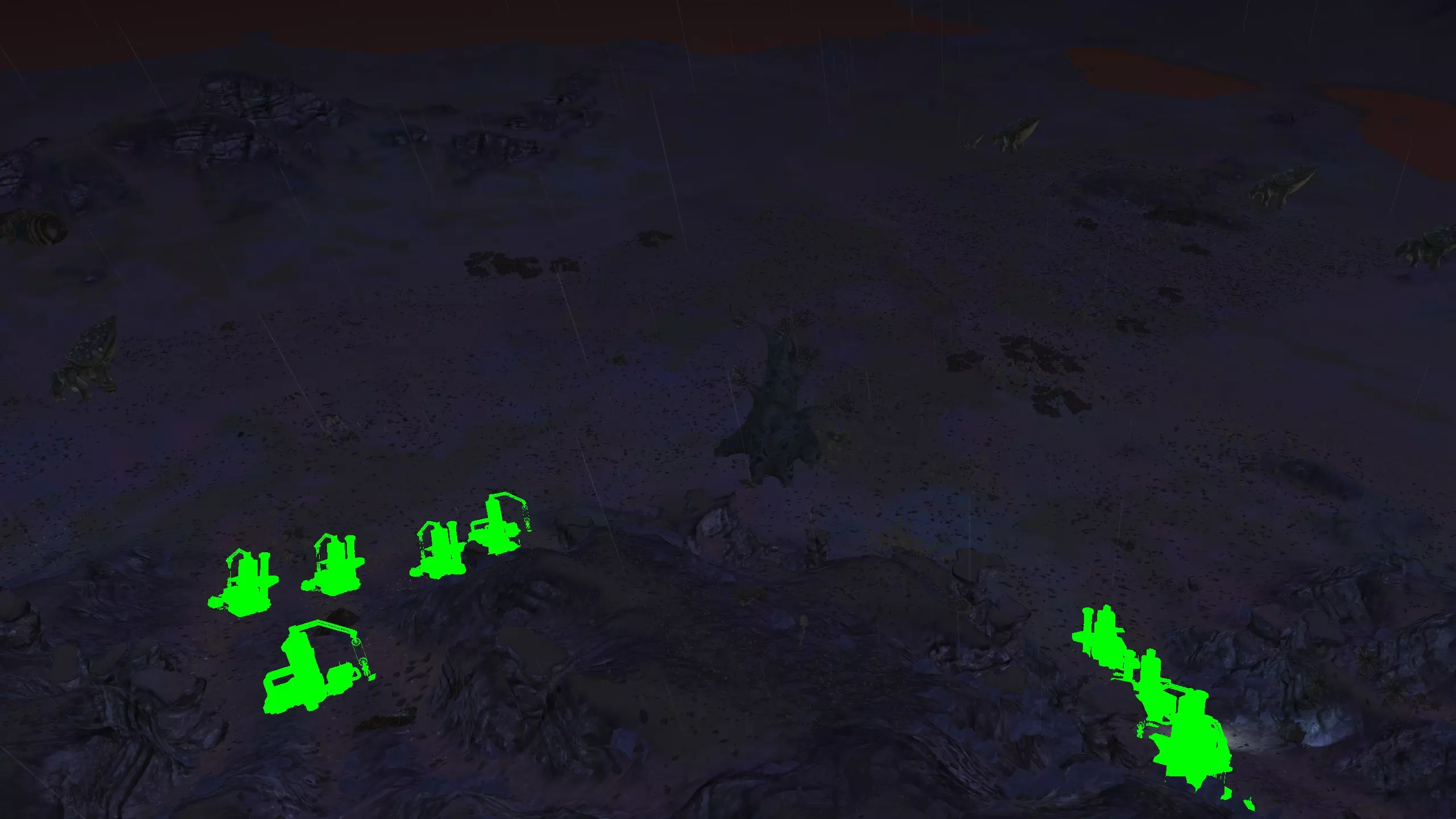 描述:小心酸雨!幸运的是,这是个相对轻微的问题。总之,这里是燃烧森林。酸雨!血蜘蛛。血蜘蛛可能相当可怕,而且被它们击败的后果相当严重,所以要小心。 如果把钻井机放得太靠山下,在山下的铁矿周围筑墙会有点麻烦。此外,你需要把水井建在更靠山下的位置。 资源:90-100%铁矿,100%铜矿,50%石头,10-100%水,100%肥沃度 危险:血蜘蛛!沼泽迅猛龙会吃你的庄稼。 黑色沙漠 警告:如果你的人类、谢克族和蜂巢族角色没有100%的防毒保护(雾面面具、III型面具或沼泽忍者面具),切勿进入此区域!特此警告!此外,不建议将【黑色沙漠】作为你的第一个基地,除非你玩的是纯骷髅派系。