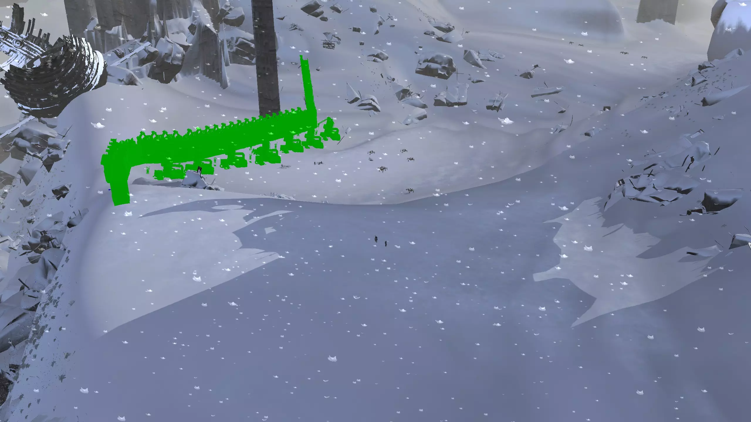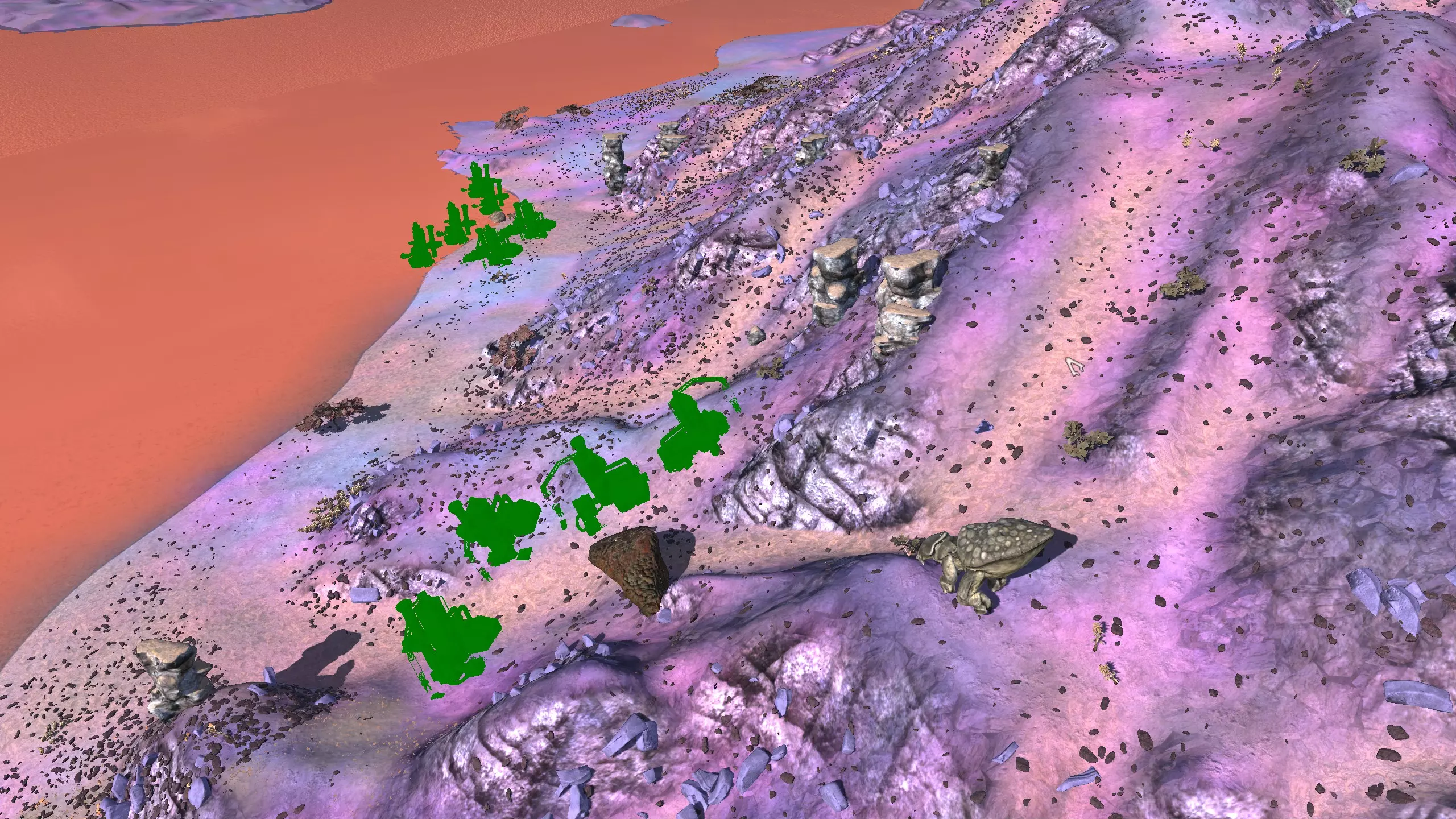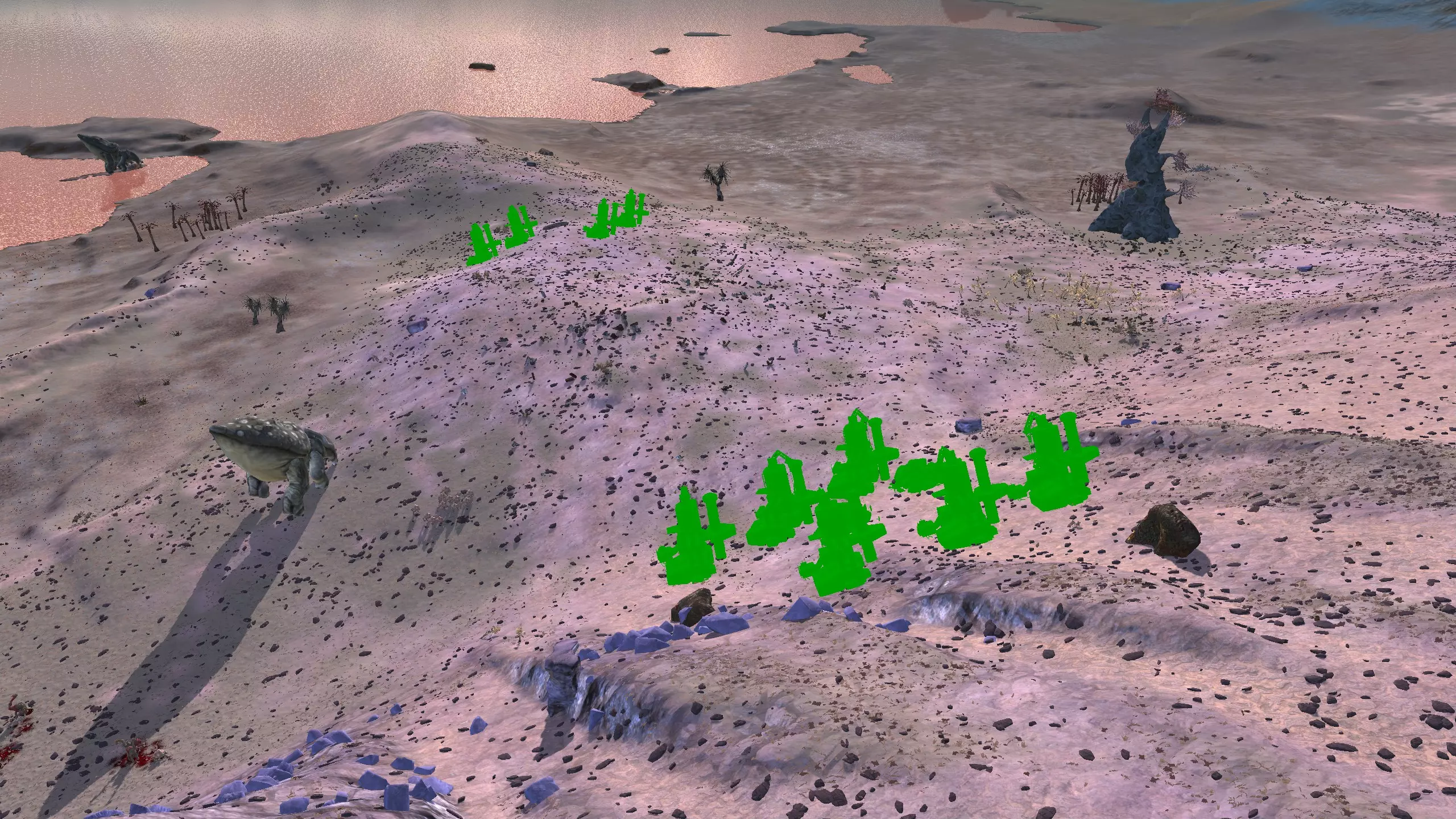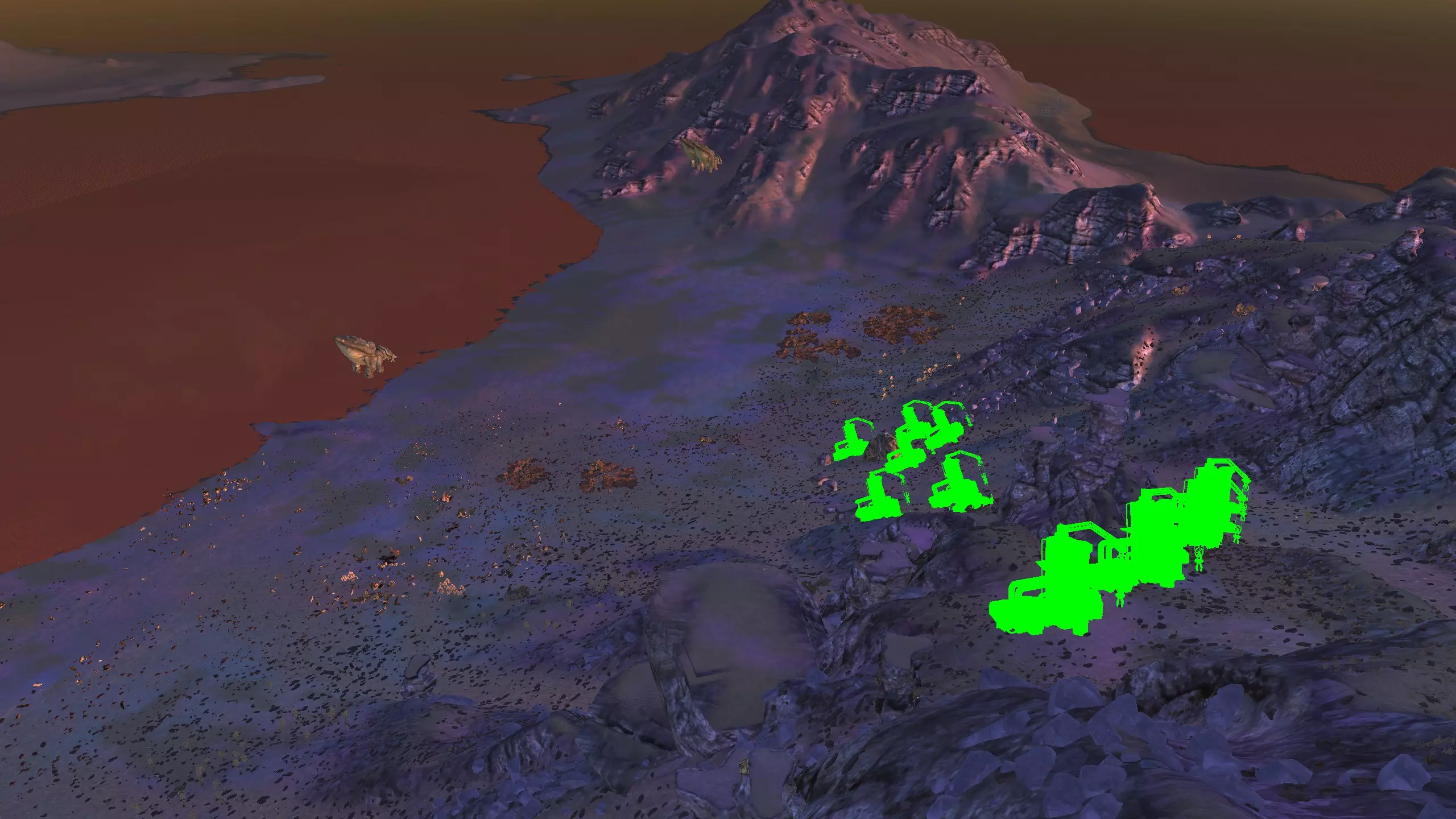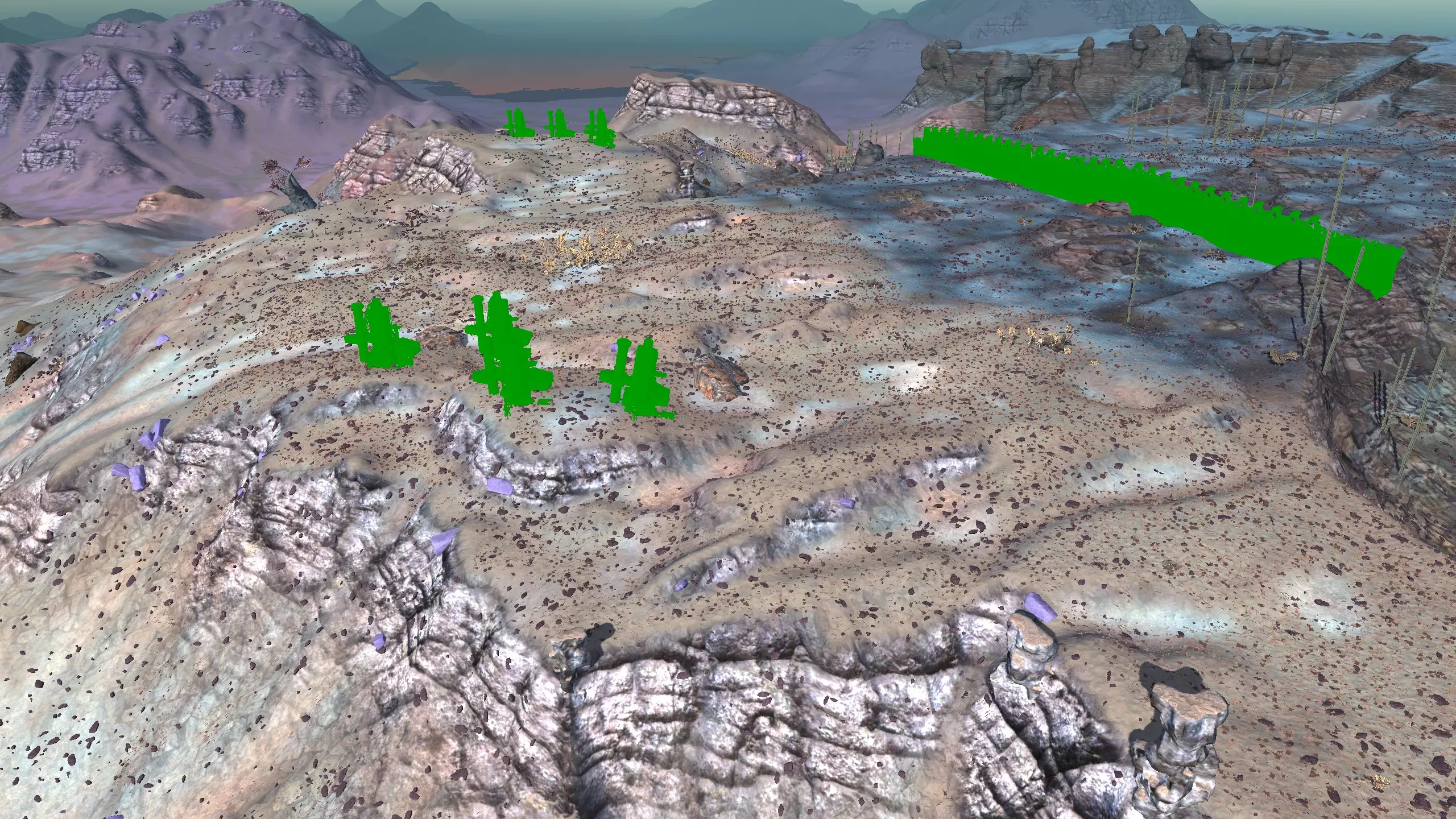 我决定将这里命名为蜘蛛平原而非舜,因为首先只有这片山谷的南端才算舜的范围,其次这个山谷在地图上看起来就像一颗恶心的绿色蜘蛛卵。 不过话说回来,我把这个地点放在这里主要是因为,很难拍到一张好的截图,但这个地方有种独特的风貌,它正好位于一个被极高山脉环绕的山谷盆地中,而且地势平坦。虽然确实需要模组才能充分利用这个地点,但它还是挺有意思的,值得一看。 资源:0% 铁矿,约60% 铜矿,100% 石料,60% 水源,90% 肥沃度 危险:皮肤蜘蛛、 kral's chosen、狂战士、骨犬、骸骨乐队。这里还会触发沙克族事件,比如征税等。