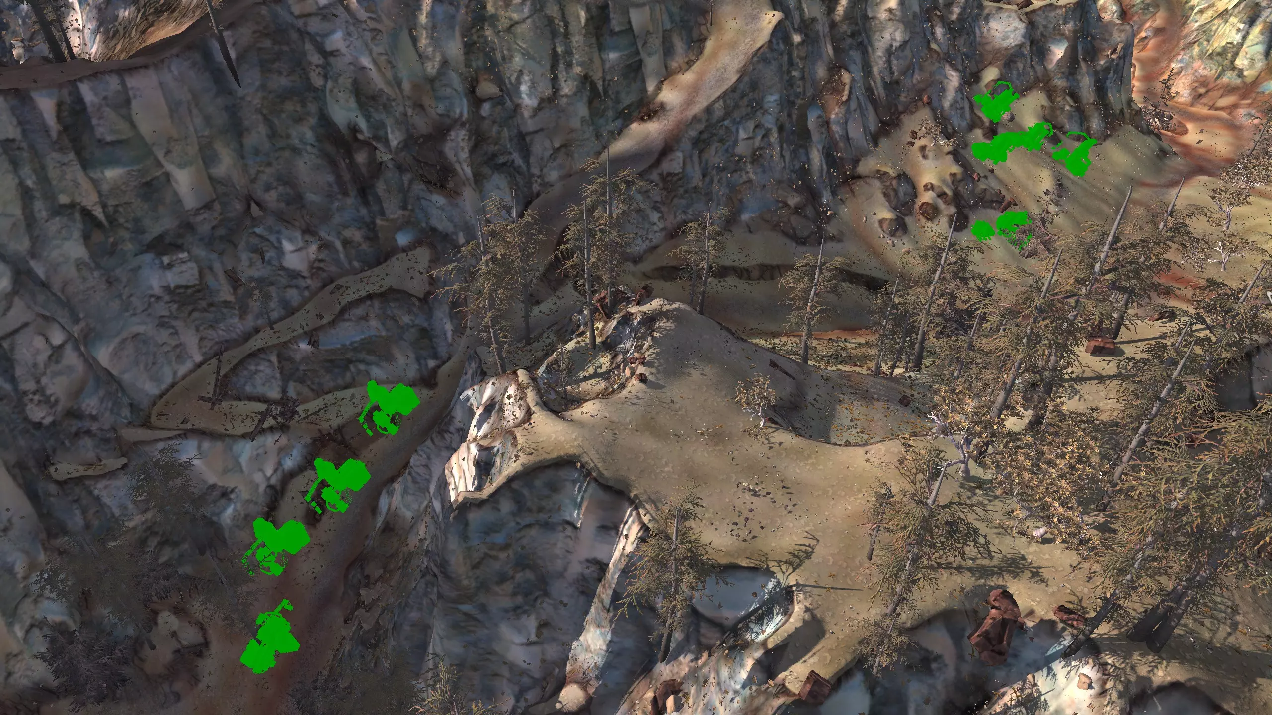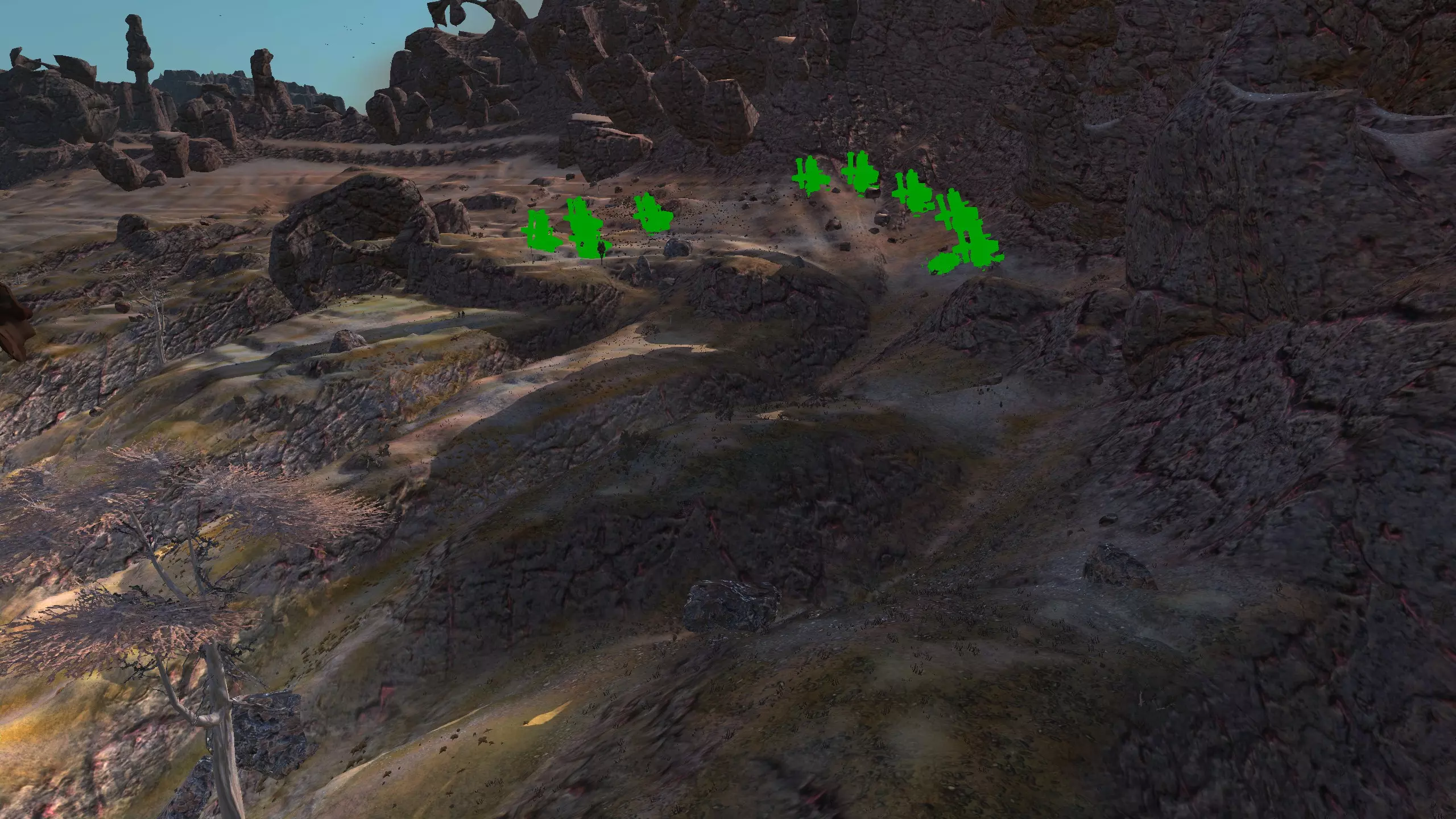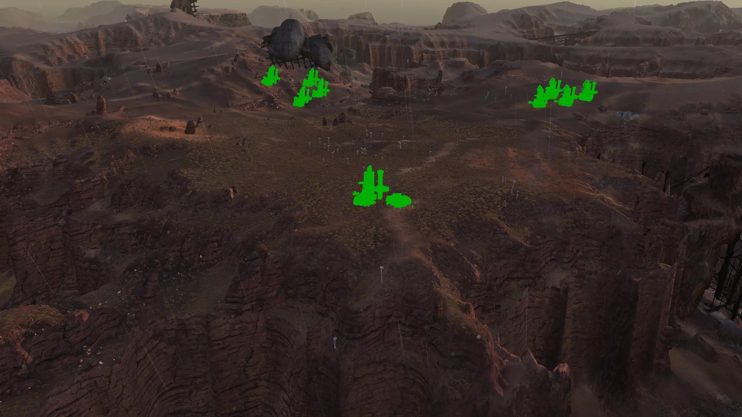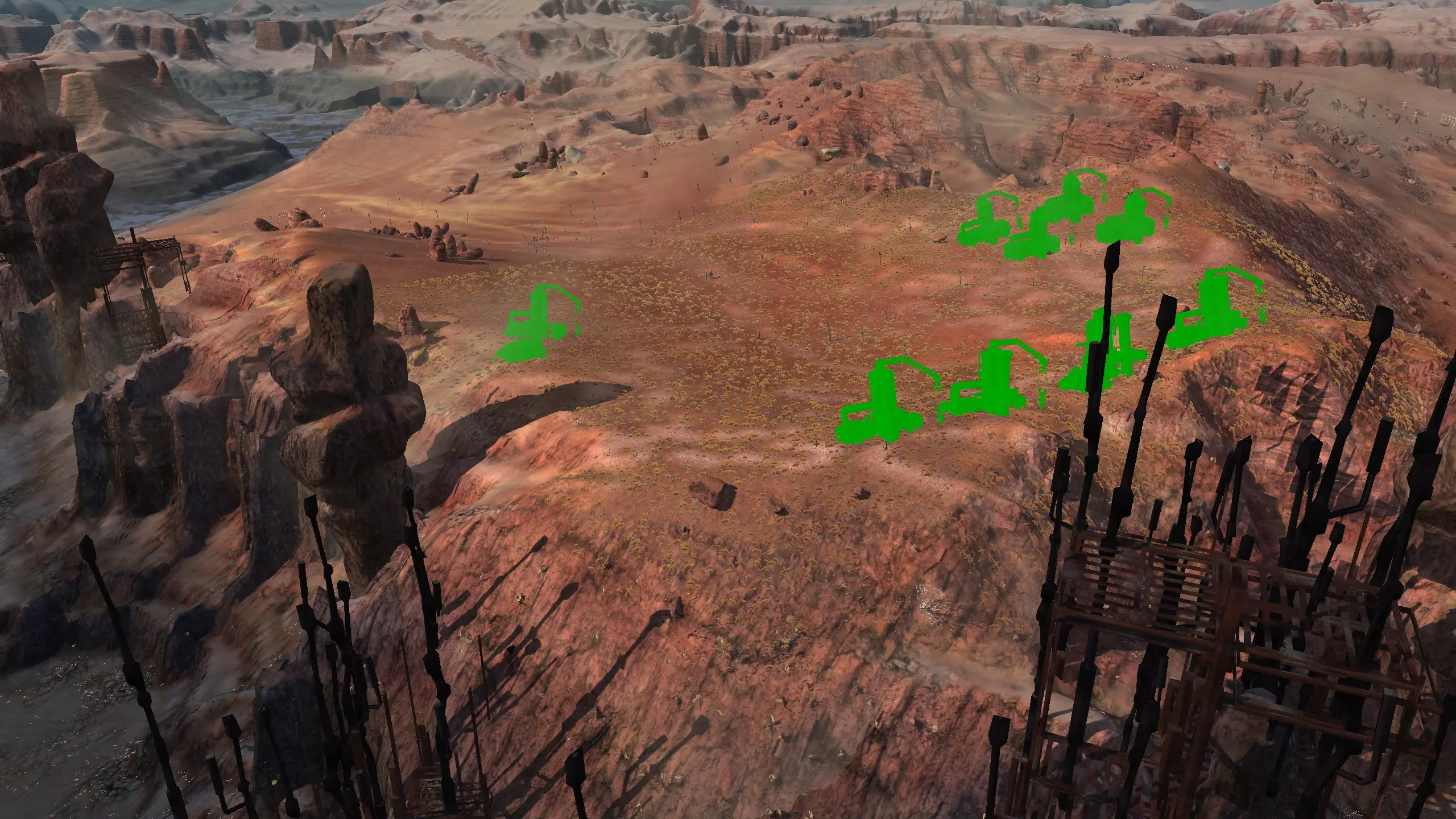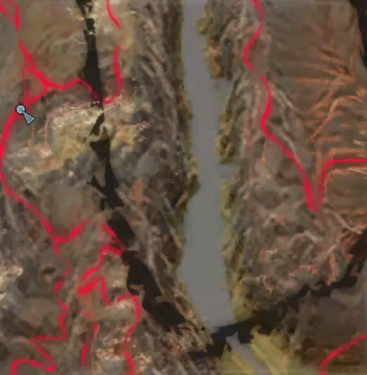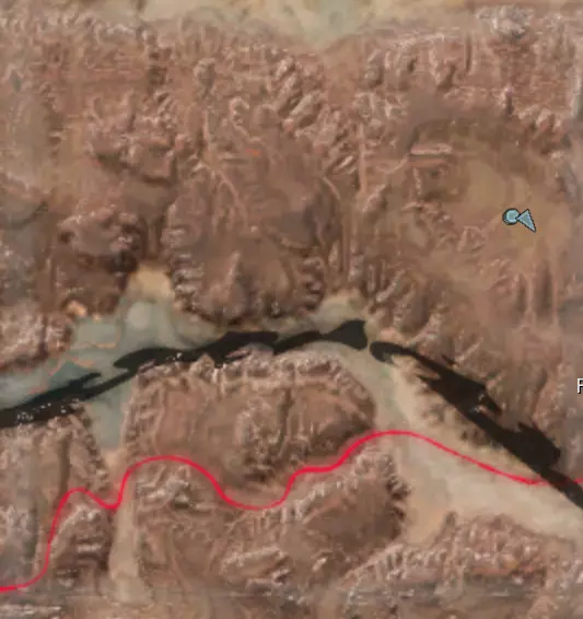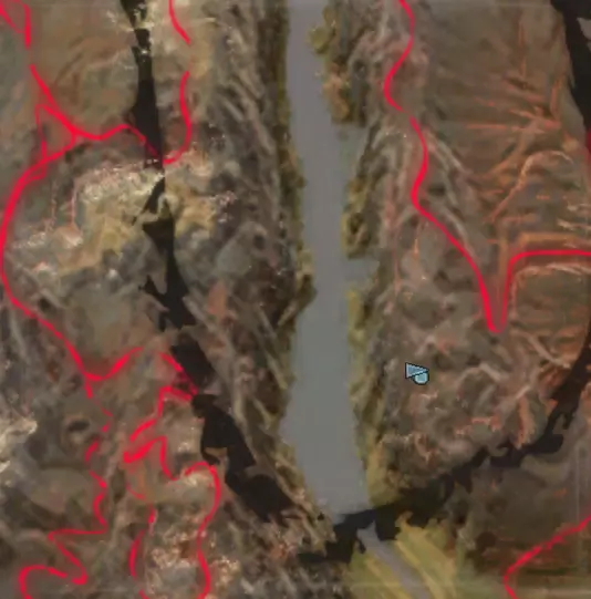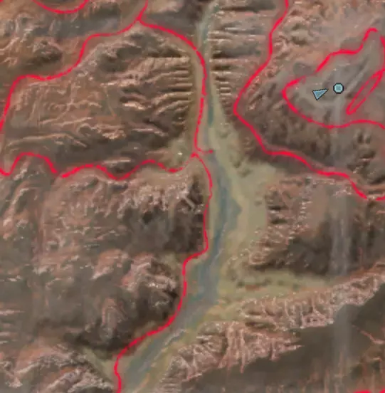 描述:左侧的墙壁是附近NPC聚落生成的禁止建造区域。 这座分层的环形山顶非常棒,无论是作为军事前哨站,还是建造具有垂直层次感的防御基地,都是绝佳地点。这里靠近一些沙克族军事前哨站,对于任何以沙克族为核心的玩家派系来说,都是理想的定居点。 注意,你只能从附近的山脉获取铁矿。你可以选择使用深钻采矿,不过这取决于你自己的决定! 资源:0%铁矿,50-60%铜矿,70%石材,24-50%水源,90%肥沃度 危险:皮肤蜘蛛、 kral's chosen、狂战士、骨犬、骸骨乐队。这里还会触发沙克族派系事件,如征税等。 2-S) 脊柱峡谷,斯坦沙漠 脊柱峡谷 1)
