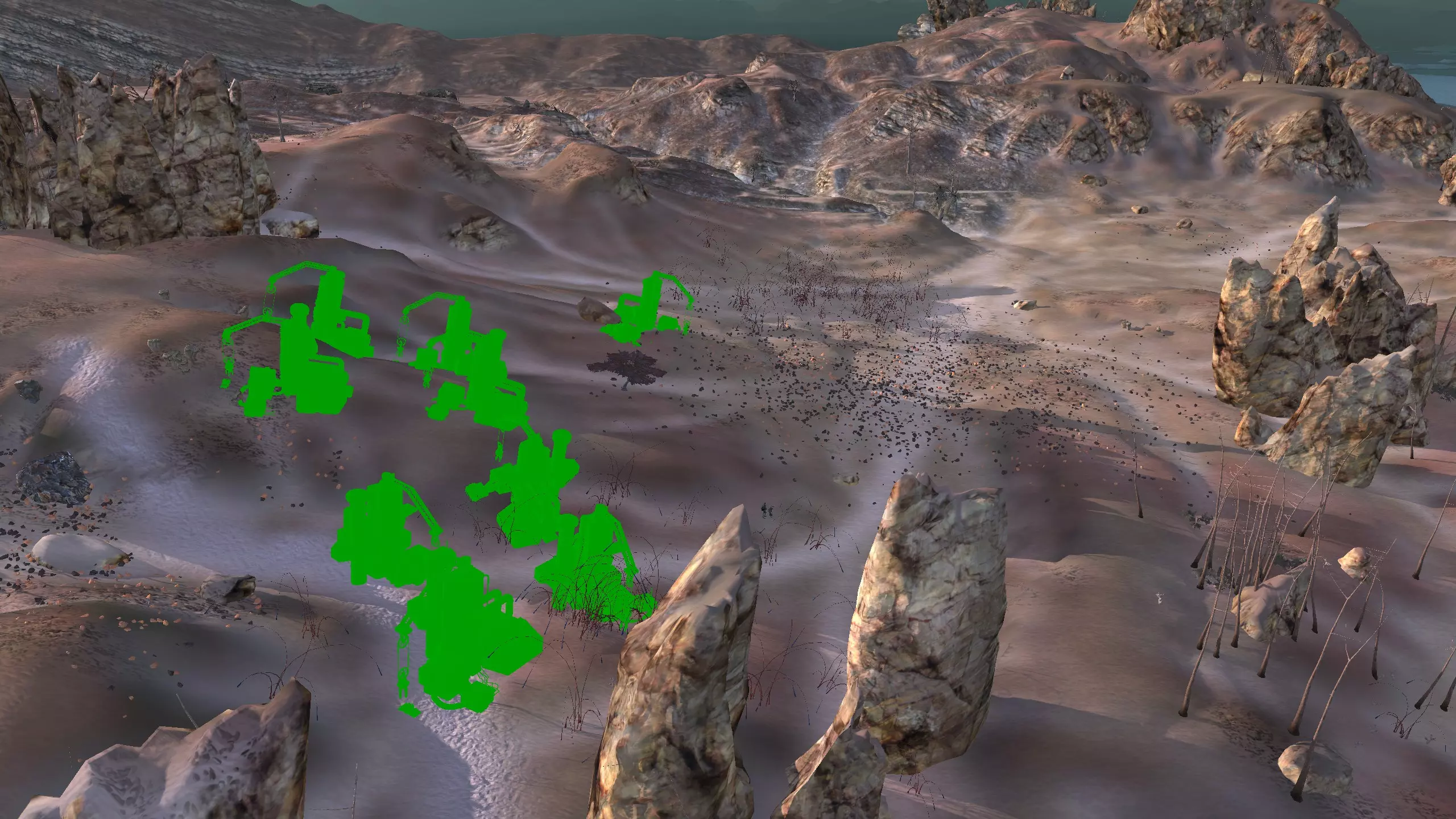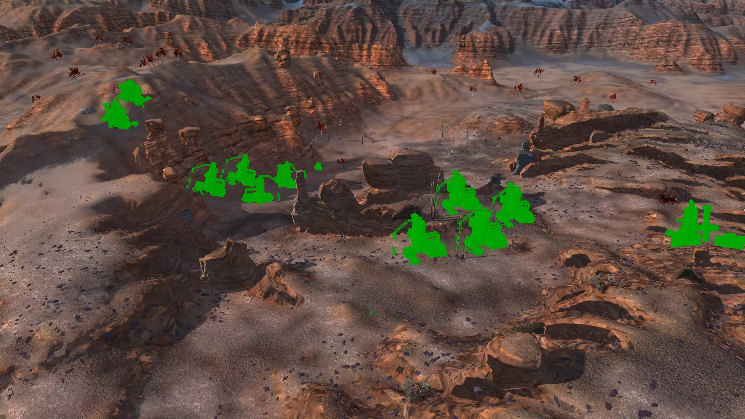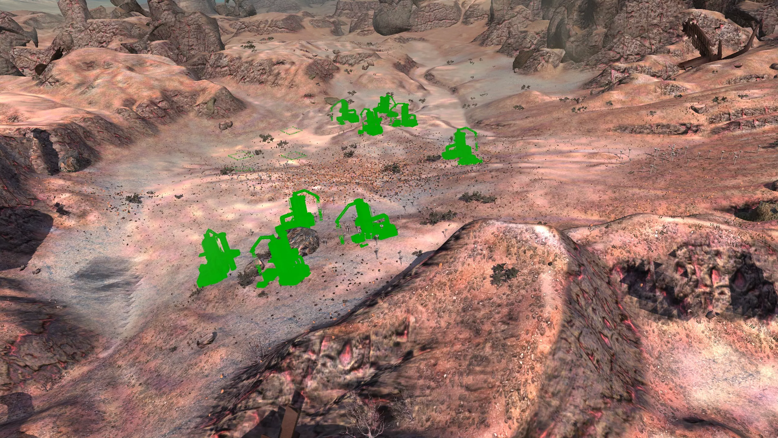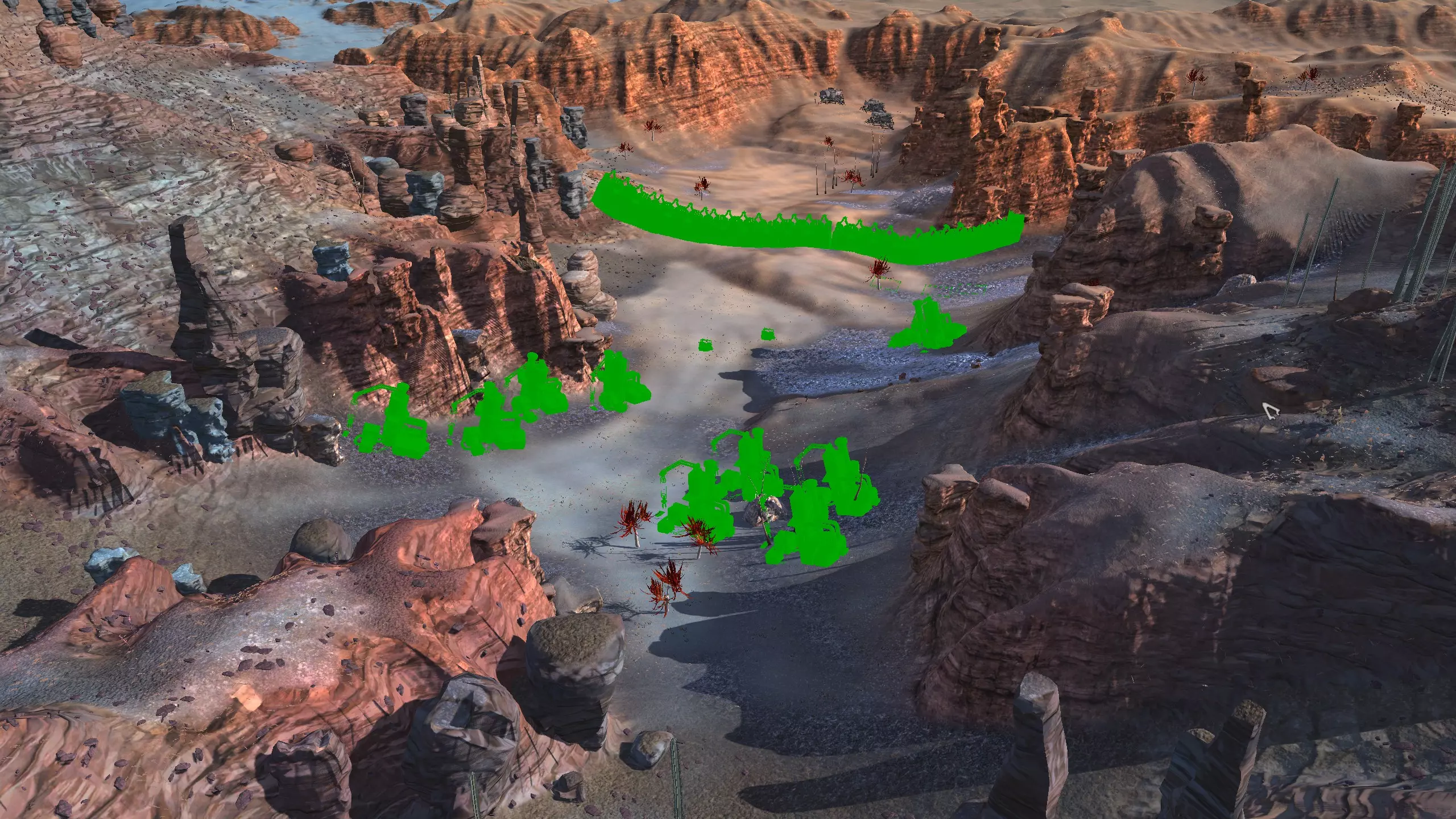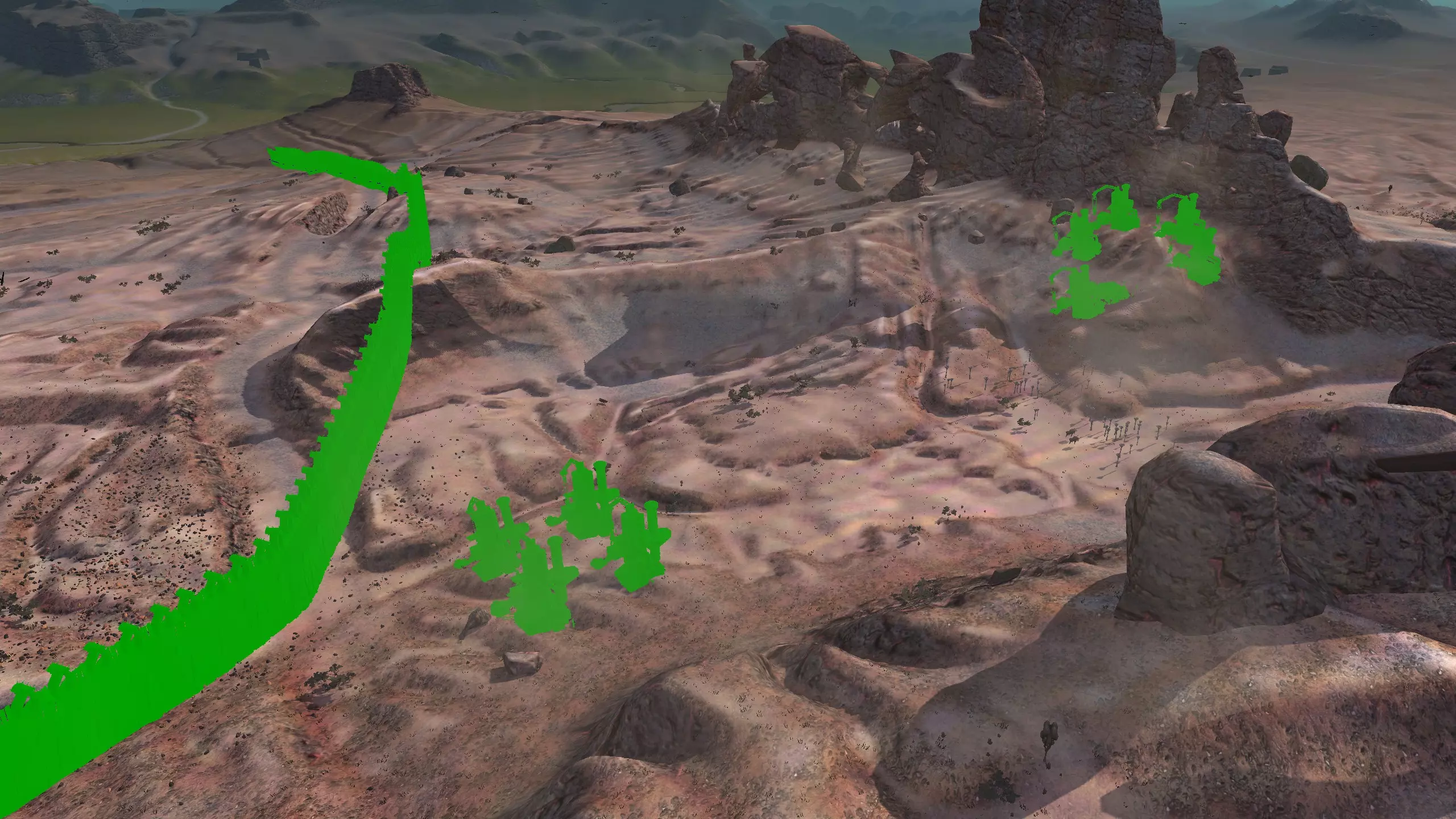 描述:左侧的墙壁是附近NPC聚落生成的禁止建造区域。 这座分层的环形山顶非常棒,无论是作为军事前哨站,还是建造具有垂直层次感的防御基地,都是绝佳地点。这里靠近一些沙克族军事前哨站,对于任何以沙克族为核心的玩家派系来说,都是理想的定居点。 注意,你只能从附近的山脉获取铁矿。你可以选择使用深钻采矿,不过这取决于你自己的决定! 资源:0%铁矿,50-60%铜矿,70%石材,24-50%水源,90%肥沃度 危险:皮肤蜘蛛、 kral's chosen、狂战士、骨犬、骸骨乐队。这里还会触发沙克族派系事件,如征税等。 2-S) 脊柱峡谷,斯坦沙漠 脊柱峡谷 1)