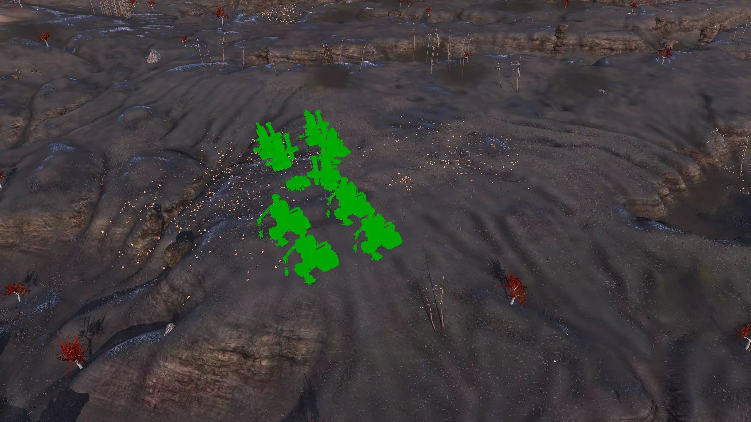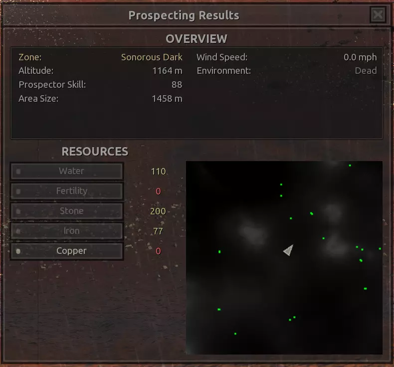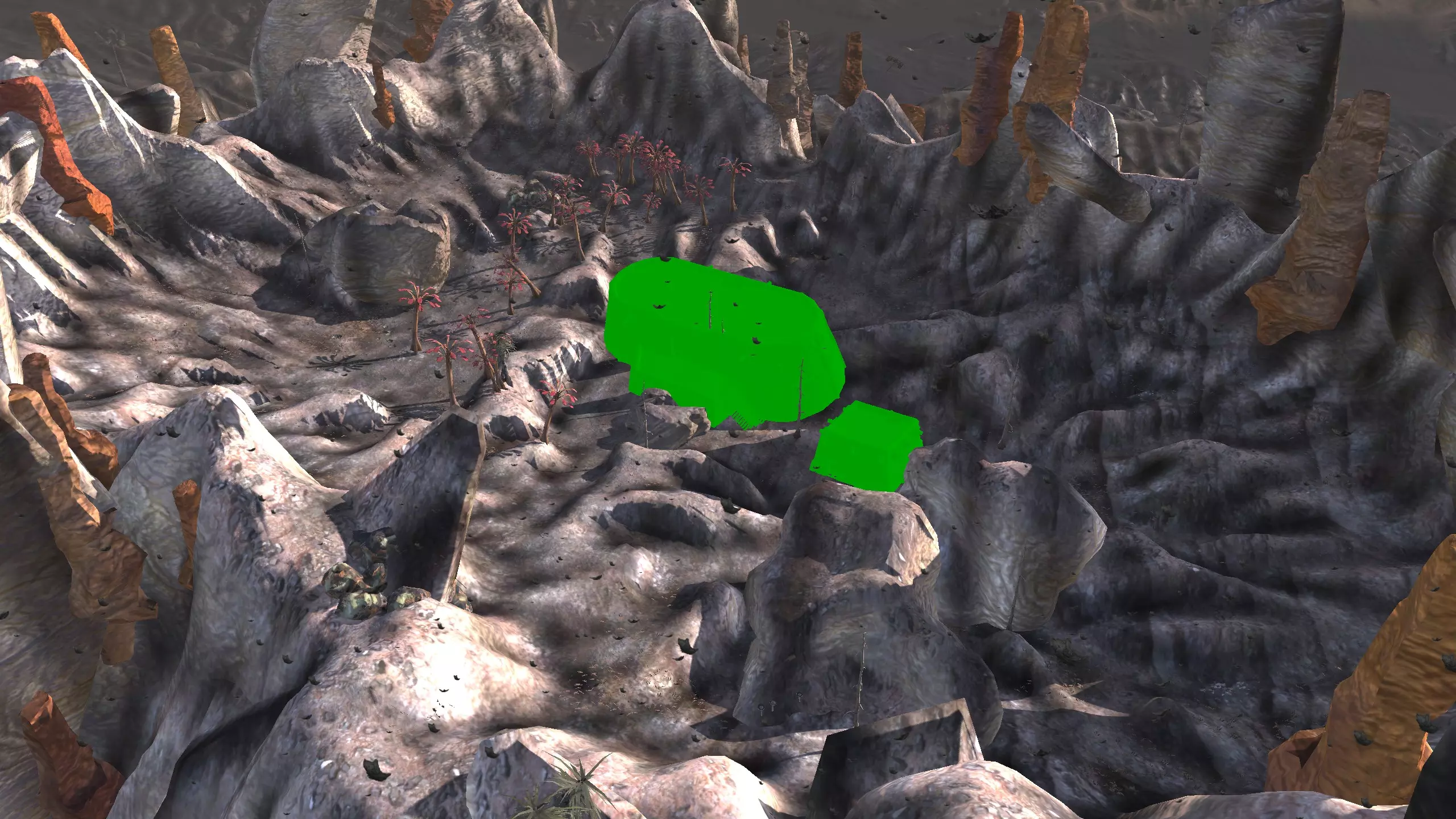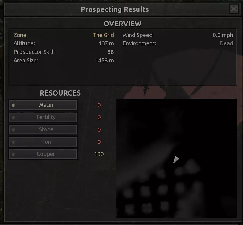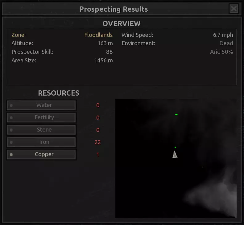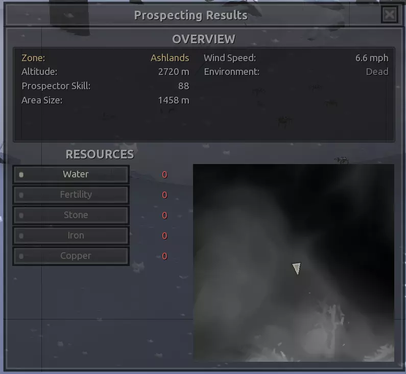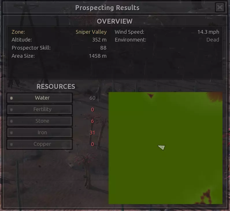 描述:没什么好说的。这个区域的资源出奇地丰富。在前往灰烬之地和其他区域之前,这里可以作为一个不错的前哨站选址,是地图最危险区域中央的一处良好休息点。在这里建立一个完全自给自足的基地可能不太值得,而且看在斯托布的份上,我强烈建议,如果这个基地要分配常驻人员来维持运转,你或许应该确保他们全都是骷髅。听我的准没错。 如果你想在这里生产食物,一定要配备水培设施! 资源:100%铁,100%铜,40%石头,60%水,0%肥力 危险:你自己会发现的。【深沉回响】 注意:该区域资源非常丰富,所以如果你不喜欢下面的位置,也可以轻松找到自己独特的建造地点,尤其是因为这个区域面积很小。我不会为该区域的每个网格坐标都创建条目。 1)