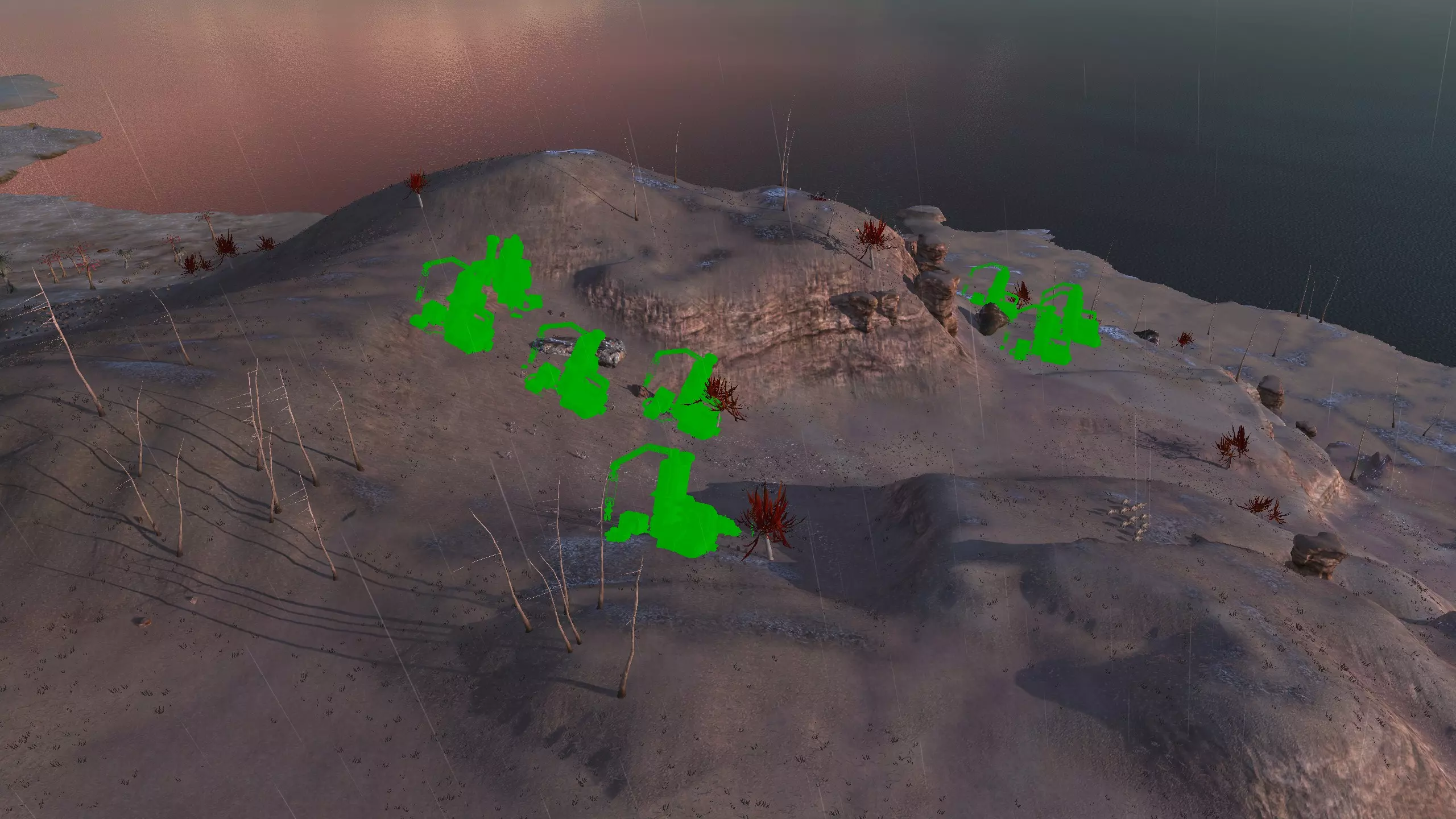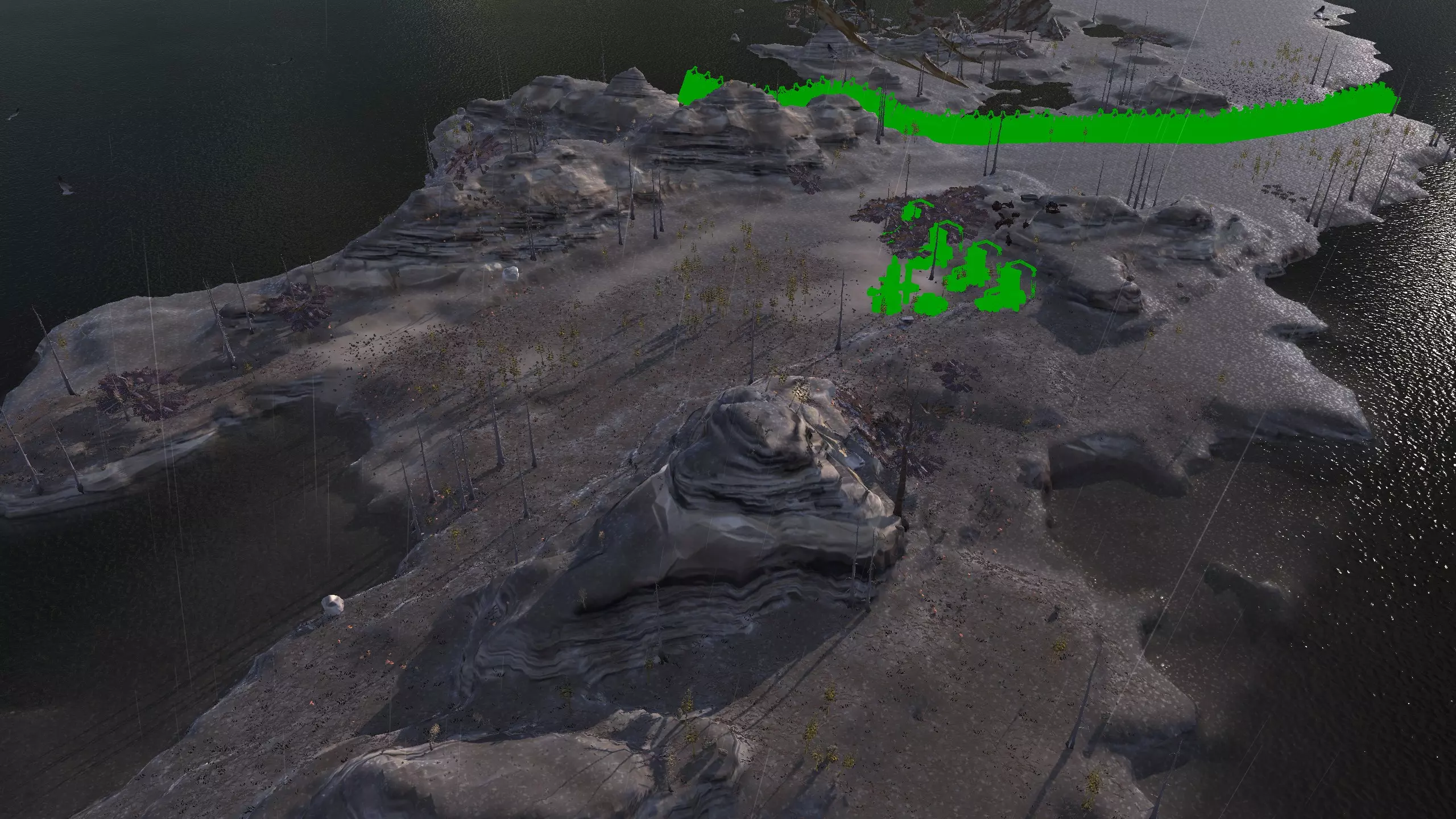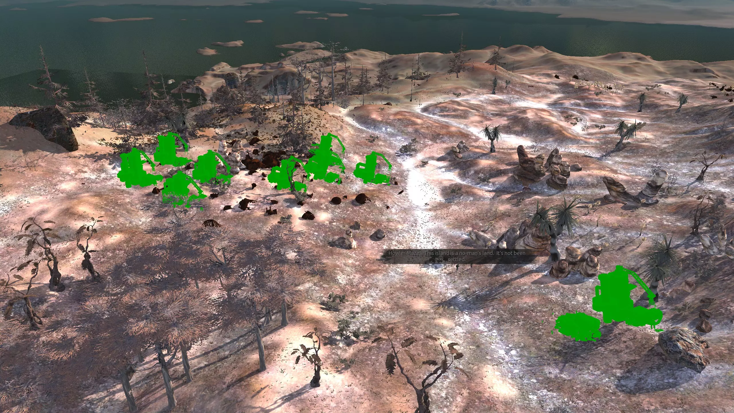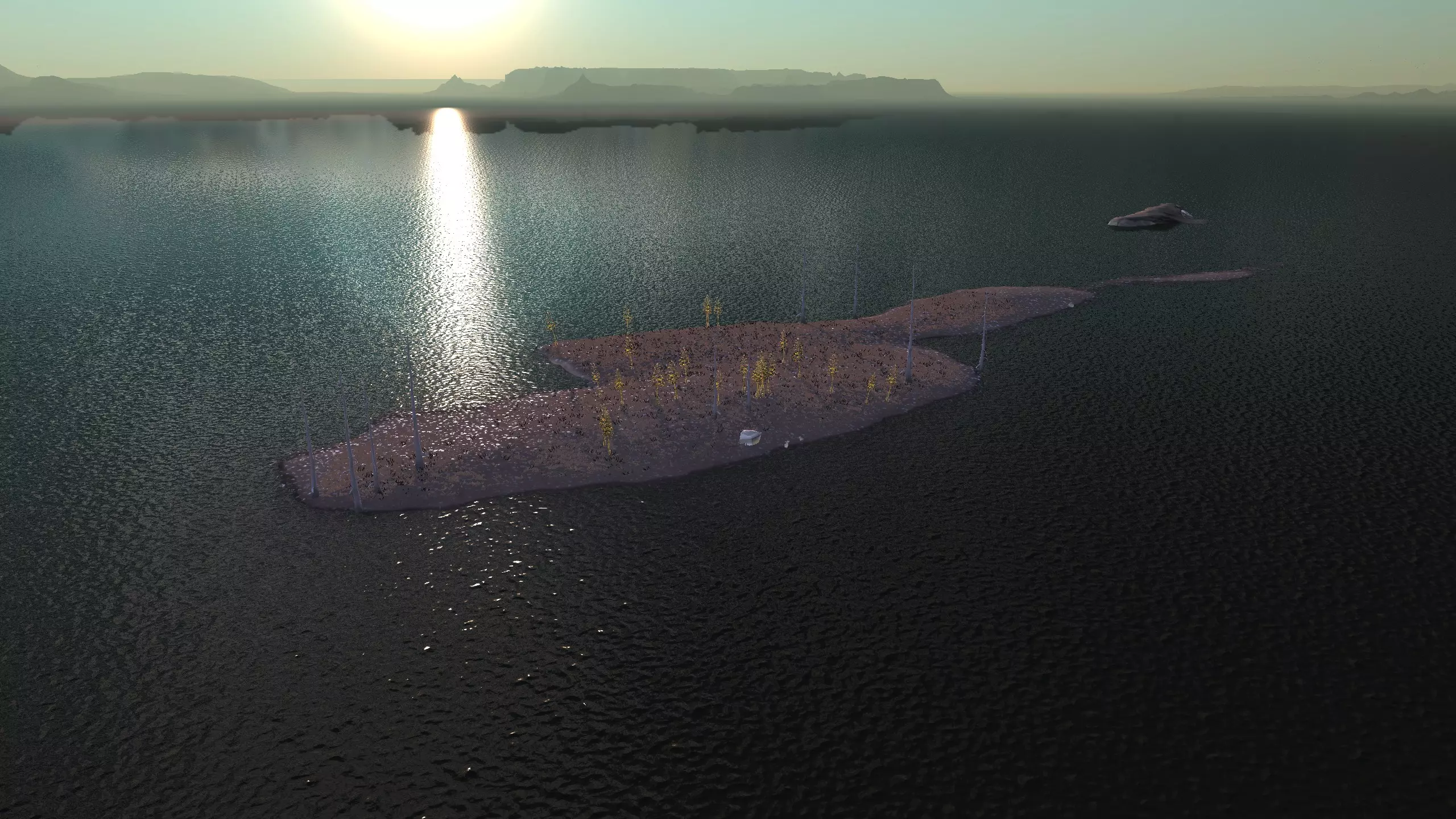 这个岛屿不像剑岛(绿滩1号)那么棒,但它就在附近,所以如果你真的想的话,可以同时定居这两个地方!和那个岛屿类似,你可能需要【深层钻探采矿】才能真正获得矿物等资源。 此外,只有几个非常特定的地点可以获得水源,所以你可能还需要【高级湿度 farming】。这里没有肥力,所以你必须使用【水培】。 所有这些因素加起来,使得这个地方看起来相当糟糕,或者至少空间太狭小,无法建造一个完全自给自足、人口密集的基地。因此,我更推荐这个地方给像隐士类型的角色或人口较少的派系,比如住在瞭望塔里,搭配几个风暴屋用于水培和储存之类的。从技术上讲,这里也算是一个【无归属区域】,但我不在乎。 资源:0-8% 铁矿,0% 铜矿,0% 石料,0-80% 水源,0% 肥沃度 危险:我看到这里有很多螃蟹在巡逻,你可能还会遇到螃蟹掠夺者,也许有 reavers,也许什么都没有,这个岛屿属于【无归属区域】,所以它们的寻路可能会避开这里。