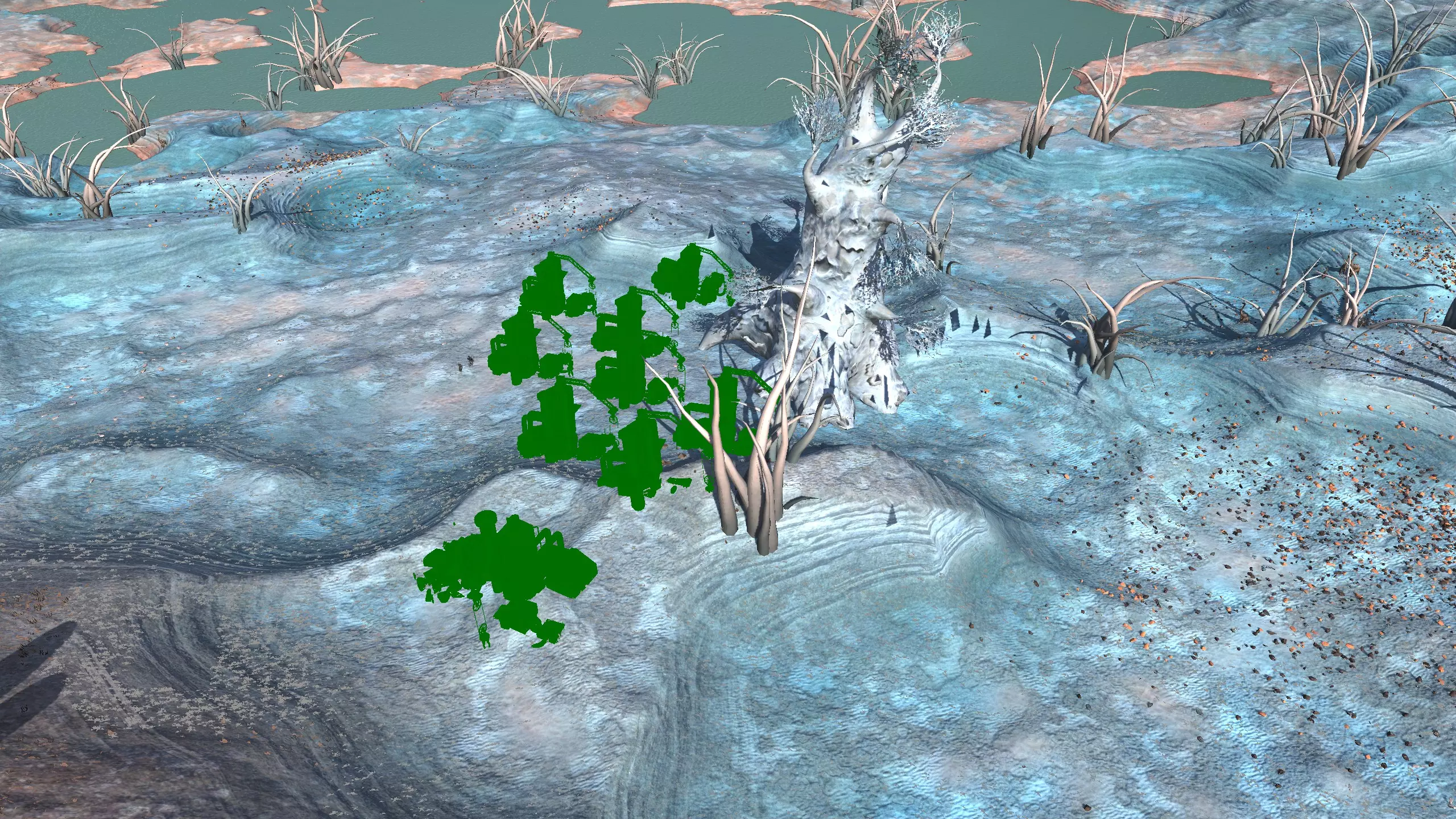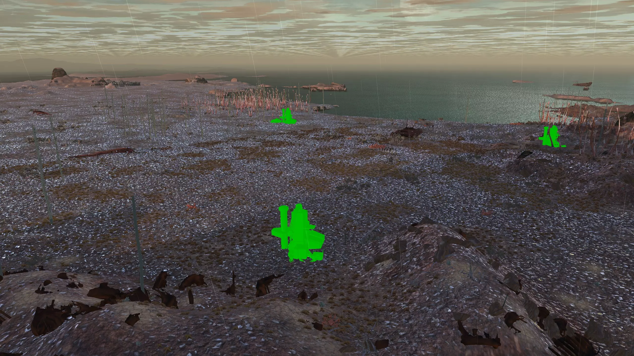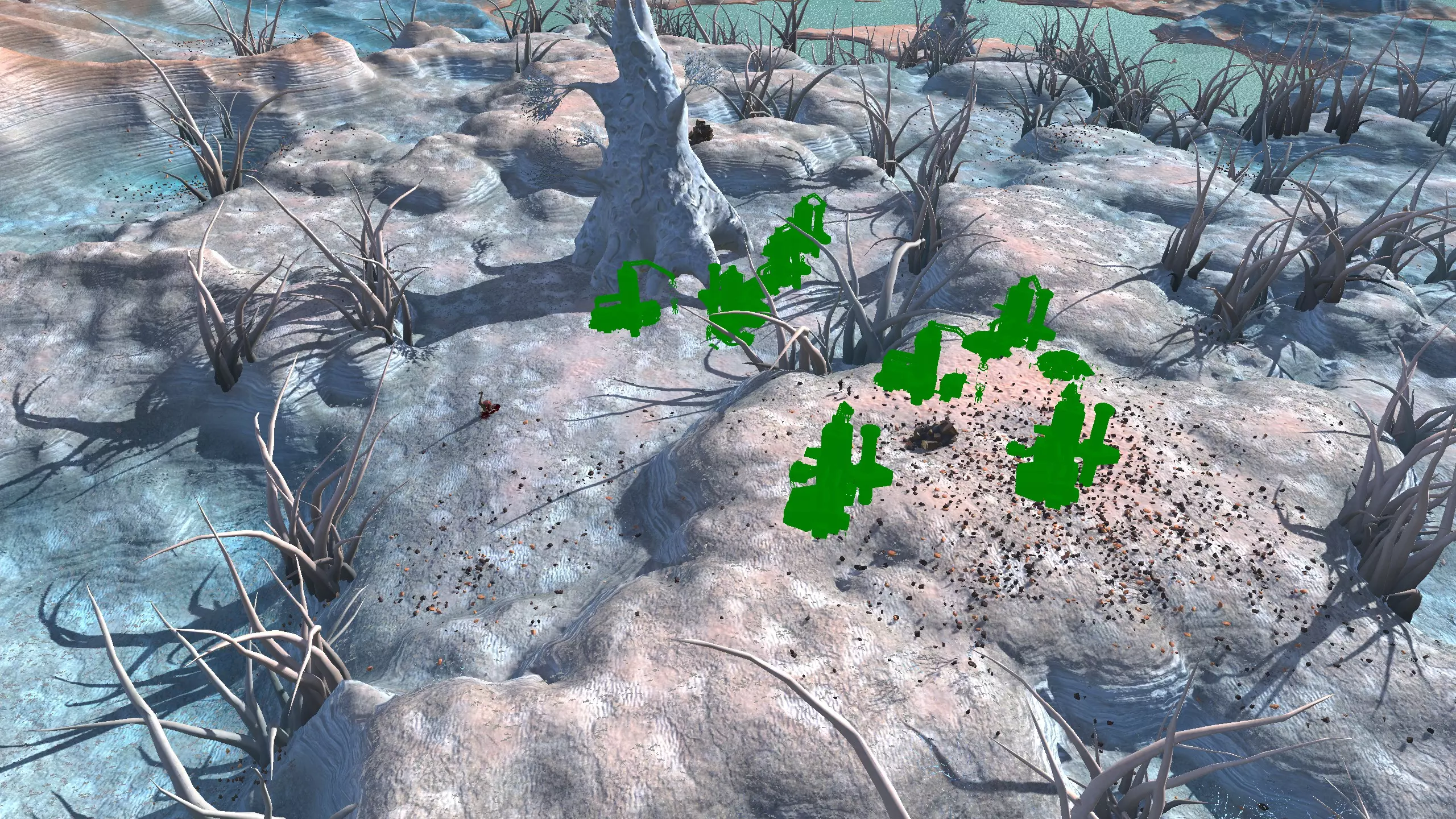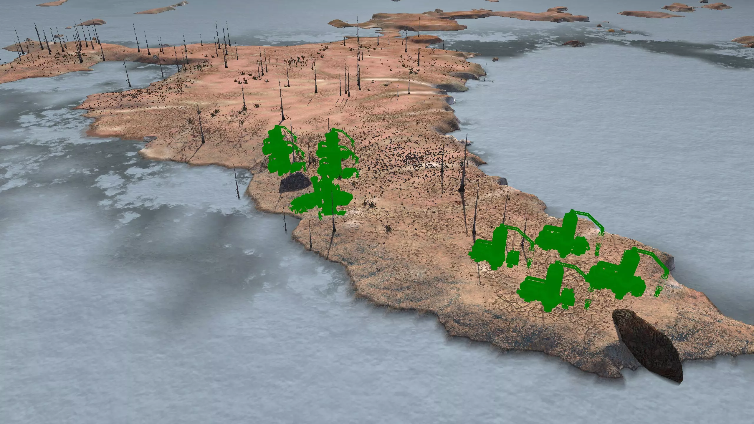 这个岛屿不像剑岛(绿滩1号)那么棒,但它就在附近,所以如果你真的想的话,可以同时定居这两个地方!和那个岛屿类似,你可能需要【深层钻探采矿】才能真正获得矿物等资源。 此外,只有几个非常特定的地点可以获得水源,所以你可能还需要【高级湿度 farming】。这里没有肥力,所以你必须使用【水培】。 所有这些因素加起来,使得这个地方看起来相当糟糕,或者至少空间太狭小,无法建造一个完全自给自足、人口密集的基地。因此,我更推荐这个地方给像隐士类型的角色或人口较少的派系,比如住在瞭望塔里,搭配几个风暴屋用于水培和储存之类的。从技术上讲,这里也算是一个【无归属区域】,但我不在乎。 资源:0-8% 铁矿,0% 铜矿,0% 石料,0-80% 水源,0% 肥沃度 危险:我看到这里有很多螃蟹在巡逻,你可能还会遇到螃蟹掠夺者,也许有 reavers,也许什么都没有,这个岛屿属于【无归属区域】,所以它们的寻路可能会避开这里。