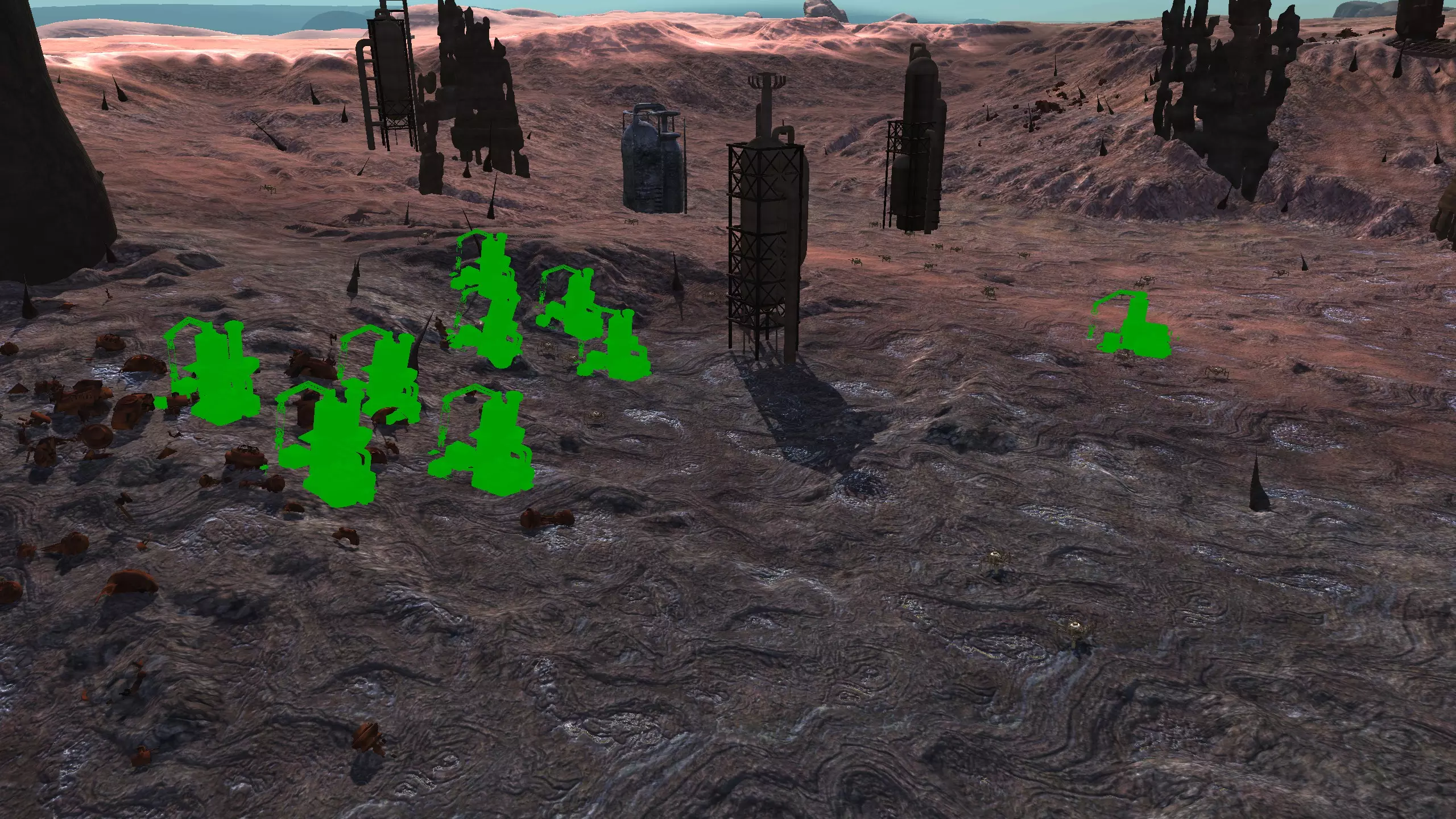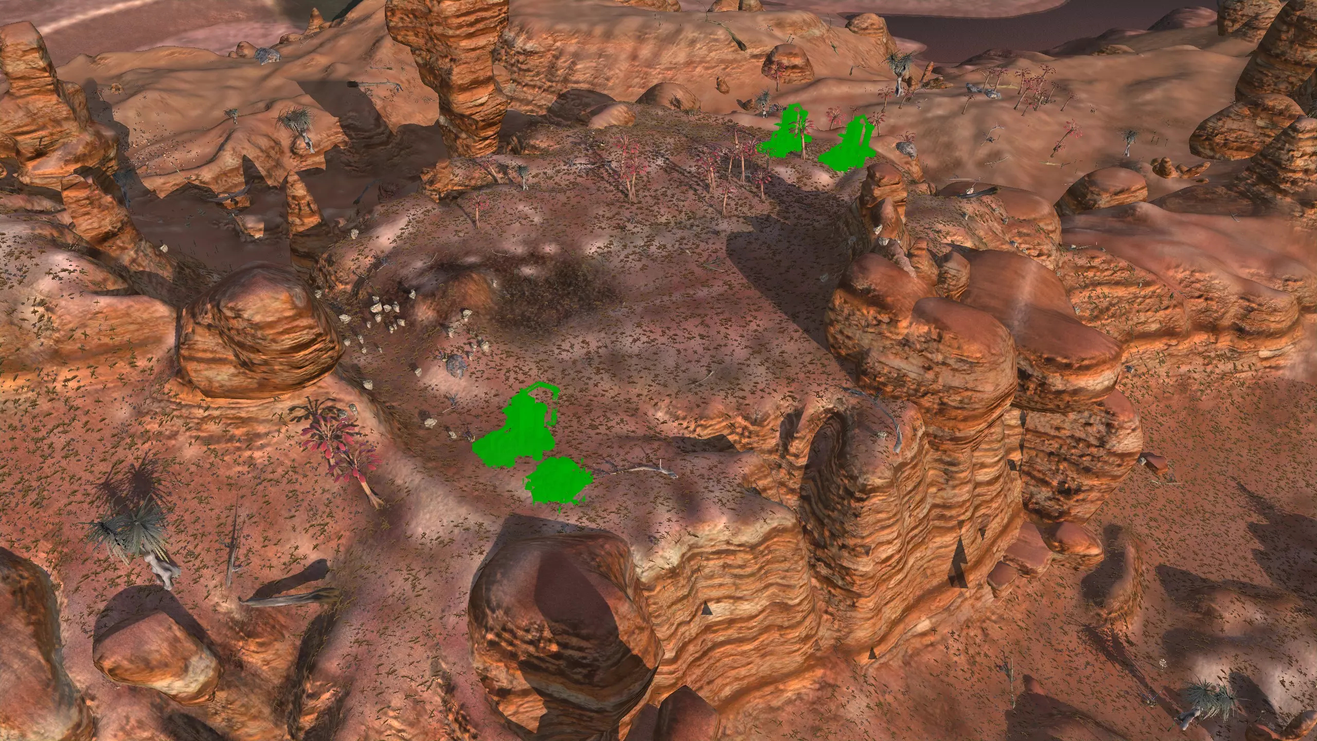 描述:与黑沙漠#1不同,这个地点整体空间较小,但可以建造一条不错的长队。总体而言,在这个区域,你可以灵活地放置钻头,这点很不错。 如上所述,这里是纯骷髅小队的理想地点。没有水源,没有肥力。可以通过模组来解决这些问题,例如搭配水培技术使用“增强型湿度 farming”。 资源:100%铁,100%铜,100%石头,0%水,0%肥力 危险:请阅读上述关于黑沙漠的一般警告。此外,要留意云忍者和可能出现的尘暴土匪袭击。 2-C) 食人族平原 食人族平原 1)