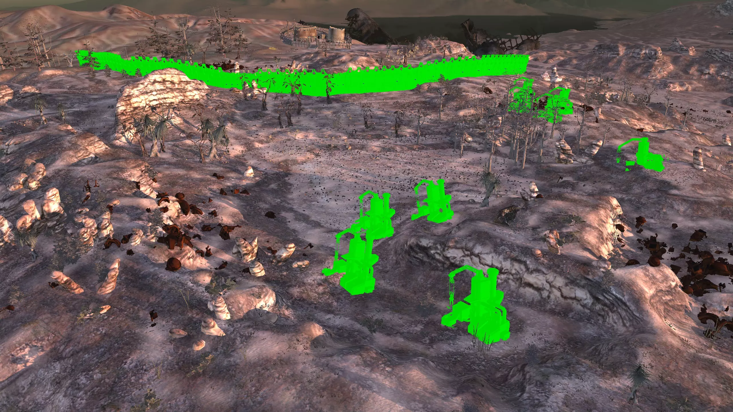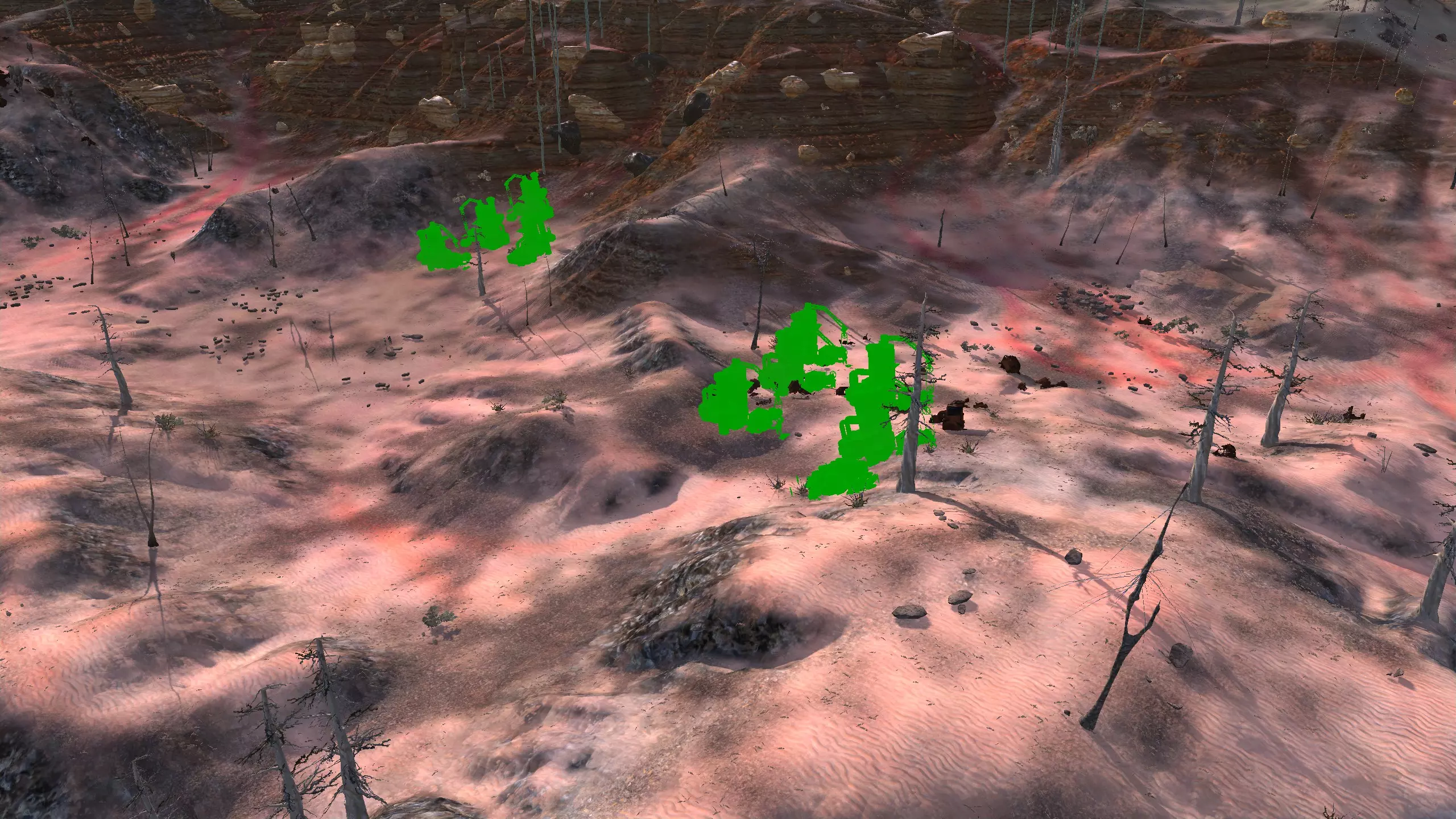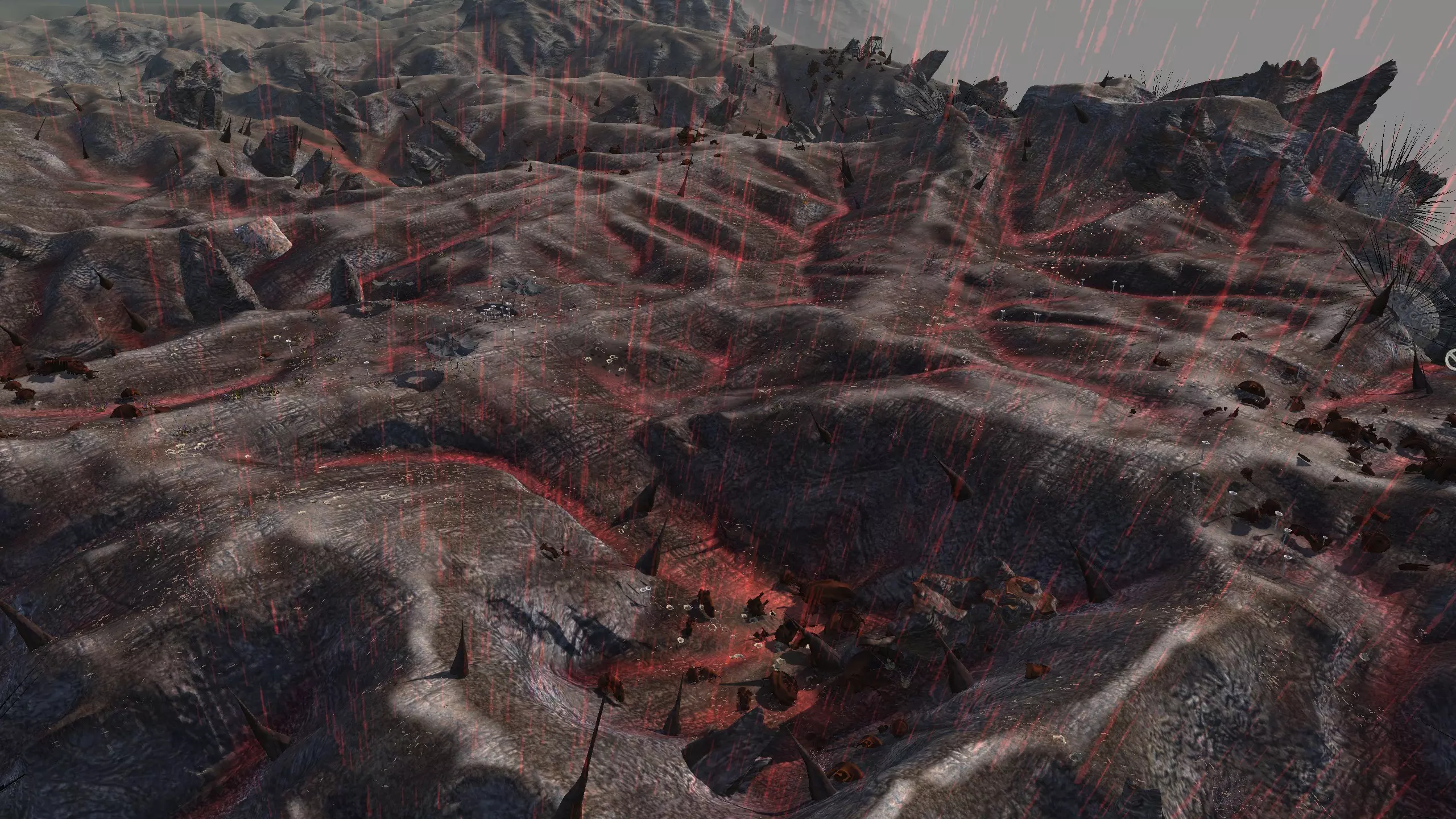在我看来,这片区域里唯一值得你花时间的地方。它看起来不怎么样,但却是个令人满意的小地方,非常适合真正邪恶的派系。如果你打算在玩《剑士》时大量使用游戏中可能会遇到的“某些家具”,并且基本上与遇到的每个派系为敌,那么这里就是建立基地的好地方。这里看起来就像地狱本身,地面仿佛浸透了鲜血。 需要注意的是,这里【没有任何资源】。你需要模组。你需要深层钻探采矿、增强型湿度 farming,而且如果这还不够,还必须要有水培种植。 如果你计划扮演某种魔王,或者残忍、野蛮的领主,这是个绝佳的地点。资源:0% 铁,0% 铜,0% 石头,0% 水,0% 肥力 危险:狂战士?游荡的食人族?还有食人族袭击? 2-B) 骨之地 骨之地 1)