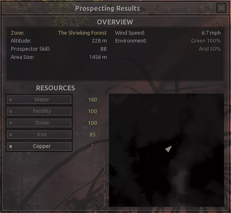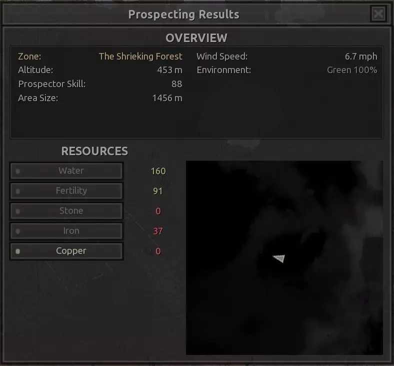 说实话,我添加这个地点主要是因为我想在尖叫森林里至少设置一个据点,毕竟这个区域总体资源相当不错,就是缺铜。我觉得这个地点还不算太差,所需资源基本齐全,铜的情况确实不行,但整个区域的铜都很匮乏。 资源:100%铁,15-20%铜,100%石头,100%水,100%绿色植被 危险:尖叫强盗,食人族袭击?说实话不算太严重。