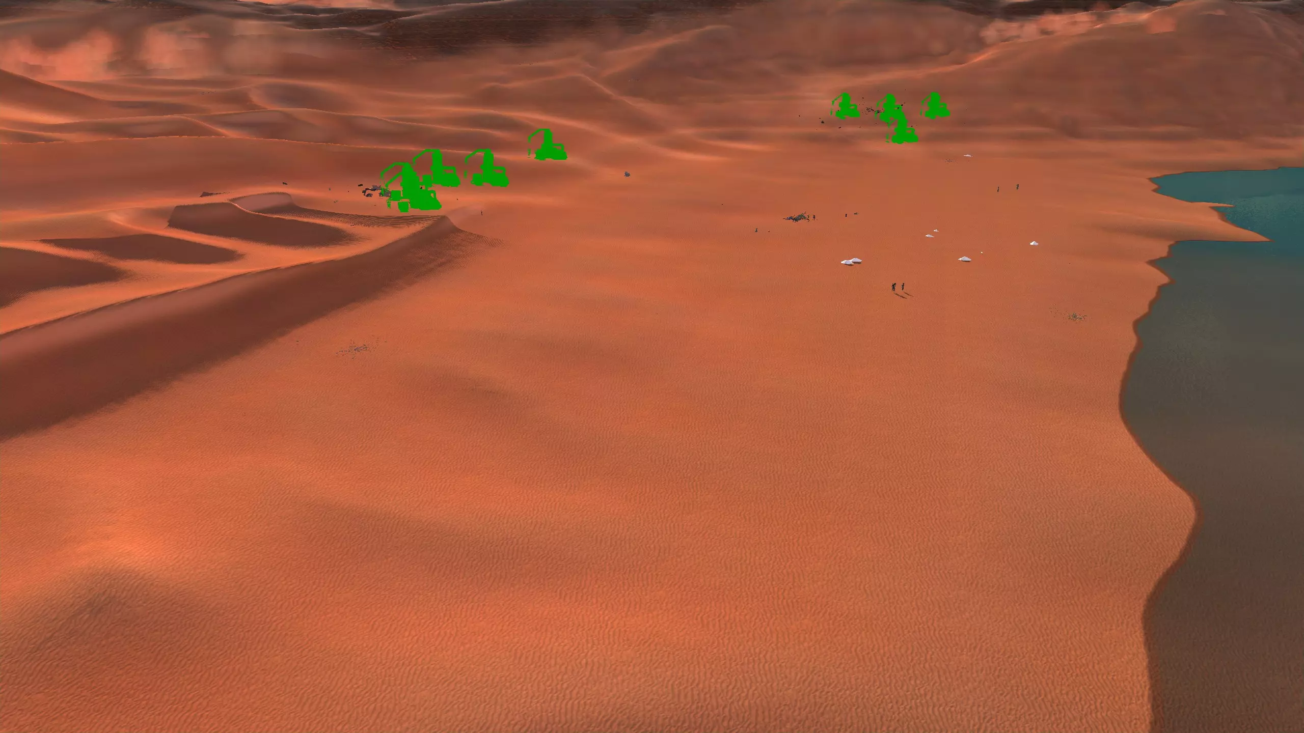 我差点就错过了这个地方,但当我踏上这片沙滩,看到这里的资源后,我决定还是提一下。我之前提到过附近的另一个海滩地点,不过这个地方也非常棒,甚至可能更好。 整个小区域就像一个完美平坦的烤盘,非常不错,而且所有资源都分布在你实际想要建造建筑的区域边缘。这是一个我自己也会考虑使用的绝佳沙漠地点。 另外值得注意的是,在上面的截图中,你可以看到沙滩上堆积着大量的尸体。当我准备截图时,一名贵族猎人及其护卫突然发起攻击,紧接着掠行者、赏金猎人也接踵而至,场面彻底陷入混乱。这足以说明大沙漠的混乱程度,而且你肯定会在这里遇到各种活动。 资源:100%铁矿,70%铜矿,100%石材,30%水源,90%肥沃度 危险:掠行者、叛乱农民、流浪匪帮、追猎者、沙忍者、奴隶猎人、城市英雄、奴隶商队以及贵族猎人。 2-G) 大沙漠第二部分:网格 7)