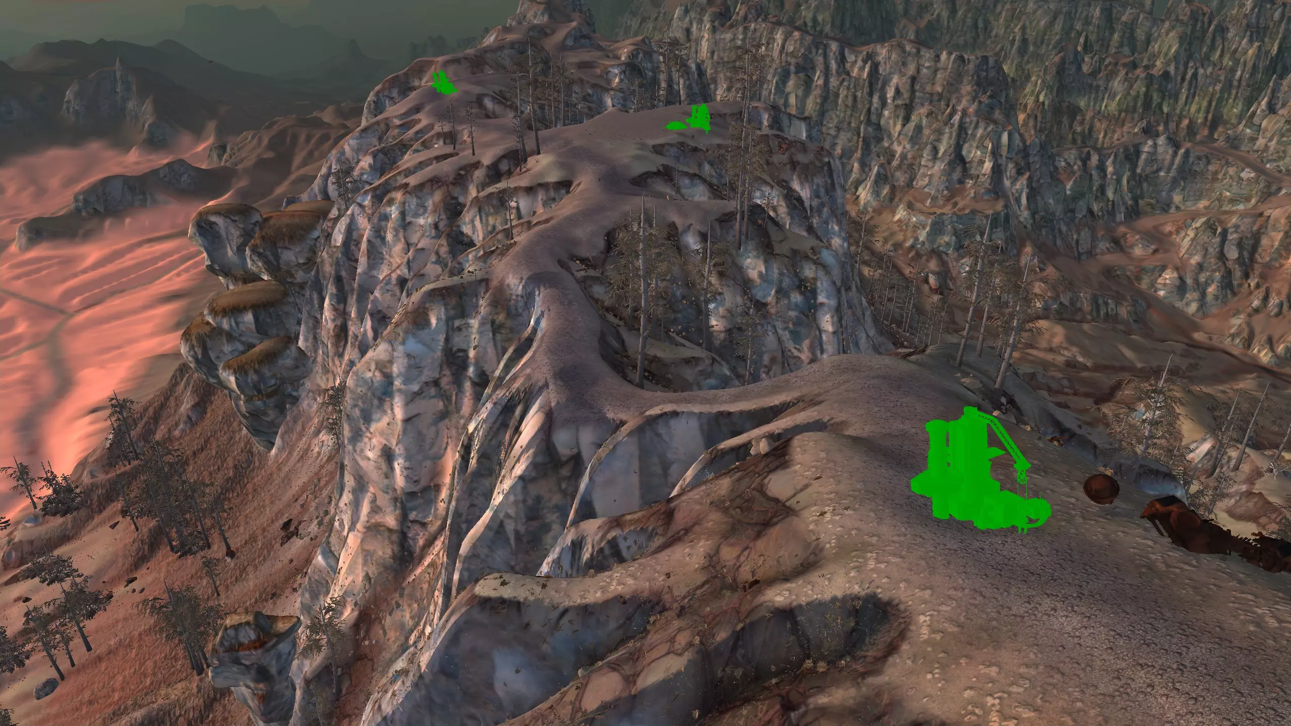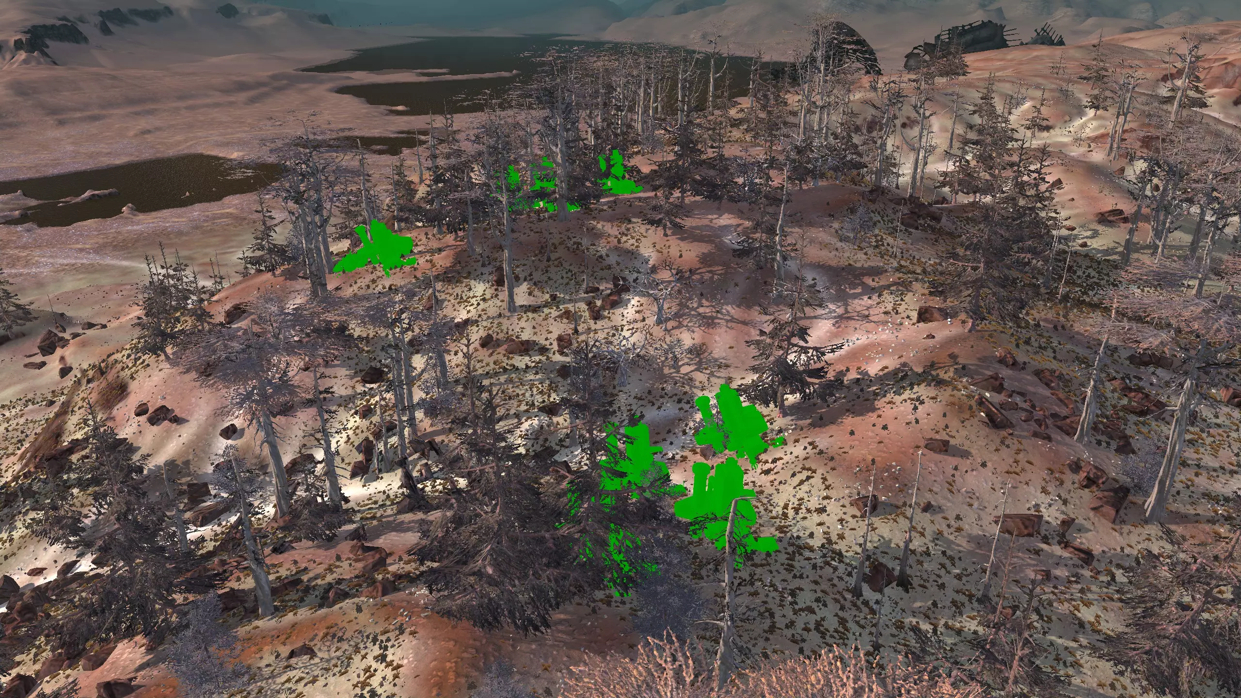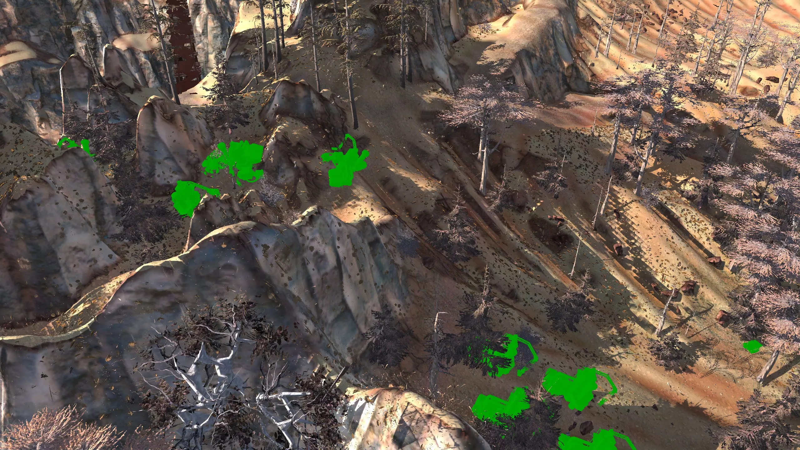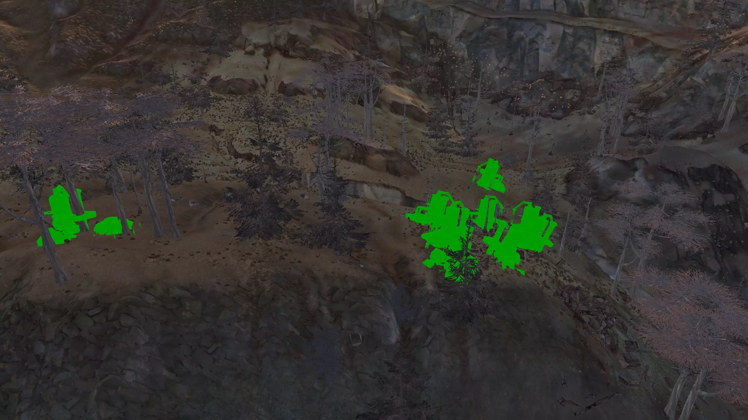 这个地点真的让我印象深刻。它坐落在一个漂亮的小山谷里,只有一侧是开放的!这里的空间出人意料地宽敞,但又不会过大。你可以把所有矿石放在左侧,石头放在最右侧,这样其他区域就可以自由进行开发了。此外,所有烦人的树木在重新加载后都会消失,至少大部分会消失,给你留下一个相当不错的小区域。你只需要建造一面墙,虽然它有点长,但无论你选择在哪里建造,都有足够的空间来打造你酷炫的气闸系统。 唯一的缺点是,铜矿质量较差,纯度只有15-20%,但你可以通过建造大量钻井来弥补这一点。如果你没有钻头或铜制钻头模组,这个区域可能不适合你。 资源:100%铁矿,15-20%铜矿,100%石料,100%水源,100%绿地 危险:尖叫土匪,食人族袭击……? 特别说明:你距离蒙格勒相当近,那里有很多商店。非常适合出售你制作的物品,因此这里可能是一个不错的中后期基地。此外,下方是该区域在清除大部分树木后的示例外观。