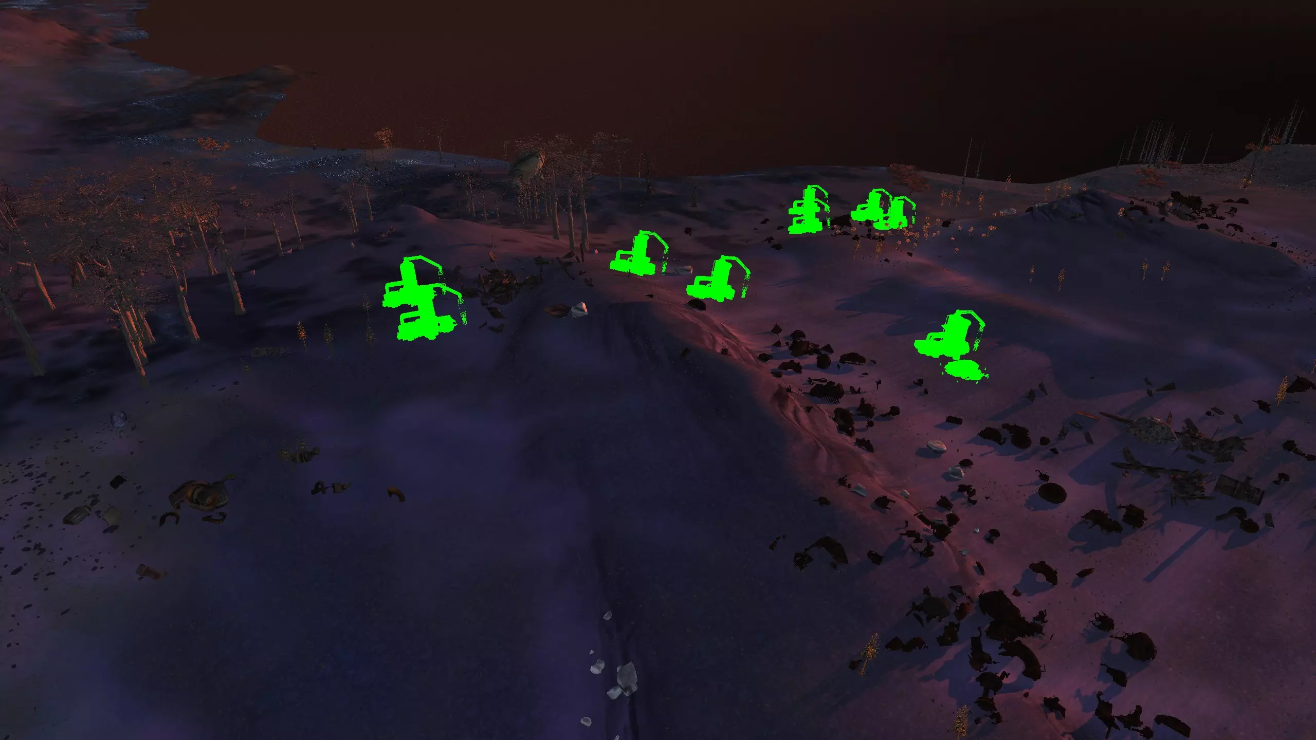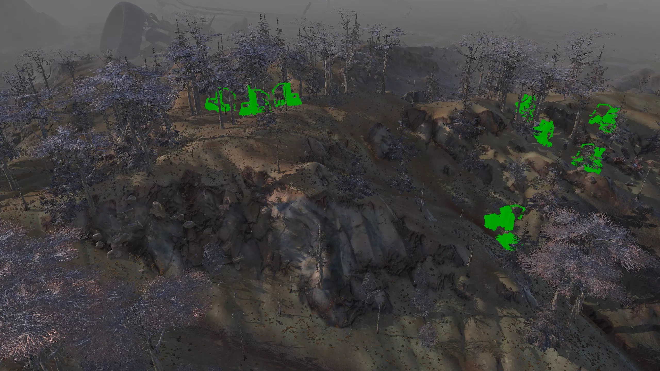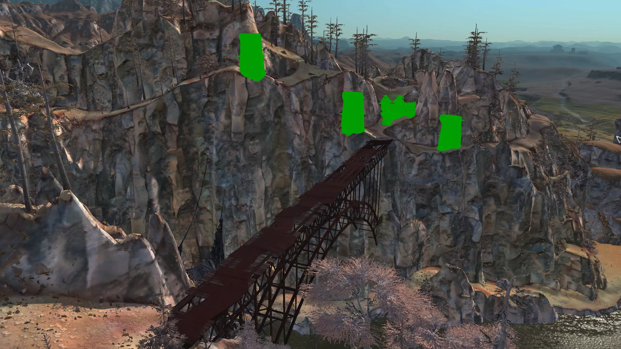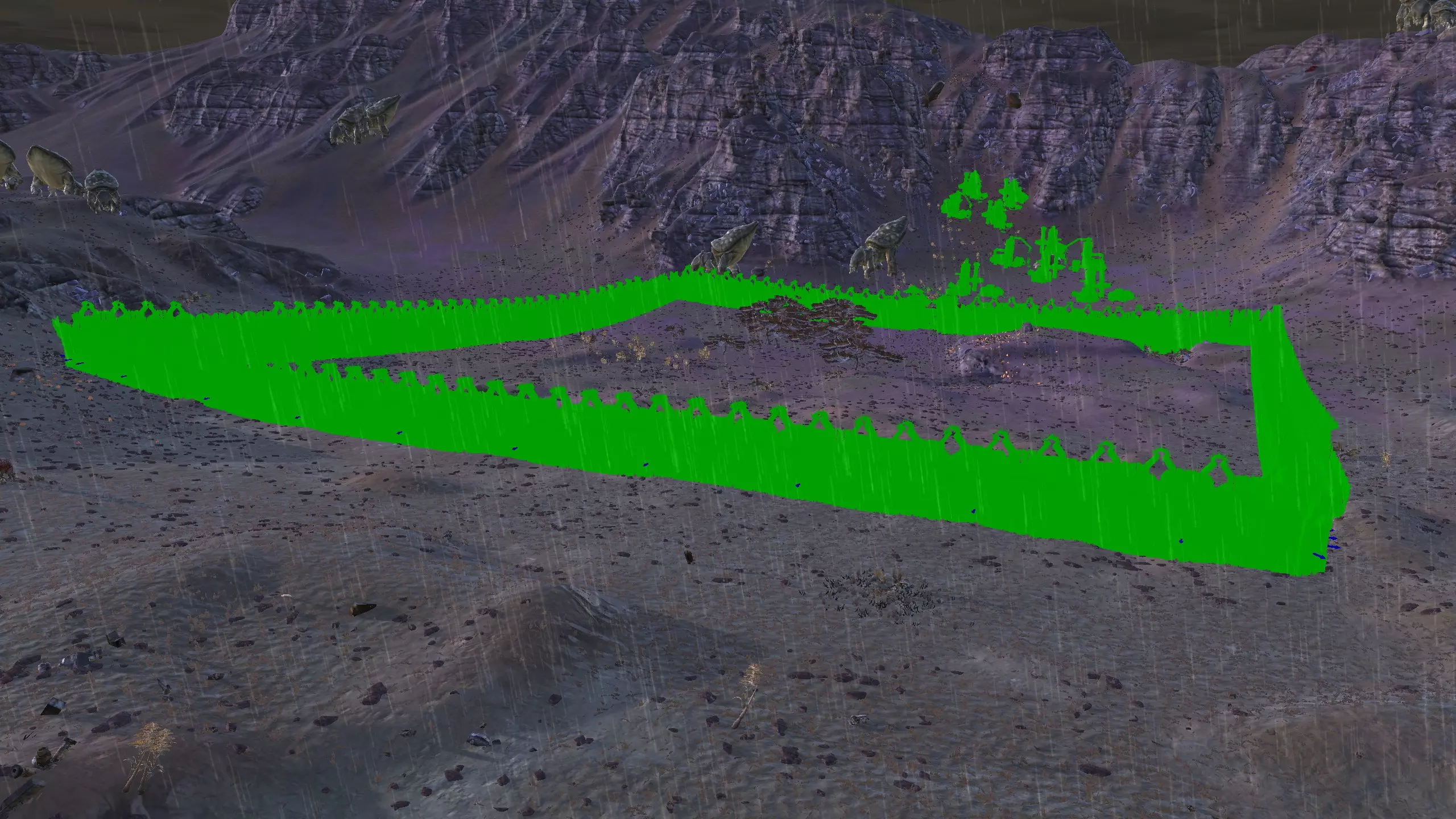 这个地点真的让我印象深刻。它坐落在一个漂亮的小山谷里,只有一侧是开放的!这里的空间出人意料地宽敞,但又不会过大。你可以把所有矿石放在左侧,石头放在最右侧,这样其他区域就可以自由进行开发了。此外,所有烦人的树木在重新加载后都会消失,至少大部分会消失,给你留下一个相当不错的小区域。你只需要建造一面墙,虽然它有点长,但无论你选择在哪里建造,都有足够的空间来打造你酷炫的气闸系统。 唯一的缺点是,铜矿质量较差,纯度只有15-20%,但你可以通过建造大量钻井来弥补这一点。如果你没有钻头或铜制钻头模组,这个区域可能不适合你。 资源:100%铁矿,15-20%铜矿,100%石料,100%水源,100%绿地 危险:尖叫土匪,食人族袭击……? 特别说明:你距离蒙格勒相当近,那里有很多商店。非常适合出售你制作的物品,因此这里可能是一个不错的中后期基地。此外,下方是该区域在清除大部分树木后的示例外观。