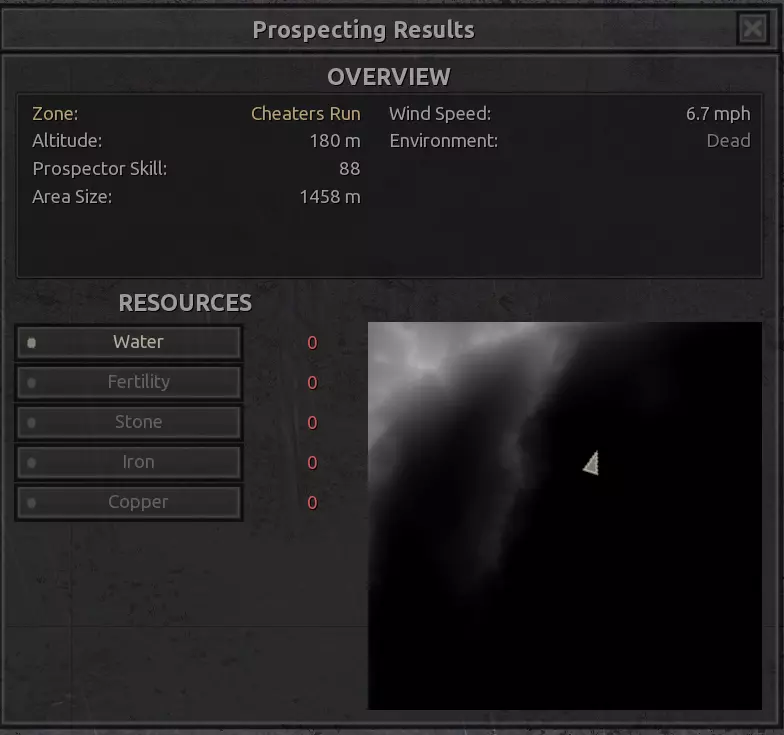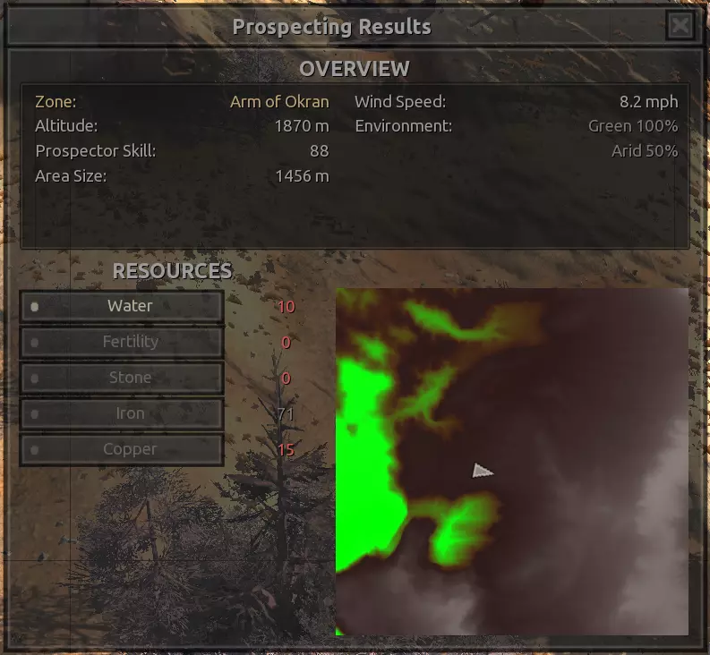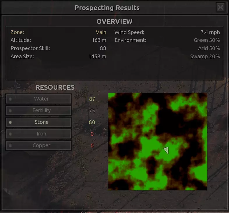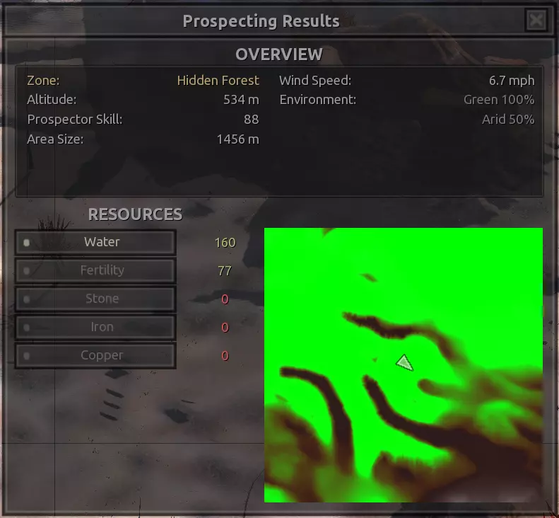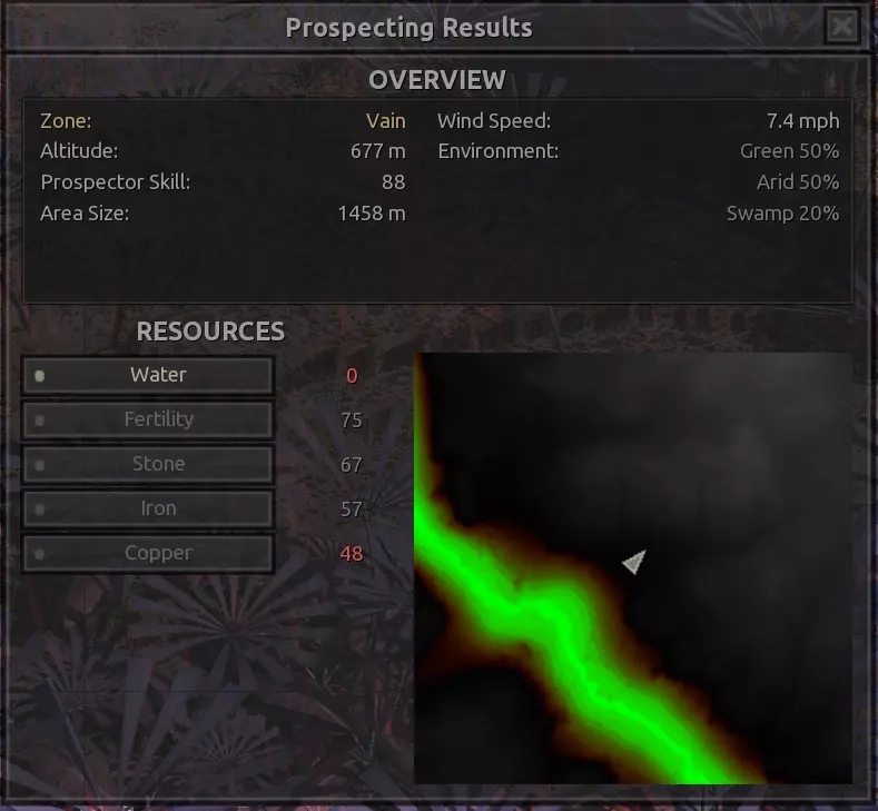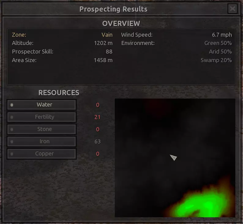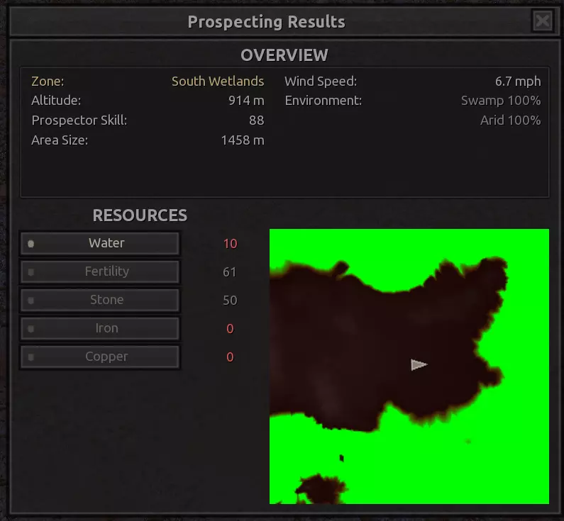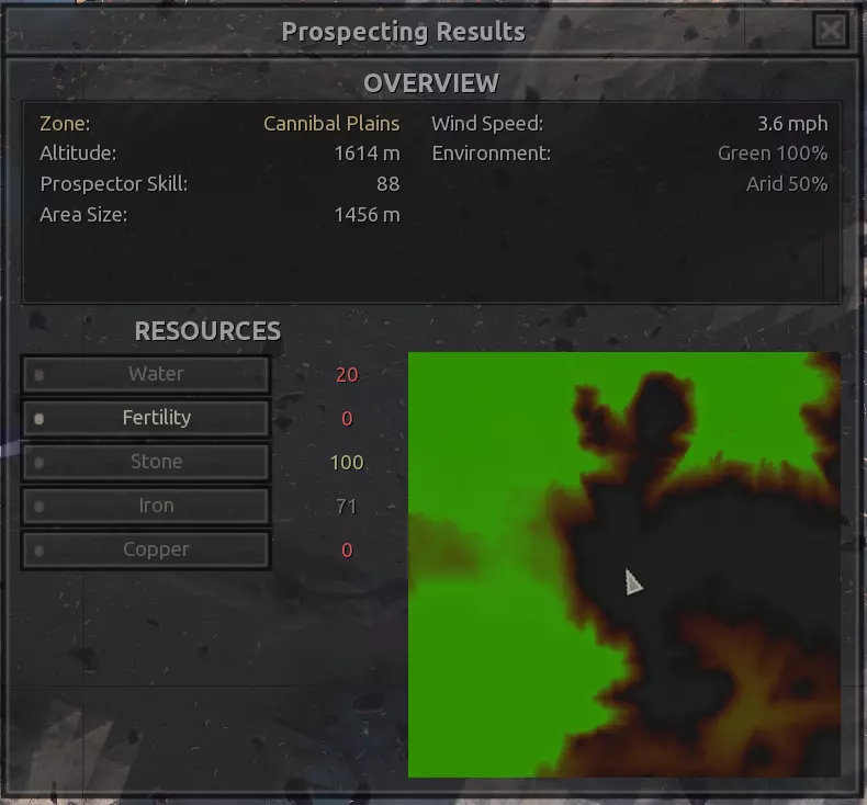 描述:从上述地点稍微向南一点。不过还不错。墙壁标志着附近城镇的所有权范围,你不能在那里以外的地方建造。普通农场的肥力足以让你获得不错的产量(小麦101%,蔬菜约80%,大麻约106%),所以不需要水培,但水源仍然不好,所以只需建造几口井。 资源:100%铁,50%铜,100%石头,20%水,复合肥力 危险:食人族袭击,食人族,食人族。食人族。大量的食人族。可能有铁蜘蛛? 特别说明:由于这个地点和上述地点(#1)非常接近,理论上你可以将这两个地点合并建造一个大型基地。
