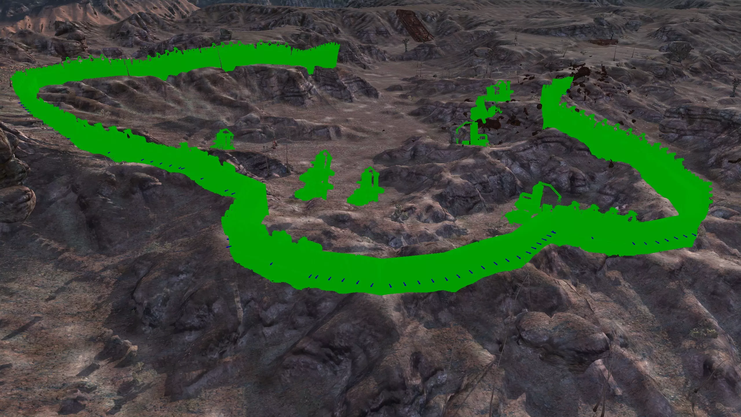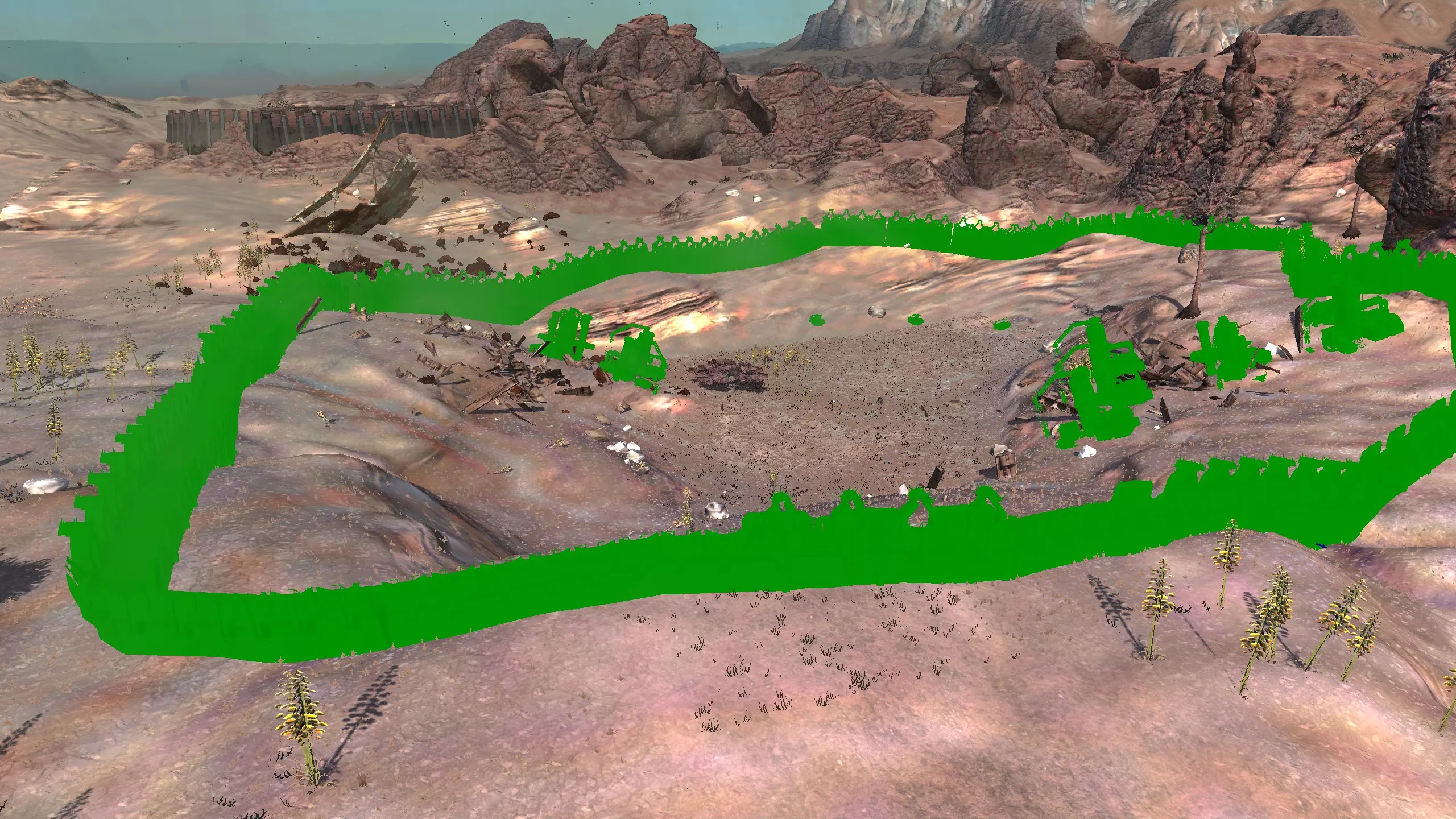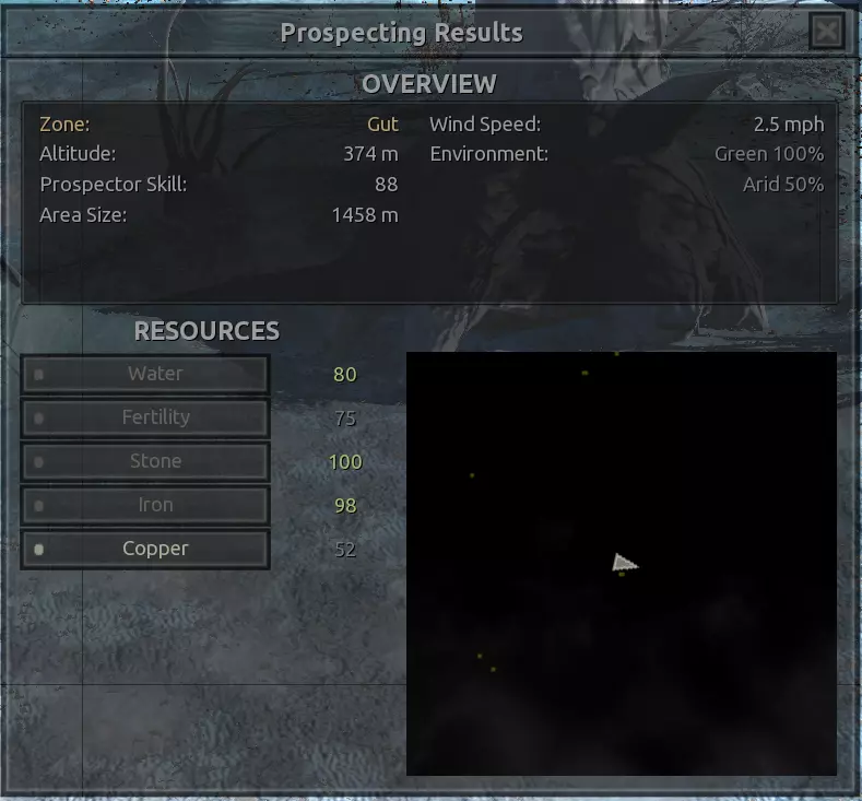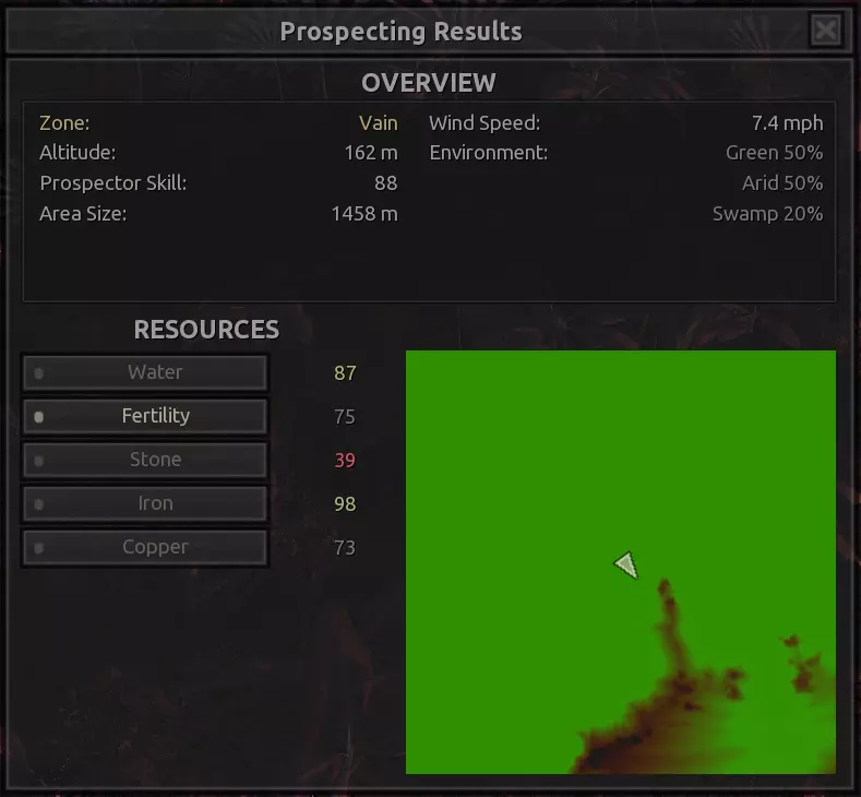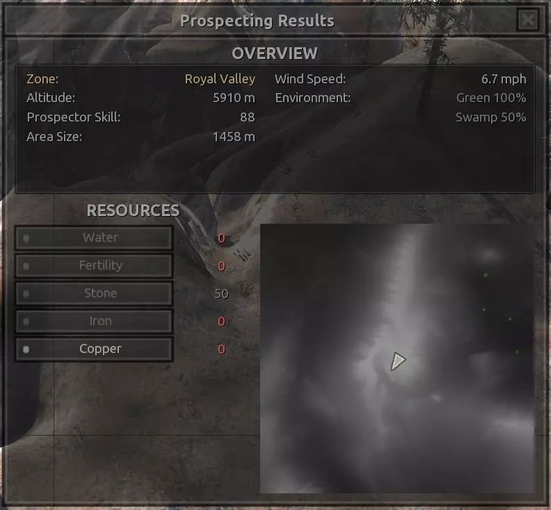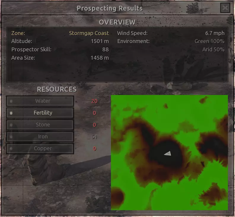 描述:从上述地点稍微向南一点。不过还不错。墙壁标志着附近城镇的所有权范围,你不能在那里以外的地方建造。普通农场的肥力足以让你获得不错的产量(小麦101%,蔬菜约80%,大麻约106%),所以不需要水培,但水源仍然不好,所以只需建造几口井。 资源:100%铁,50%铜,100%石头,20%水,复合肥力 危险:食人族袭击,食人族,食人族。食人族。大量的食人族。可能有铁蜘蛛? 特别说明:由于这个地点和上述地点(#1)非常接近,理论上你可以将这两个地点合并建造一个大型基地。