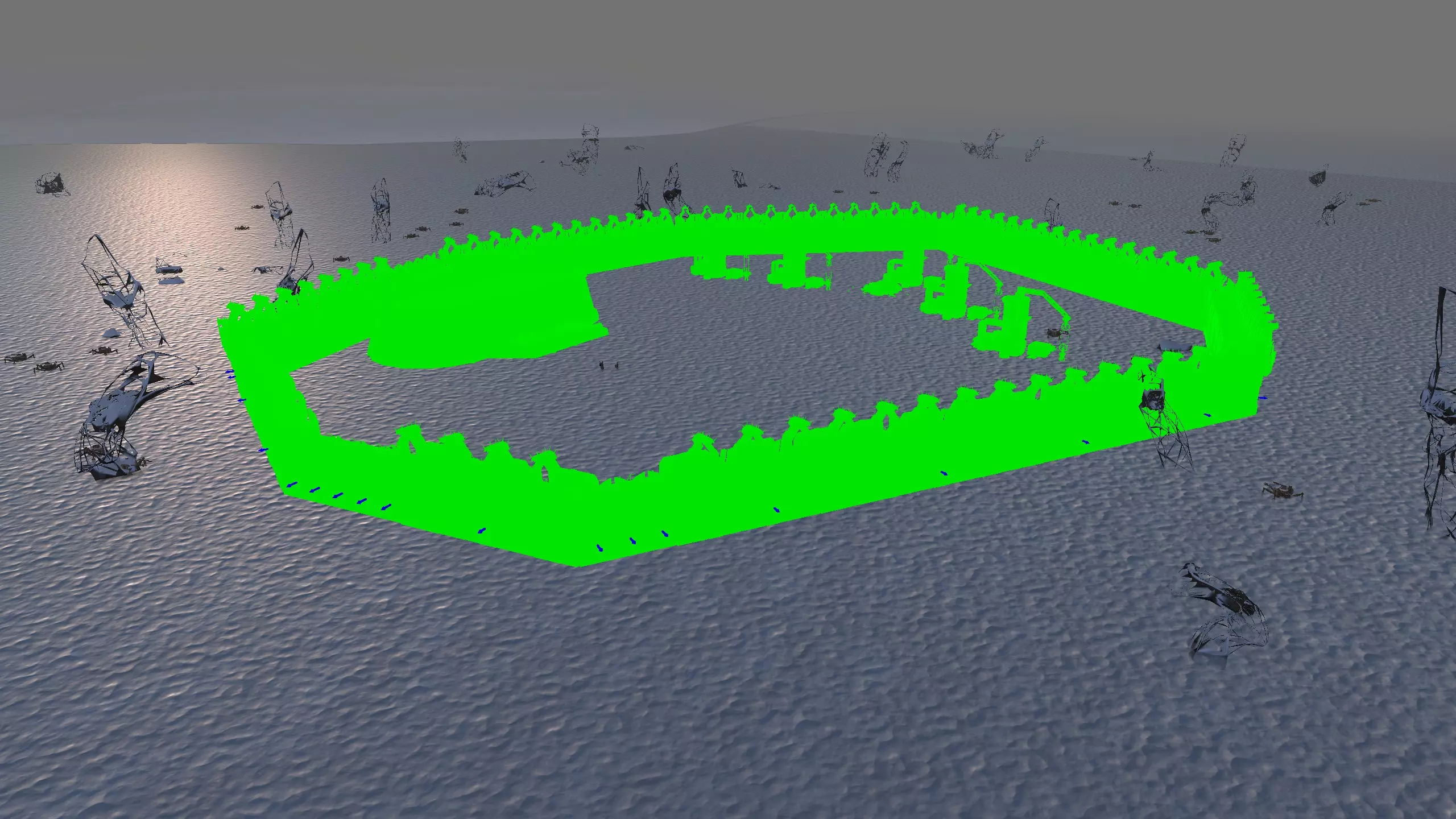 描述:游戏中最不祥的区域之一,但哇哦,这里的资源太丰富了。这是一个不错的小盆地,夹在悬崖之间,视野开阔,有足够的建造空间。你还能要求什么呢?或许是肥沃的土地吧——但这个地点并没有。是时候搞水培种植了! 资源:100%铁、100%铜、100%石头、100%水、0%肥力 危险:如果你足够疯狂到在这里建立基地,就不需要我来告诉你该害怕什么了。 回响 junk 礁