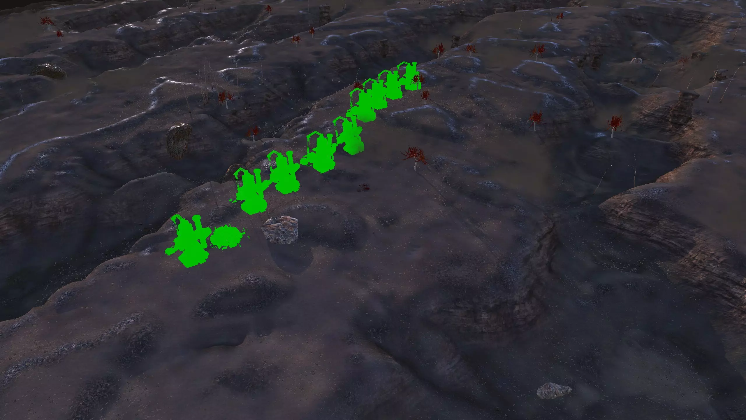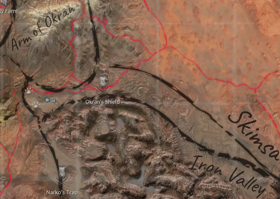 描述:这个地点非常适合作为你在阿拉克的基地,同时还能与Watcher's Rim保持一定联系。不过严格来说,这里大部分区域都属于阿拉克,所以我将其归类到阿拉克地区。总之,这里是我找到的最平坦的地形之一,足够你建造一个小型基地。但遗憾的是,这里资源匮乏且没有水源。你可能不需要深层钻井机,但肯定需要湿度农场和水培设施。 资源:约90%铁矿,约90%铜矿,40-50%石料,0%水源,0%肥力 危险:皮肤蜘蛛 Okran之臂 1)