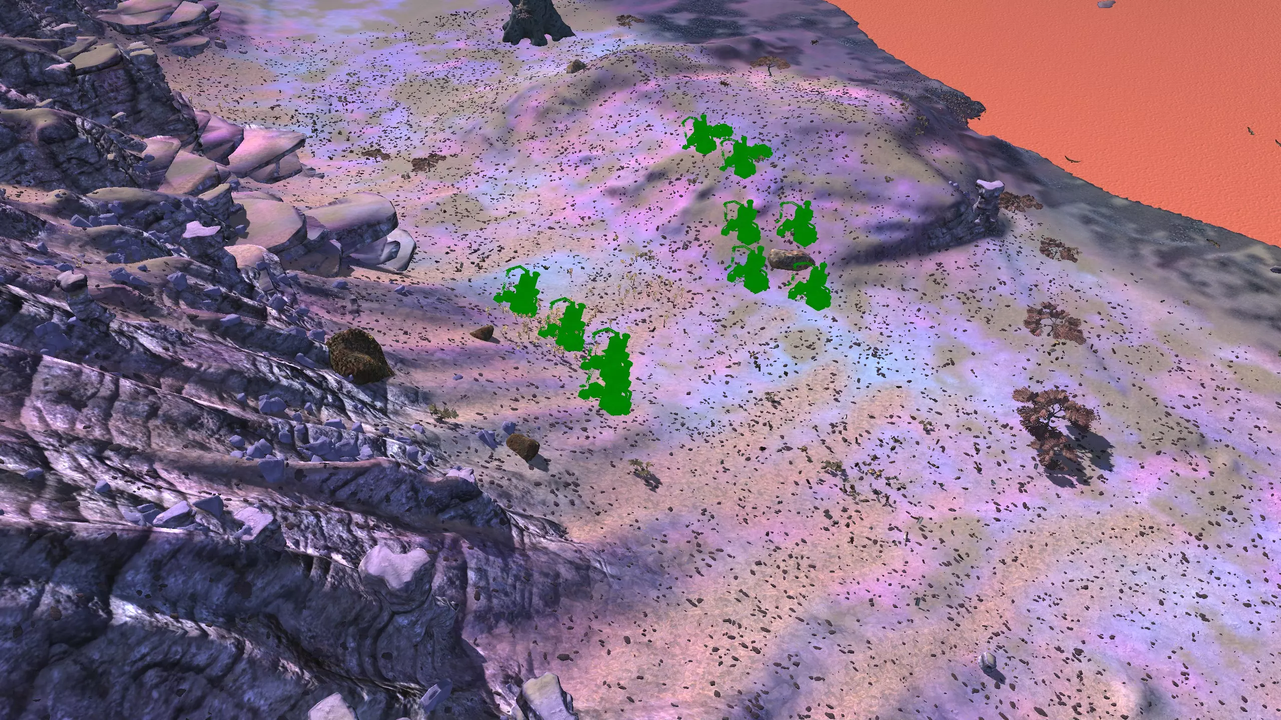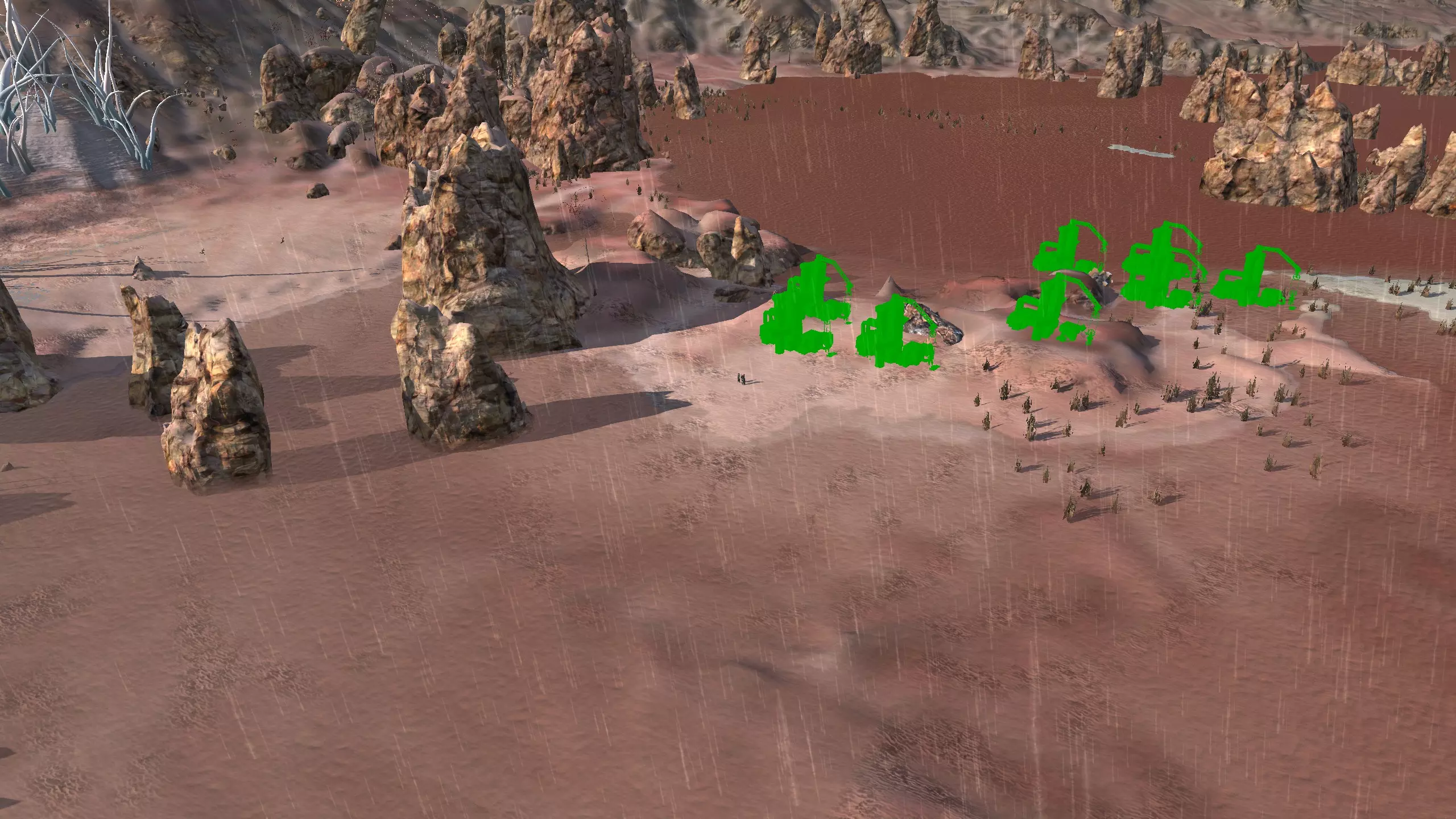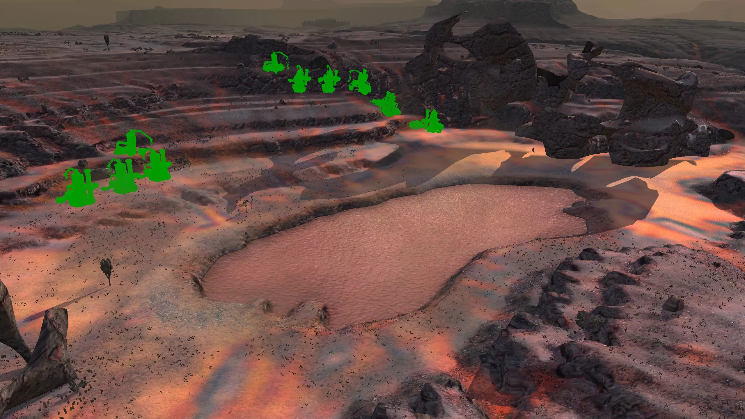 描述:一片适合建造的平坦区域,有点靠近大沙漠地带。我一开始其实想把它归到那个区域,但我做的所有勘探都显示“恒”,所以就归到这里了。 资源:100%铁,70%铜,100%石头,10-15%水,90%肥沃度 危险:掠行者、叛乱农民、流浪匪帮、追猎者、奴隶猎人、城市英雄、奴隶商人、漂泊小队