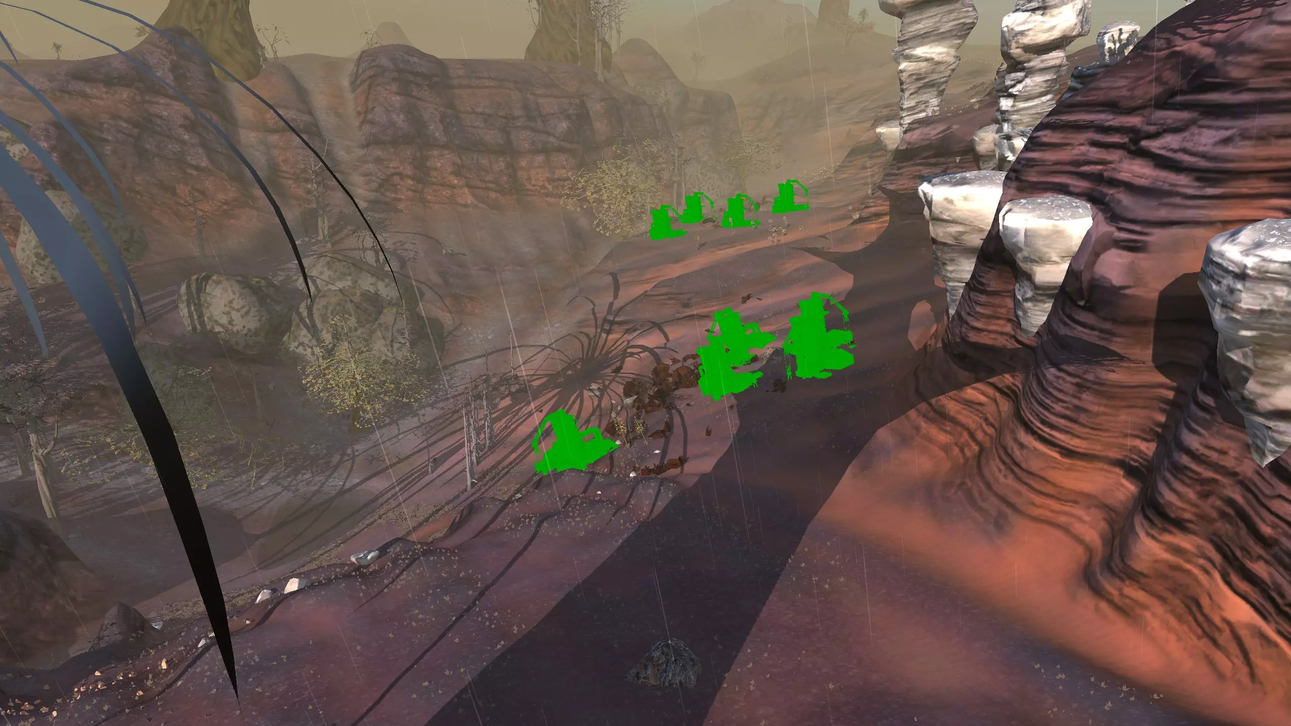 描述:位于雾岛边缘,这个地点专为最犹豫不决的玩家准备。你将在一个有点狭窄的小盆地里建立一个还算容易防御的基地,周围是勉强可以通行的山丘,资源相当丰富。这里适合那些既想随时接触雾人,又非常喜欢祈祷日的玩家。 因为你肯定会遇到祈祷日。 没什么别的可说的,你有空间建造一些不错的瞭望塔。如果你不想在这里建立完整基地,这里可以成为一个坚固的军事前哨。 资源:100%铁矿,75%铜矿,100%石料,60%水源,100%肥沃度 危险:可能会有零星的雾人小队、祈祷日、沙尘土匪袭击、食人族袭击!