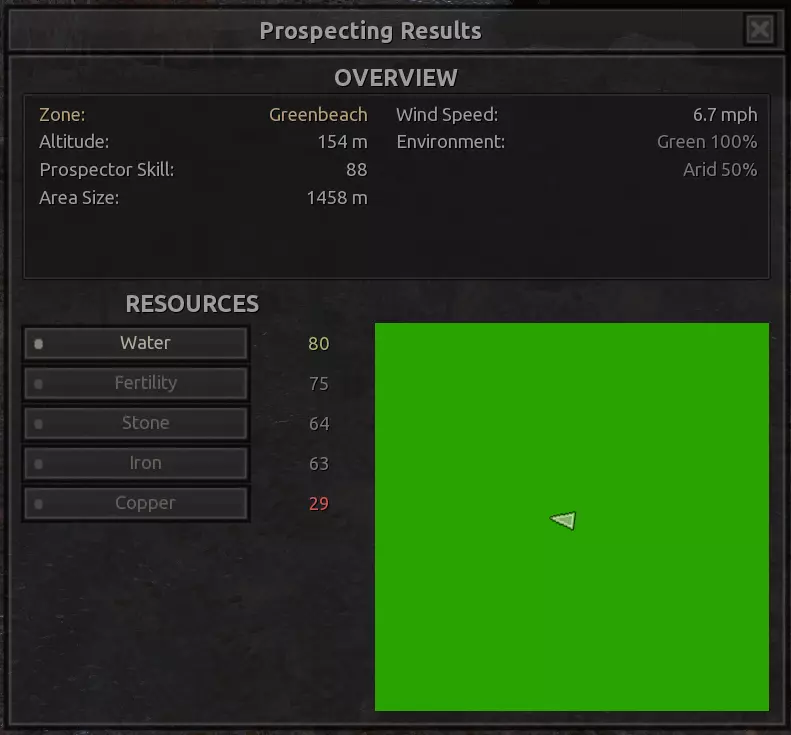 描述:这个地点实际上非常棒,它有着惊人的作物产量(小麦117%!),丰富的资源可利用,位于海岸边,并且有足够的建造空间。 资源:100%铁,50%铜,100%石头,80%水,100%绿地,50%干旱地 危险:不知为何,我在这里看到了一些狂战士,但和往常一样,还有食人族。会有食人族袭击。