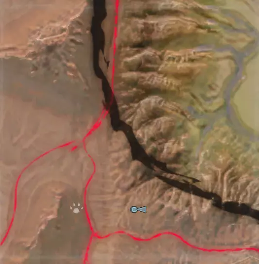 描述:如果你讨厌水,但又想待在大沙漠最北部的中心区域,这里就是你的不二之选。此时我才开始意识到,大沙漠比我最初想象的更加肥沃,也充满了更多有用的资源。 这个地点比其他一些地点(比如1号到4号)更靠近道路,所以你可能会比在那些地点看到更多随机小队经过。 资源:100%铁矿,70%铜矿,100%铜矿,10%水源,90%肥沃度 危险:掠行者、叛乱农民、流浪强盗、追猎者、沙忍者、奴隶猎人、城市英雄、奴隶商队和贵族猎人。 6)