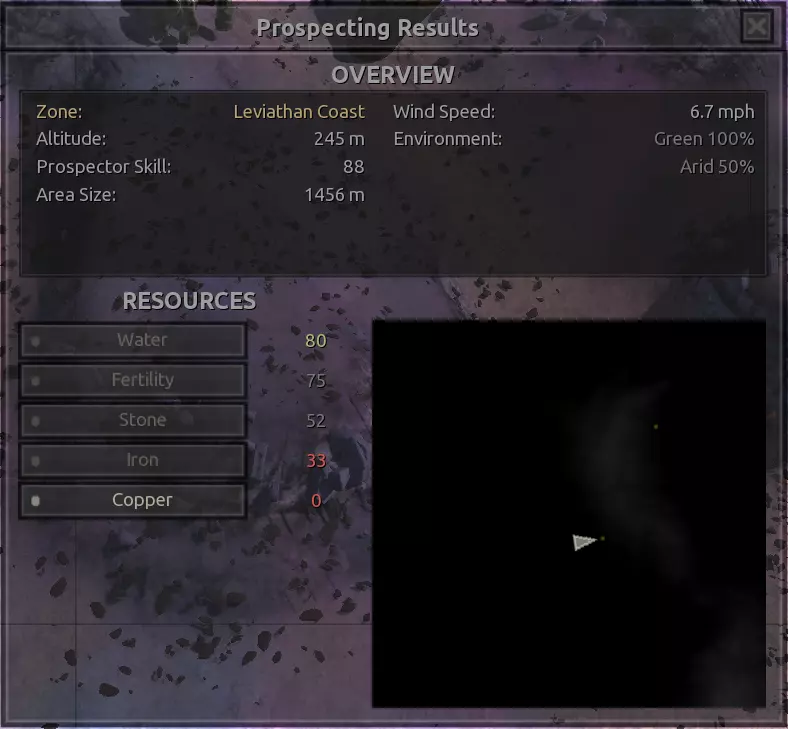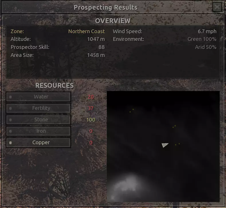 描述:位置相当不错,没什么特别之处。有一些有趣的高度差,左侧有铜矿,右侧有铁矿。这里几乎正好位于北海岸和隐藏森林的边界,也靠近世界尽头,所以至少这一点很不错,你有几个地方可以快速跑去卖掉制作的东西,或者在需要时匆忙购买物品。 资源:100%铁矿,50%铜矿,100%石头,80%水源,100%绿地,50%干旱地 危险:食人族?不清楚?
