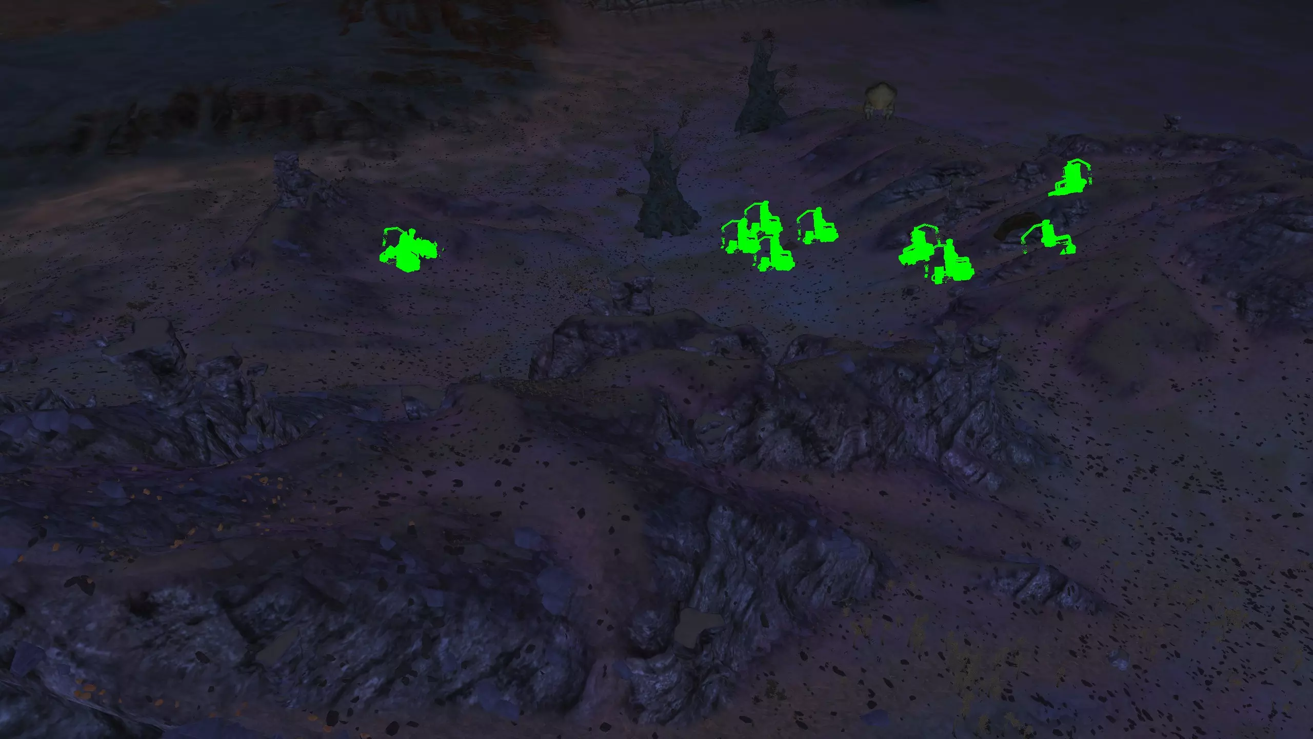 描述:在“弹坑”区域,并没有什么特别突出的地点,但我想提一下该区域的中心位置。如果你考虑在这里建造基地,就必须配备水培设施,同时还需要水源,所以毫无疑问你会需要“强化集水耕作”技术。而且这里的矿产资源也不太理想,或许还得配备“深层钻探采矿”技术。 没什么其他好说的了。不过,这个地方对于低等级、装备不足的小队来说极其危险,所以一定要小心!绝非玩笑! 资源:0% 铁,0% 铜,0% 石头,0% 水,0% 肥力 危险:喙嘴兽。数量非常多。 2-D) 黑指,死亡之地,渣滓 黑指 1)