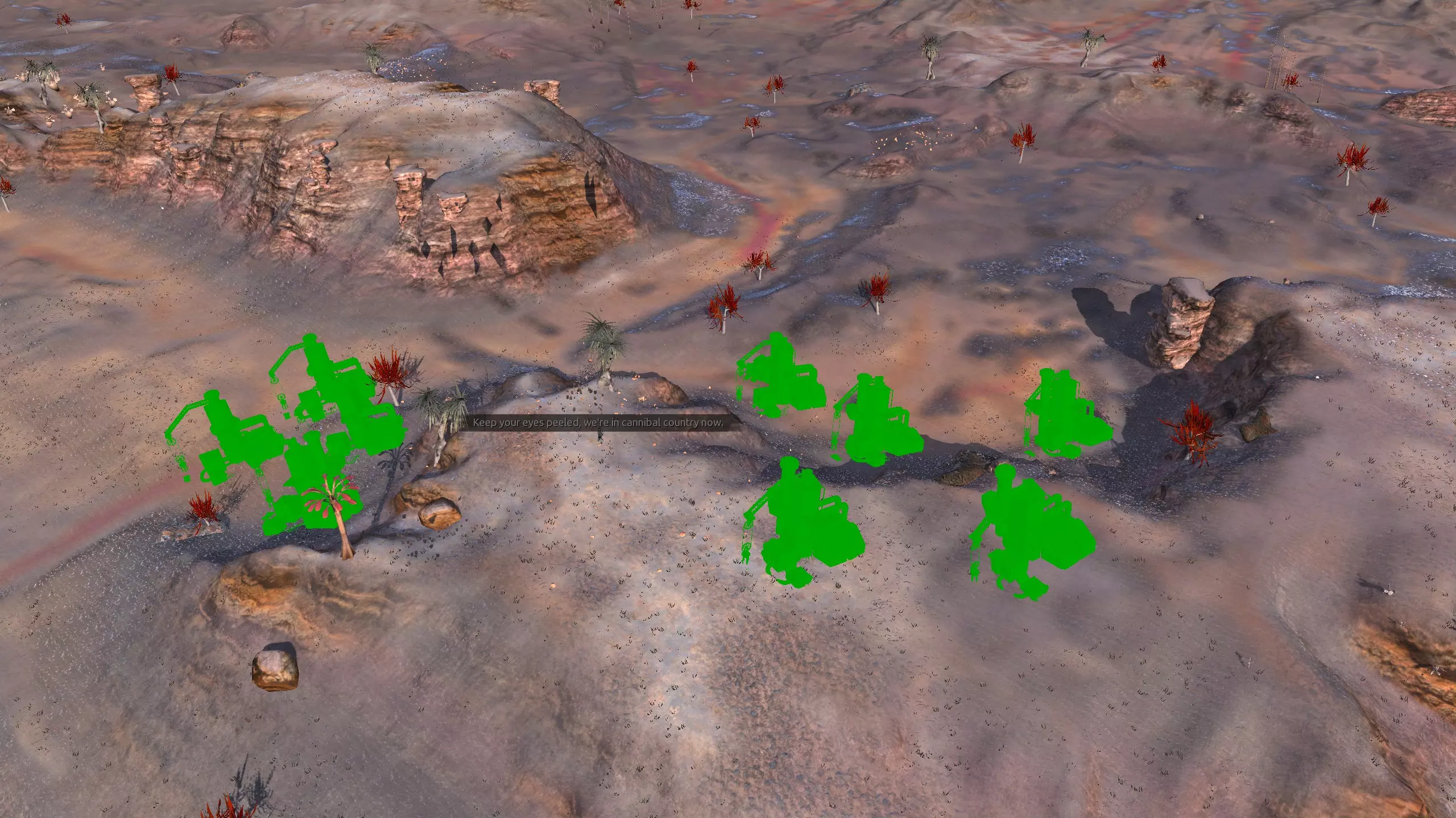 描述:这里就像上面的食人族平原#3,但情况更糟。我建议你先去看看那个地方,但严格来说这里也是个不错的定居点。这里的资源分布得更分散一些,石头也更难找到。 资源:100%铁,50%铜,90%石头,80%水,100%绿色区域,50%干旱区域 危险:食人族! 2-C) 食人族平原第二部分 7)