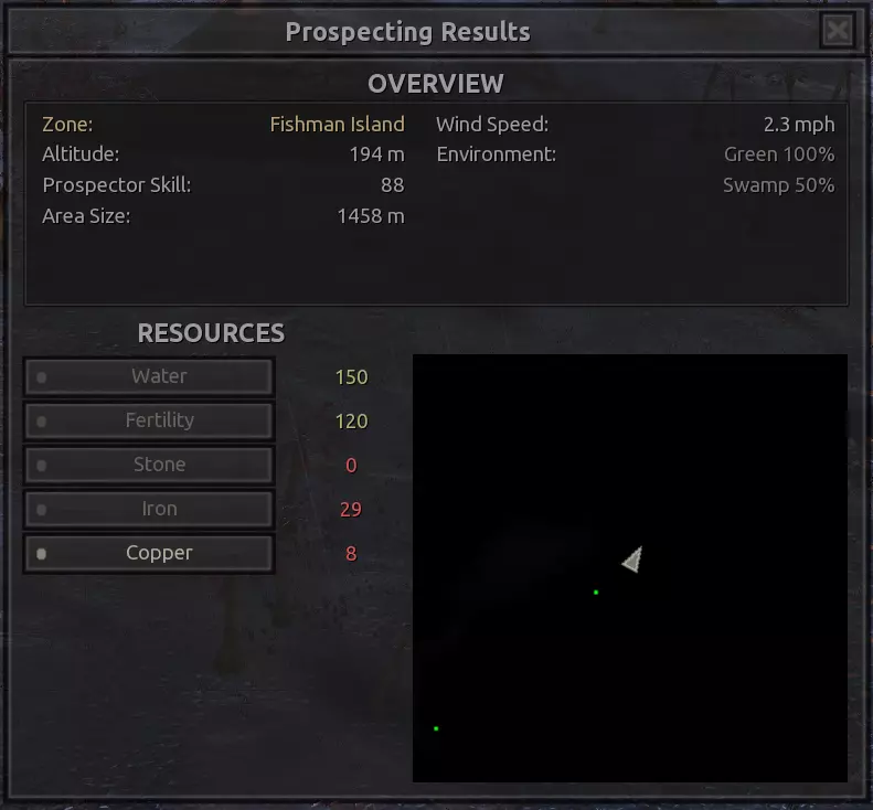 描述:这个地点比上面那个更容易用墙围起来,因为你可以沿着基地后面的小山修一堵墙,而且你所有的矿石大多都在不碍事的地方。还不错。不过没什么太多可说的。 资源:100%铁,50%铜,80-90%石头,80%水,100%绿色地形和50%干旱地形 危险:食人族袭击、喙嘴兽、偶尔出现的铁蜘蛛。 无名群岛 又名:衡之尾,不过这是非官方名称,来源于……我安装的某个mod,具体哪个我也不清楚。 为了解决我游戏版本与《剑士》原版之间的这种不一致,我用以下截图向你保证,你会看到和我相同的资源情况。