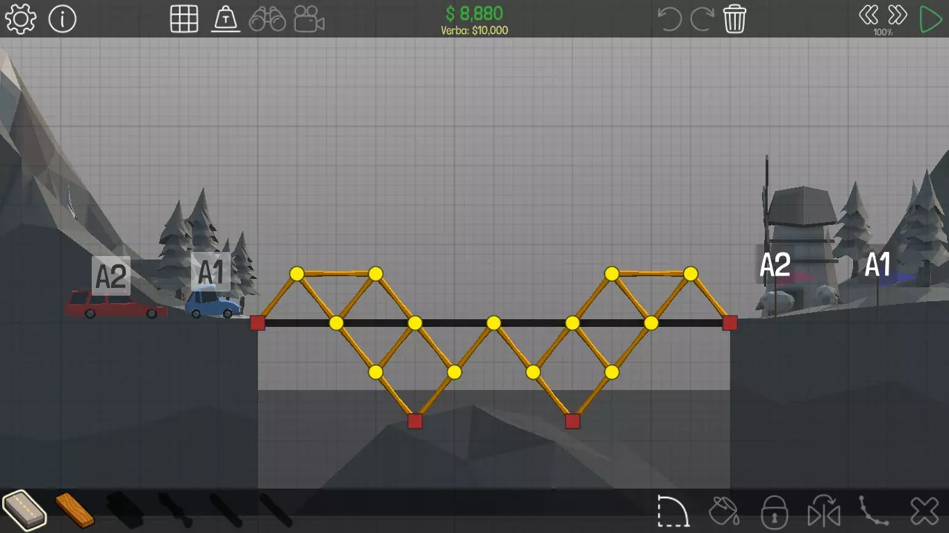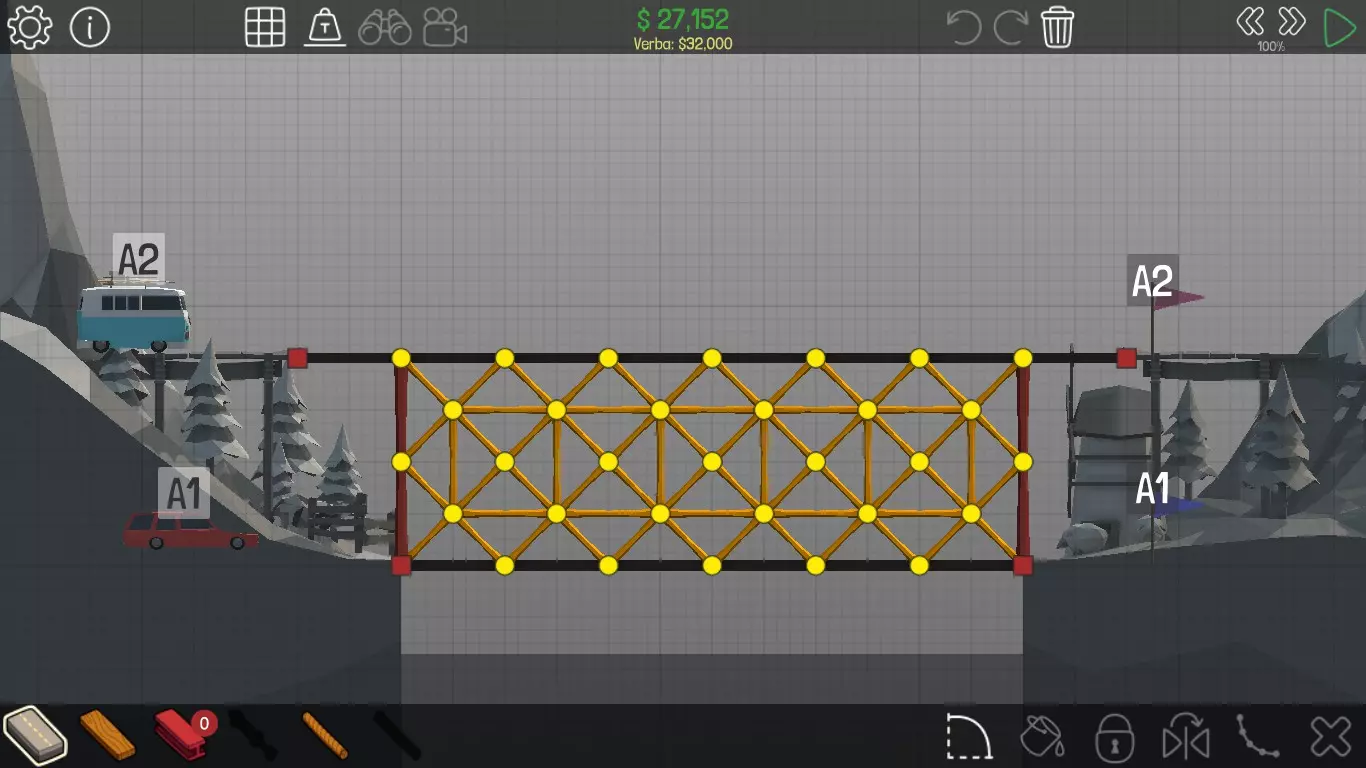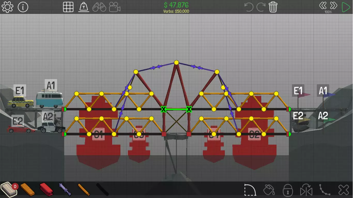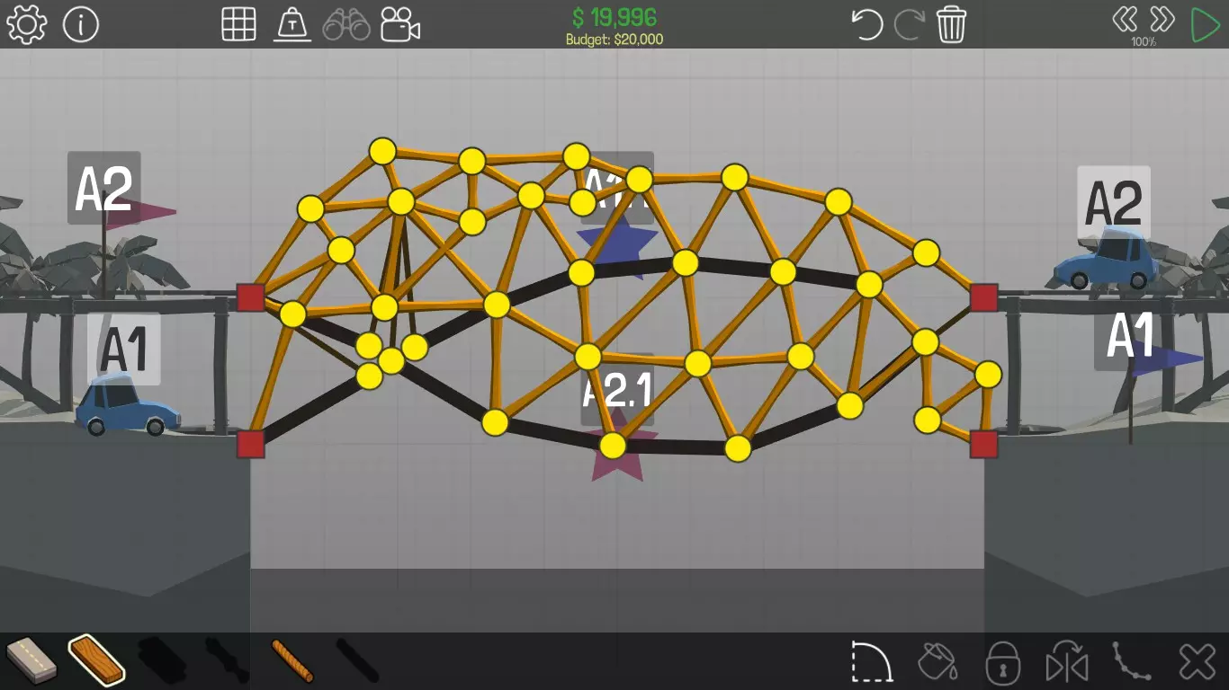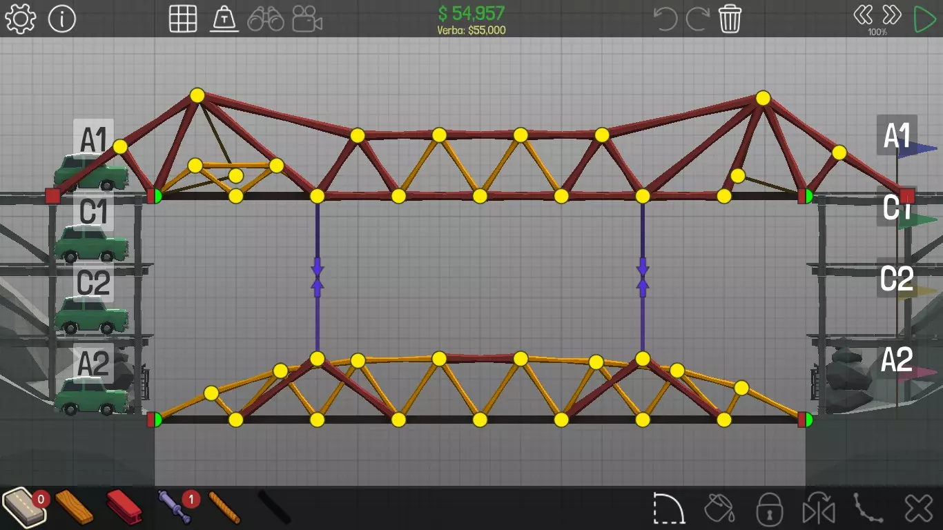 《桥梁建筑师》中每个桥梁的方案均遵循资源和资金限制。游戏版本为1.0.5 说明 若有任何疑问,或觉得某个方案过于复杂难以理解,又或有任何修改建议,请发表评论。