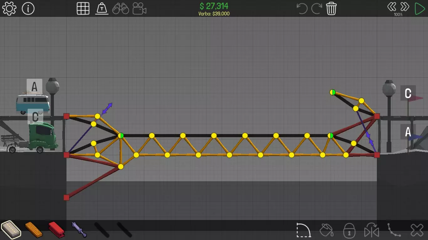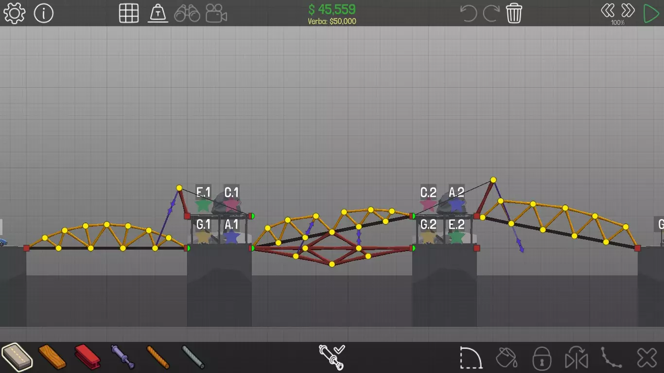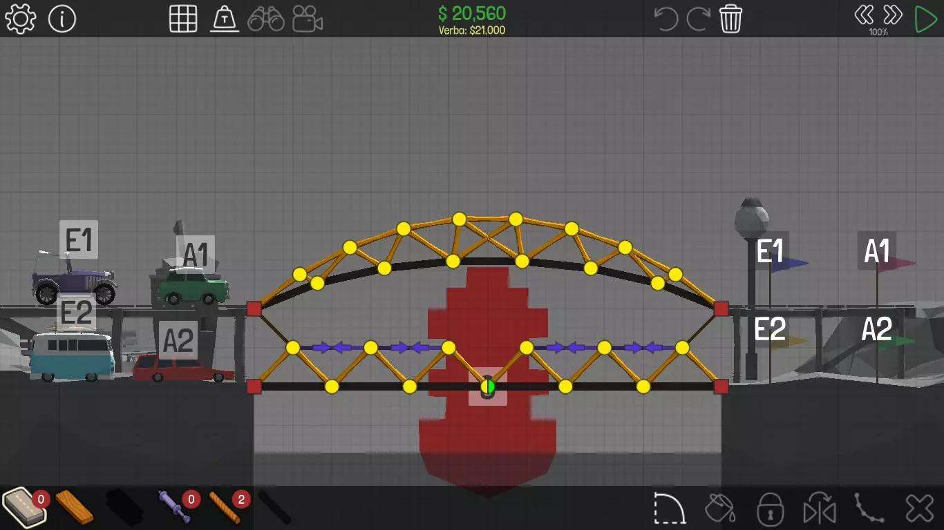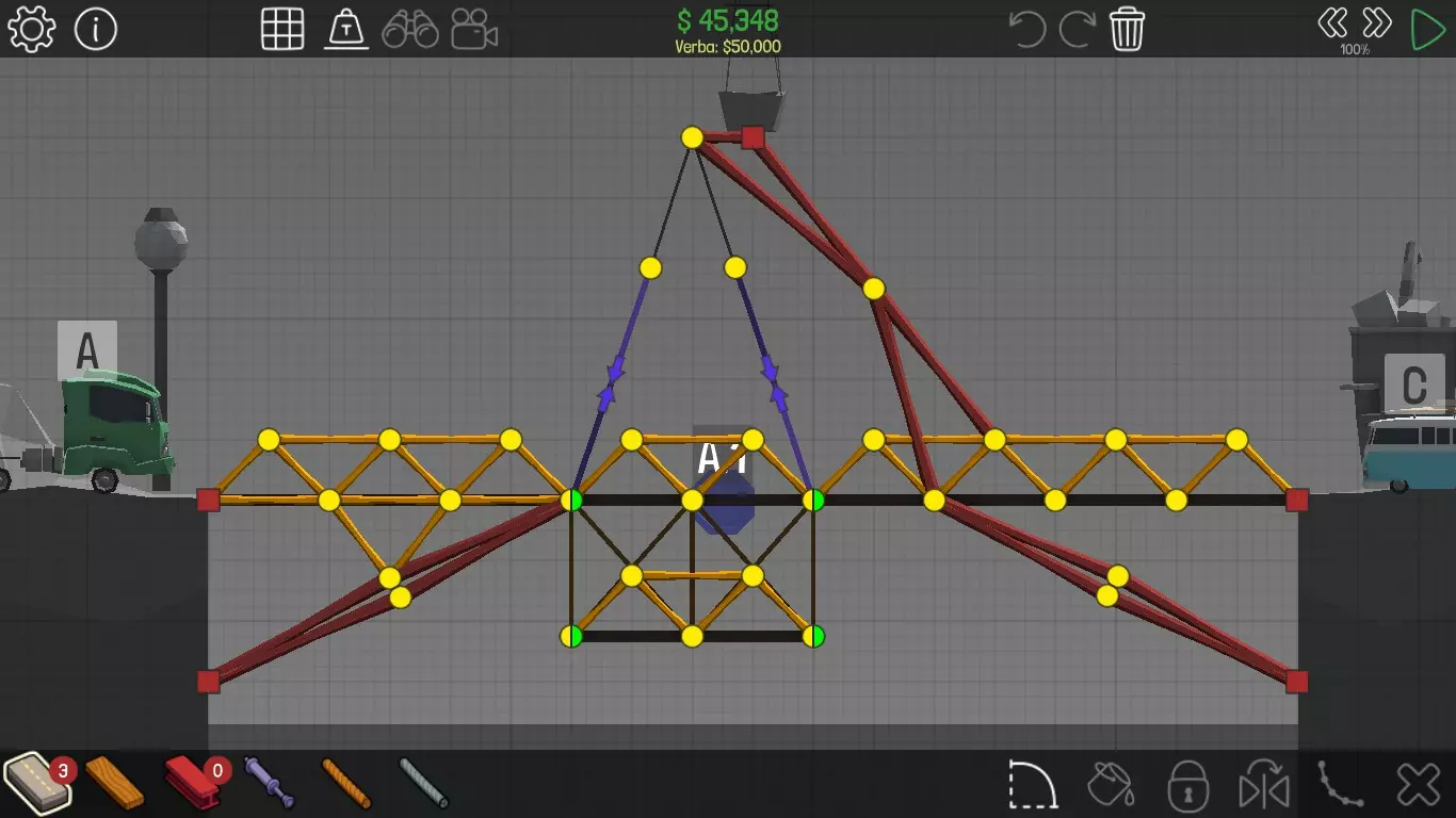 《桥梁建筑师》中每个桥梁的方案均遵循资源和资金限制。游戏版本为1.0.5 说明 若有任何疑问,或觉得某个方案过于复杂难以理解,又或有任何修改建议,请发表评论。