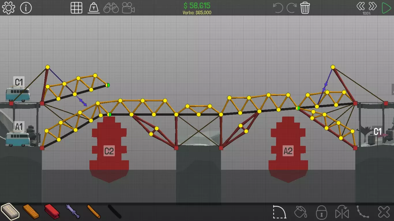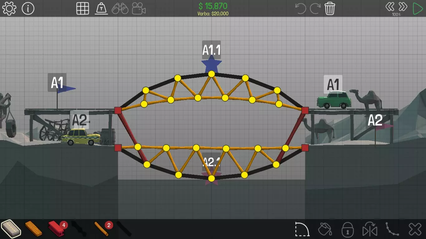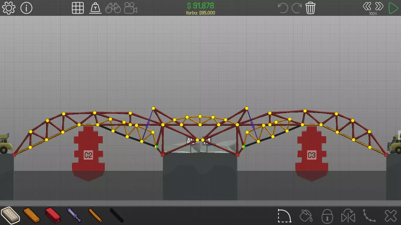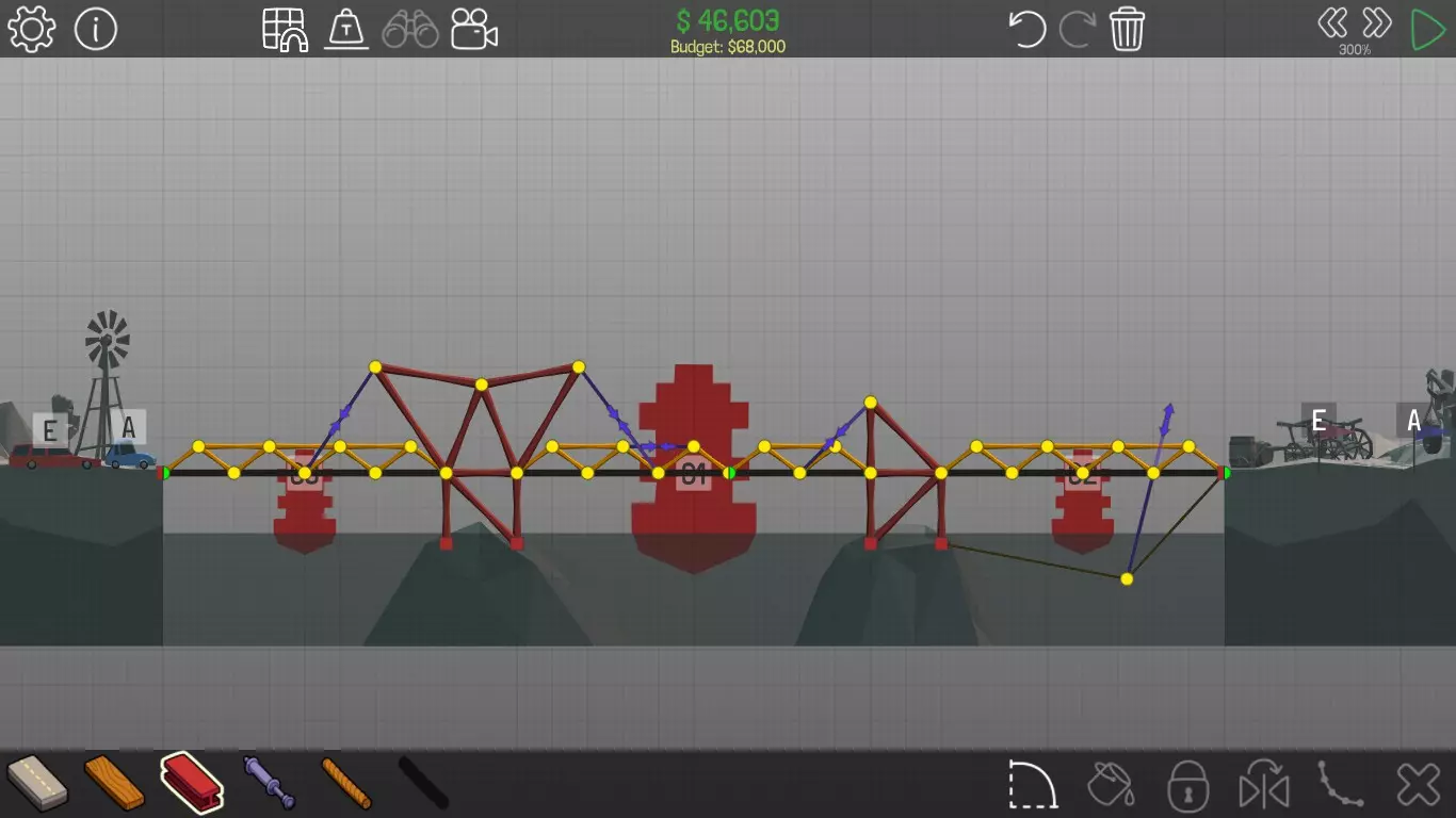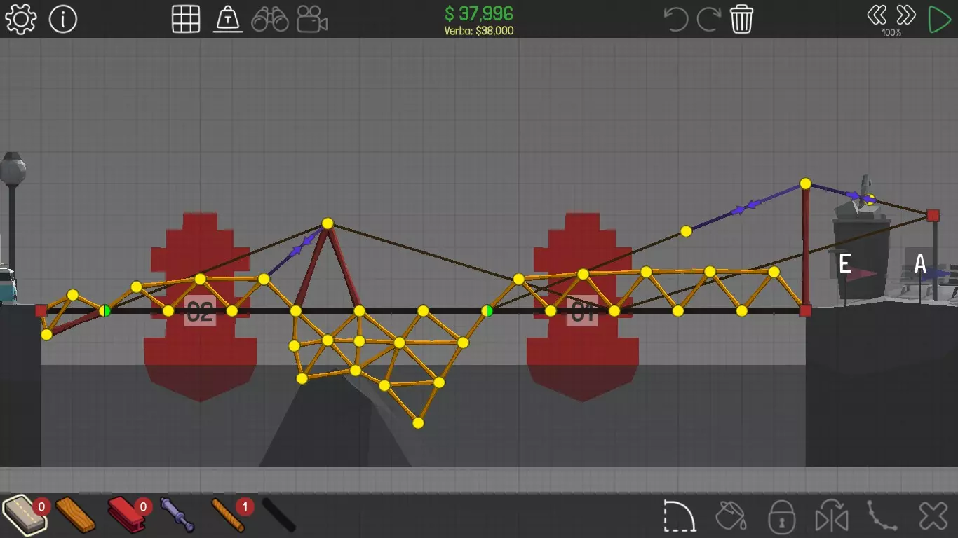 《桥梁建筑师》中每个桥梁的方案均遵循资源和资金限制。游戏版本为1.0.5 说明 若有任何疑问,或觉得某个方案过于复杂难以理解,又或有任何修改建议,请发表评论。