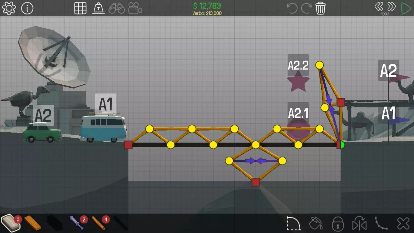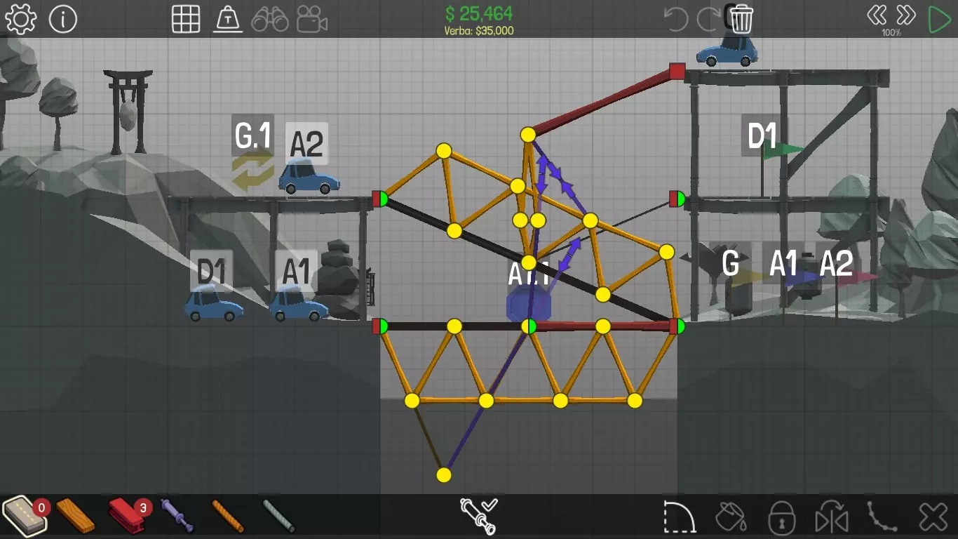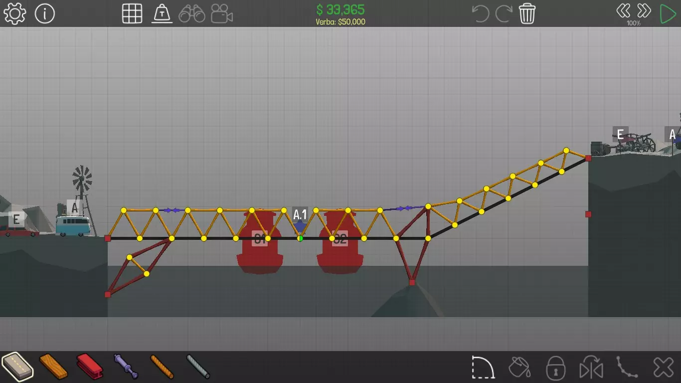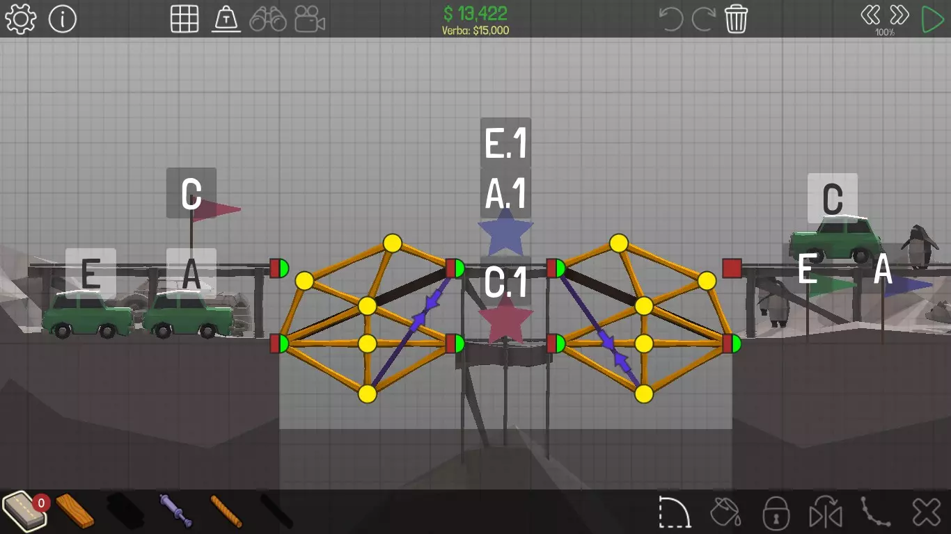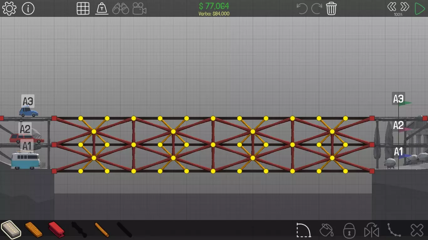 《桥梁建筑师》中每个桥梁的方案均遵循资源和资金限制。游戏版本为1.0.5 说明 若有任何疑问,或觉得某个方案过于复杂难以理解,又或有任何修改建议,请发表评论。