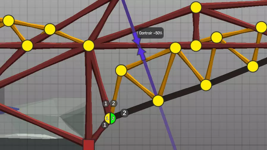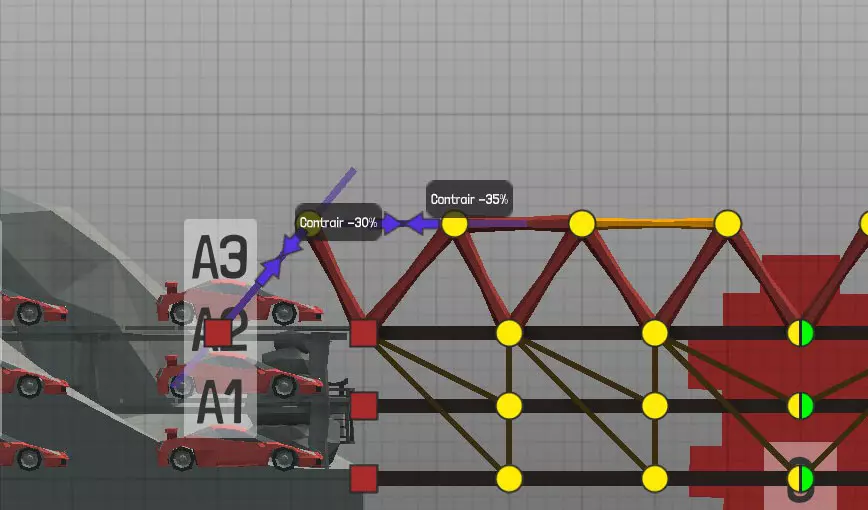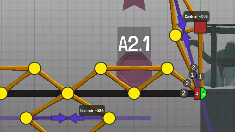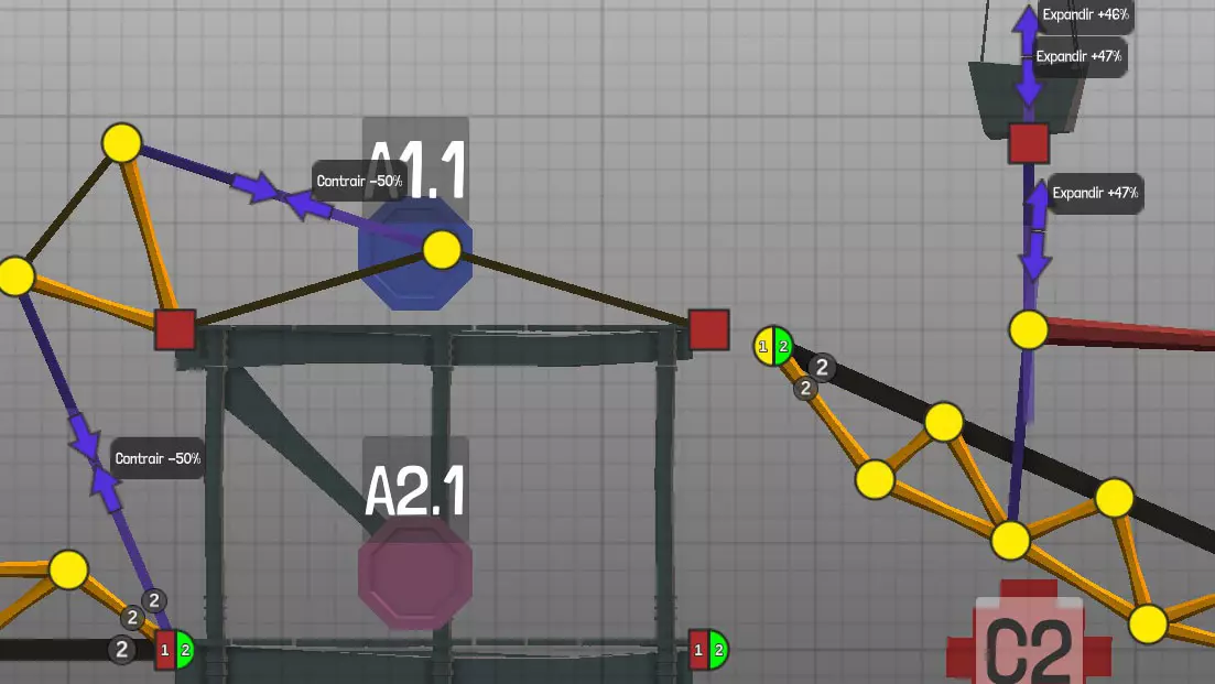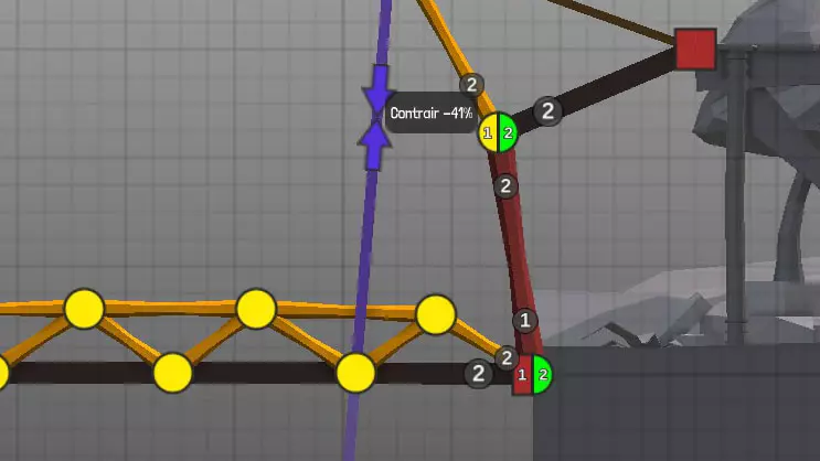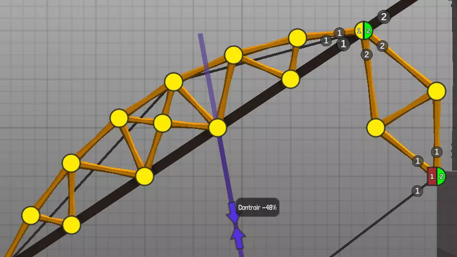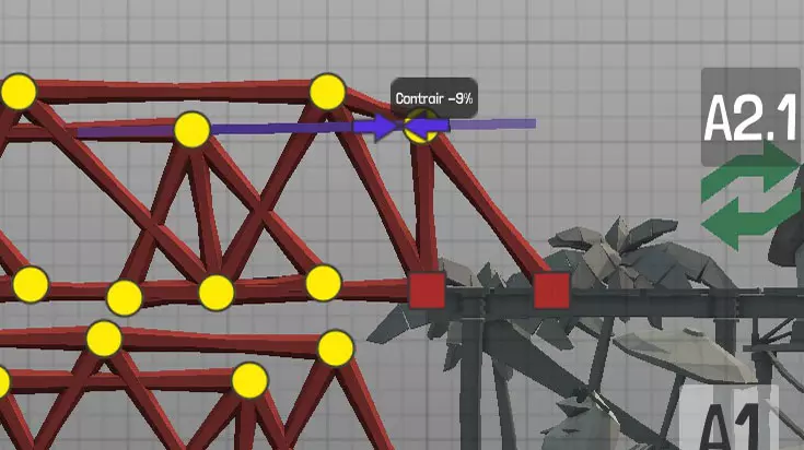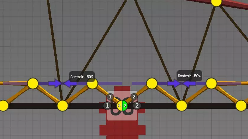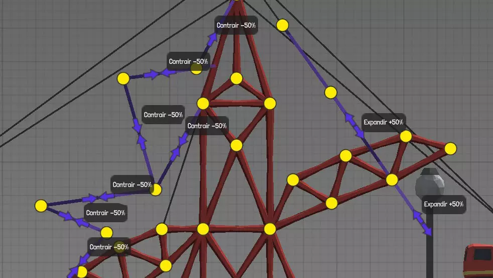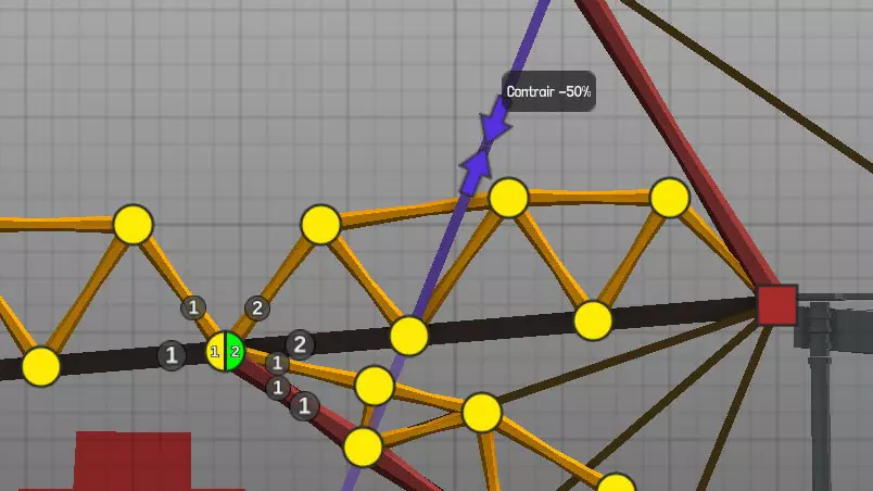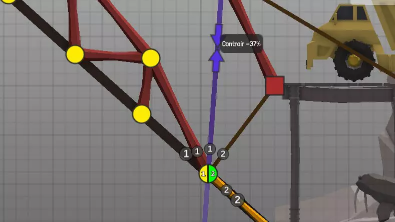 设计中以黄色圆点表示的各种材料(道路、木材、绳索、钢缆、液压系统、钢梁)的连接点(或接合点)。地图上的固定点: