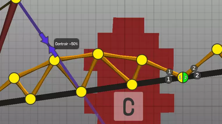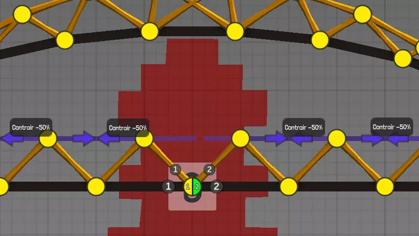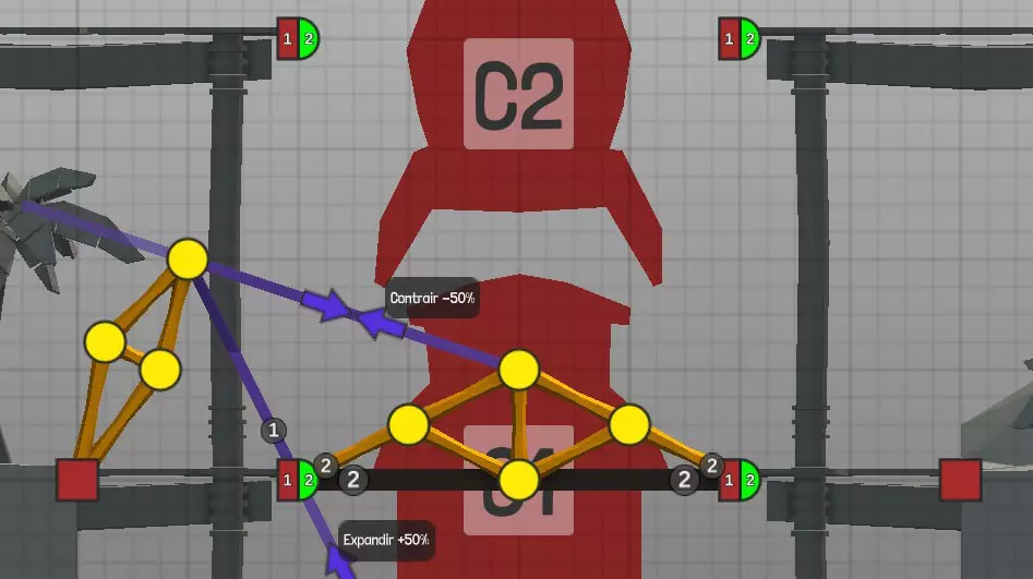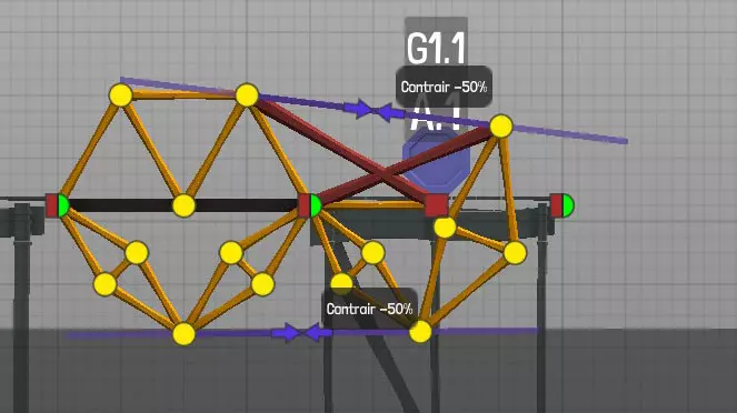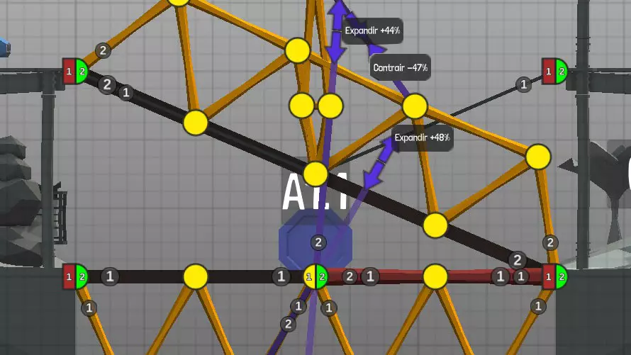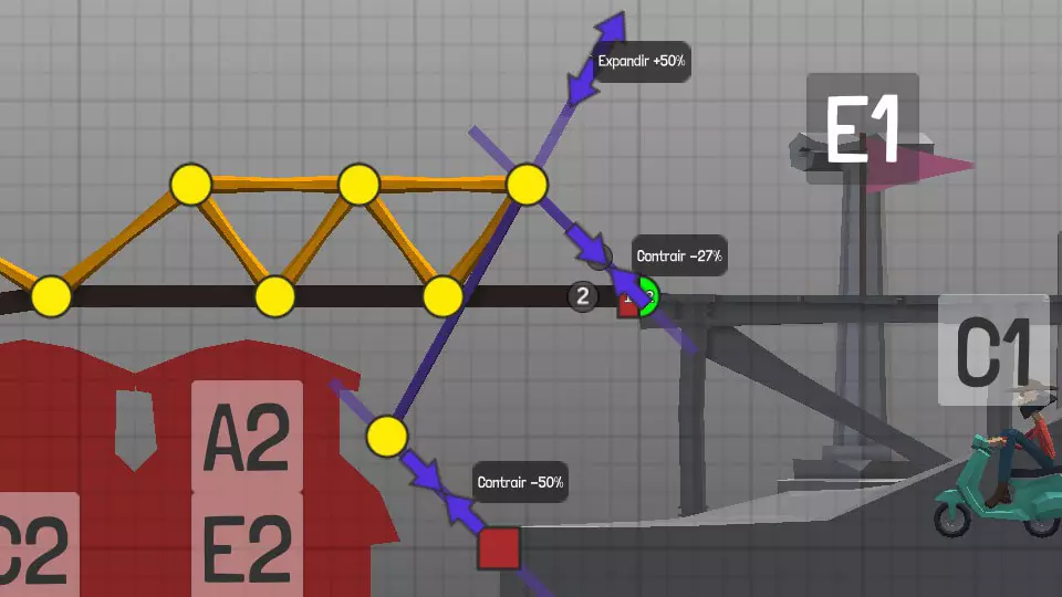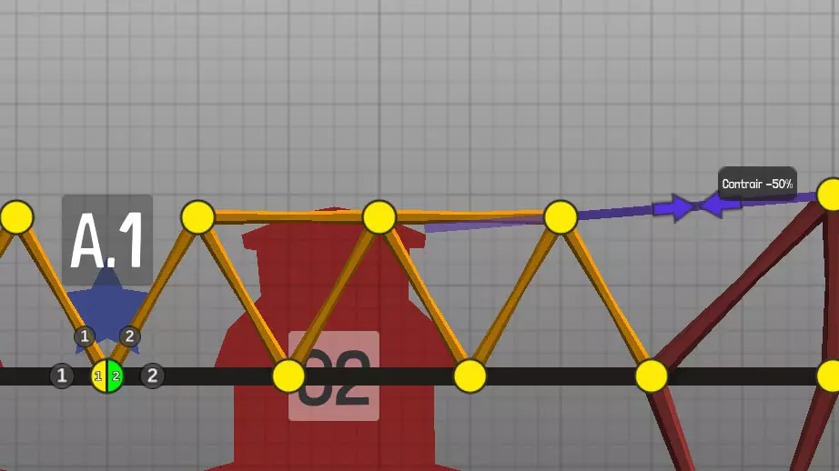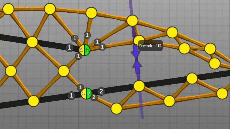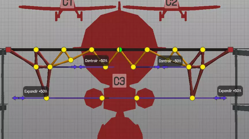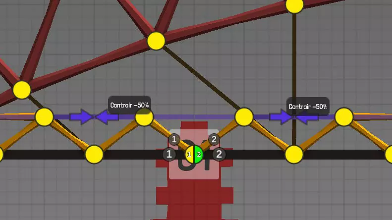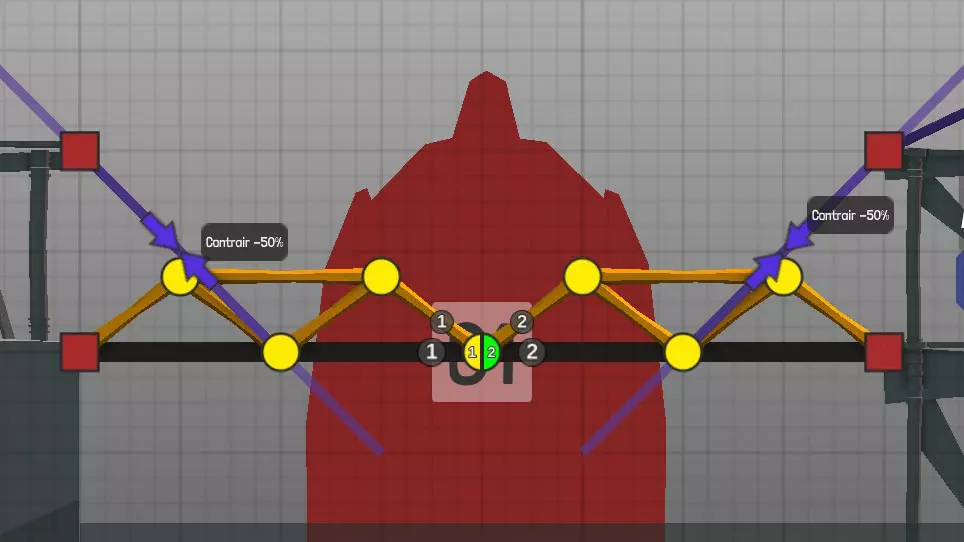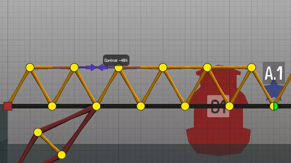 设计中以黄色圆点表示的各种材料(道路、木材、绳索、钢缆、液压系统、钢梁)的连接点(或接合点)。地图上的固定点: