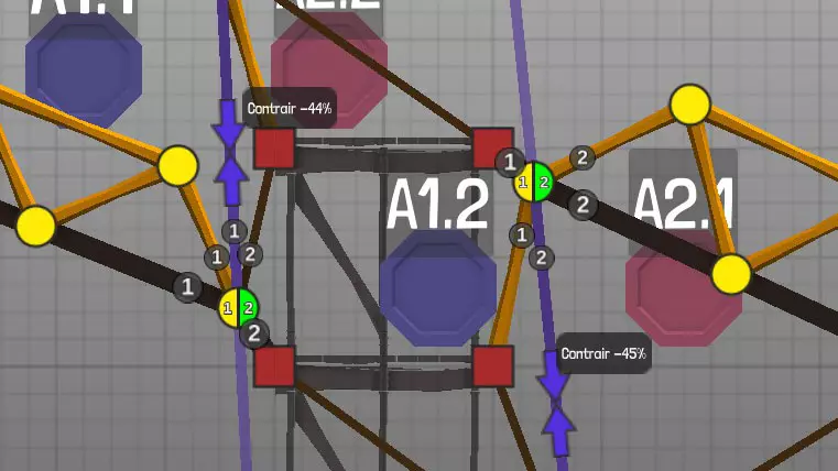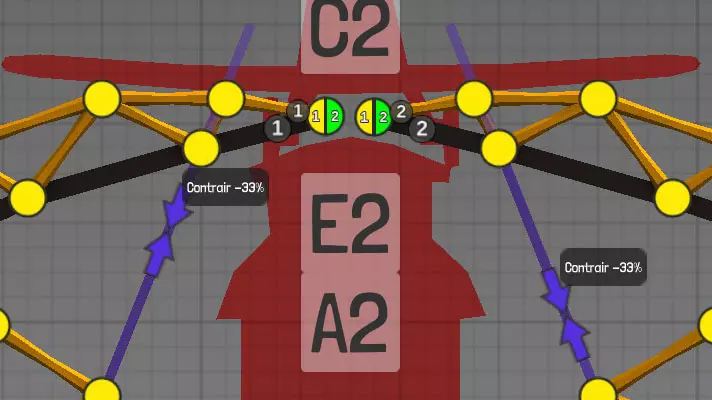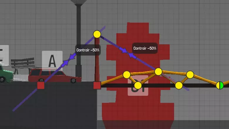 连接点或关节可实现连接与分离功能。 测量单位显示为米(m)和【PolyNetrons】(PN)。 道路:为车辆提供通行表面,以黑色图案表示。