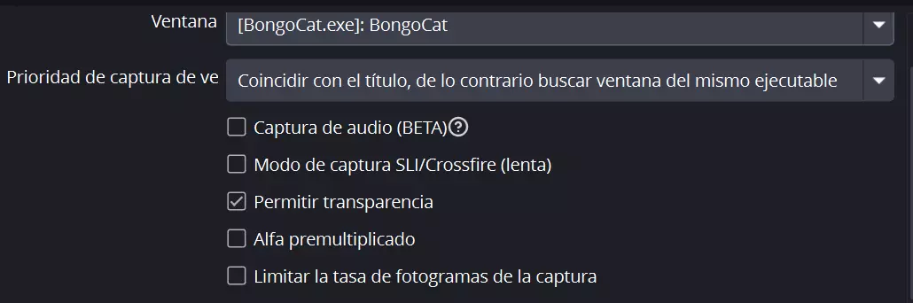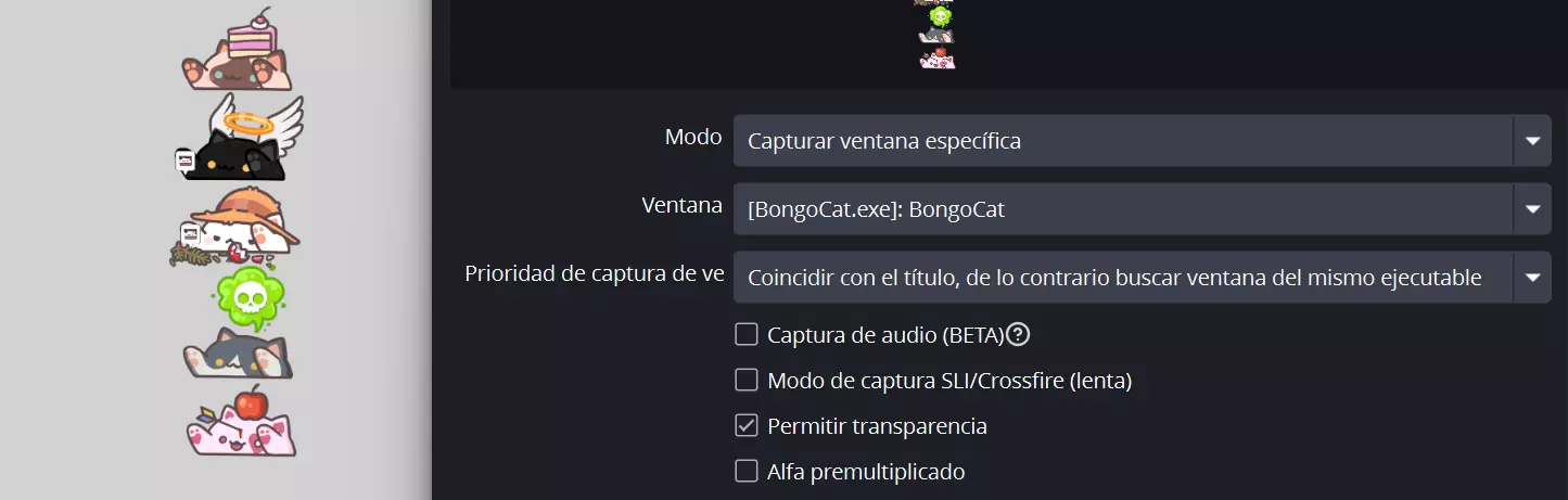 本指南展示了如何在OBS中使用多种方法设置邦戈猫(Bongo Cat),从最简单且推荐的选项到可靠的替代方案。内容包括游戏捕获和窗口捕获的使用、透明度校正设置、颜色滤镜和亮度键技术,以及可能影响邦戈猫在直播中显示效果的常见问题。无论你是追求最清晰的显示效果,还是在游戏捕获失败时需要备用方案,本指南旨在帮助主播让他们的猫咪在直播中清晰可见并充满活力,同时将视觉问题降至最低。 替代方法1 – 简易设置 这是在OBS中设置邦戈猫最简单快捷的方式。大多数用户可以使用游戏捕获功能,但效果可能因OBS版本、Bongo Cat与OBS的交互方式或个人电脑/笔记本电脑的配置而有所不同。 如果游戏捕获无法正常工作,请参考替代方法3。 开始前,请打开Bongo Cat的设置,并确保此方法下的透明度修正功能处于关闭状态。