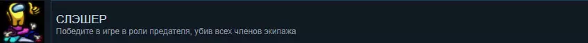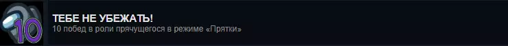 简单的累积型成就。在这里你是否存活并不重要。关键是最后要有一名【成员】存活,并且你能看到“Победа”的提示。 你可以全力以赴,仿佛这是你一生的游戏;也可以挂着不动(AFK),在游戏一开始就死亡。最重要的是不要退出,等待游戏结果。成就累积速度很快,因为10场游戏中有10场你都是以平民身份进行。 成就:Достижения Предателя