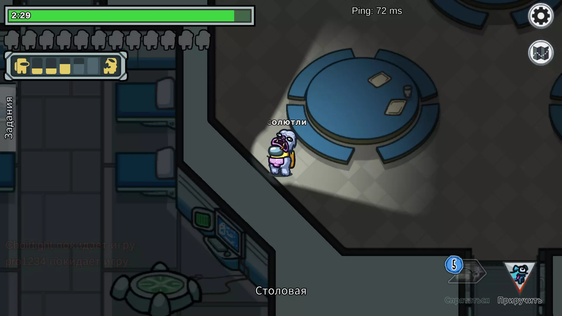 需要在绿色计时器结束前完成所有任务。当然,也不能让自己被杀死,因为无法以幽灵状态完成任务。 首先,要找到一个设置中任务数量少且绿色计时器很长的房间。 其次,只需跑动并完成任务。如果内鬼在附近,最好不要冒险。停止执行任务并跑向通风口。任务完成的成功与否在很大程度上取决于任务的数量以及具体出现的【任务】类型。最麻烦的是涉及电线、文件下载和医疗室扫描的任务,因为必须长时间待在一个地方。