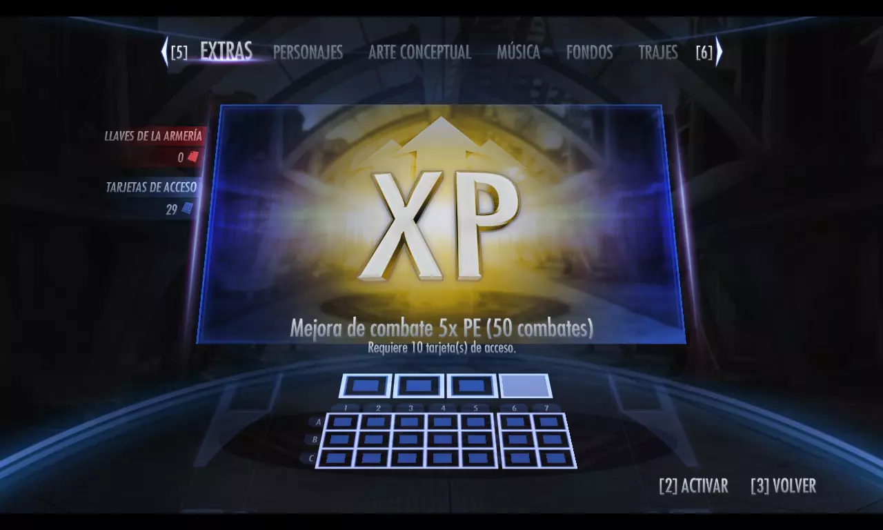 我已经获得了足够的访问卡来购买5倍战斗强化,但我决定利用剩余的使用次数继续提升等级,从而获得更多的战斗卡(记住不要花费太多,计算一下距离成就Acaparador还需要多少)