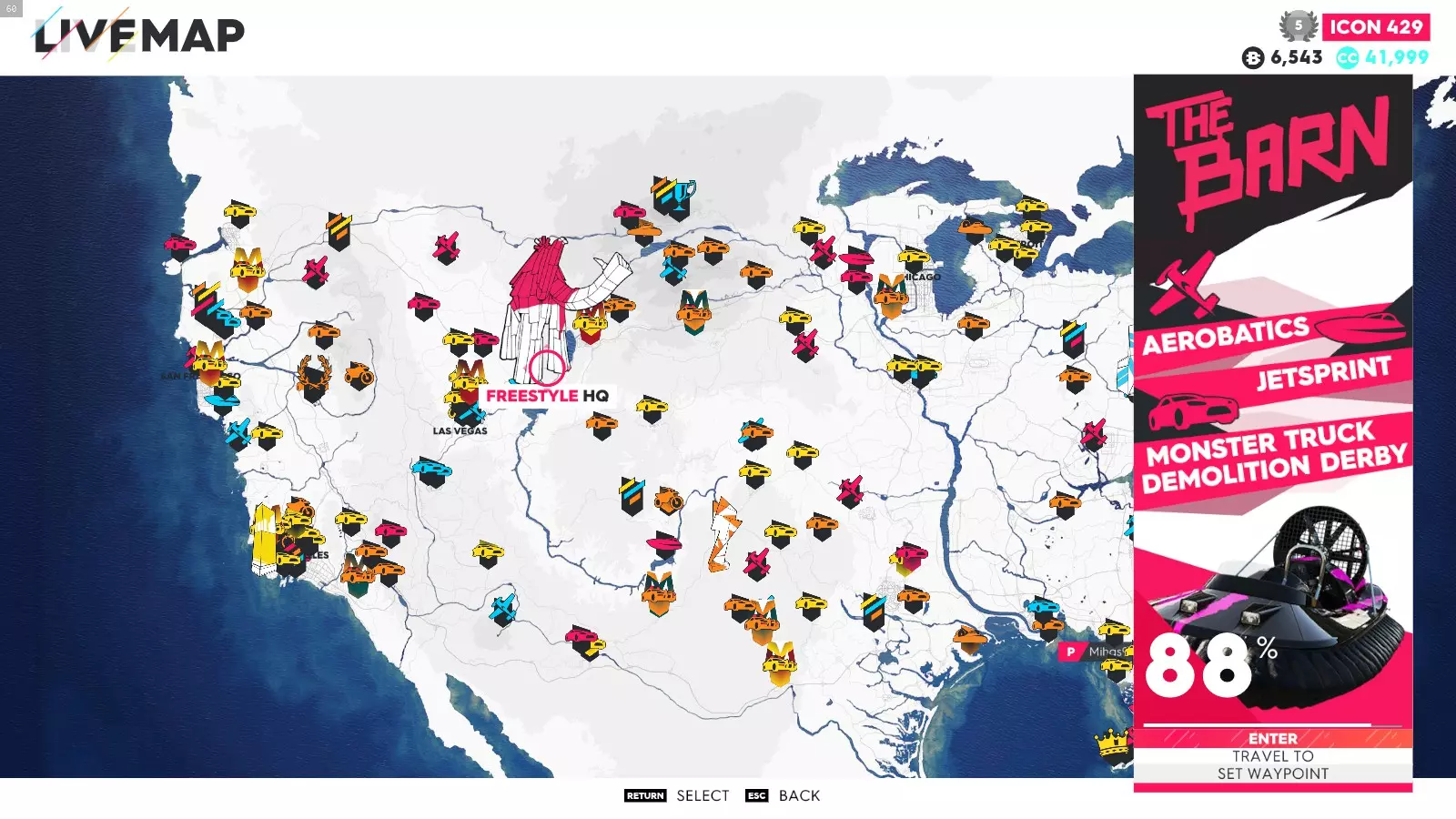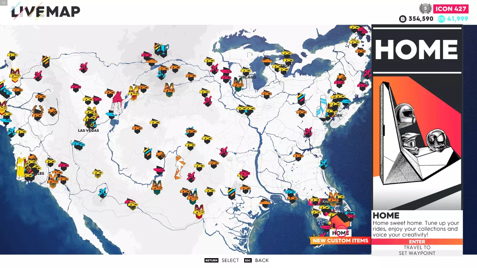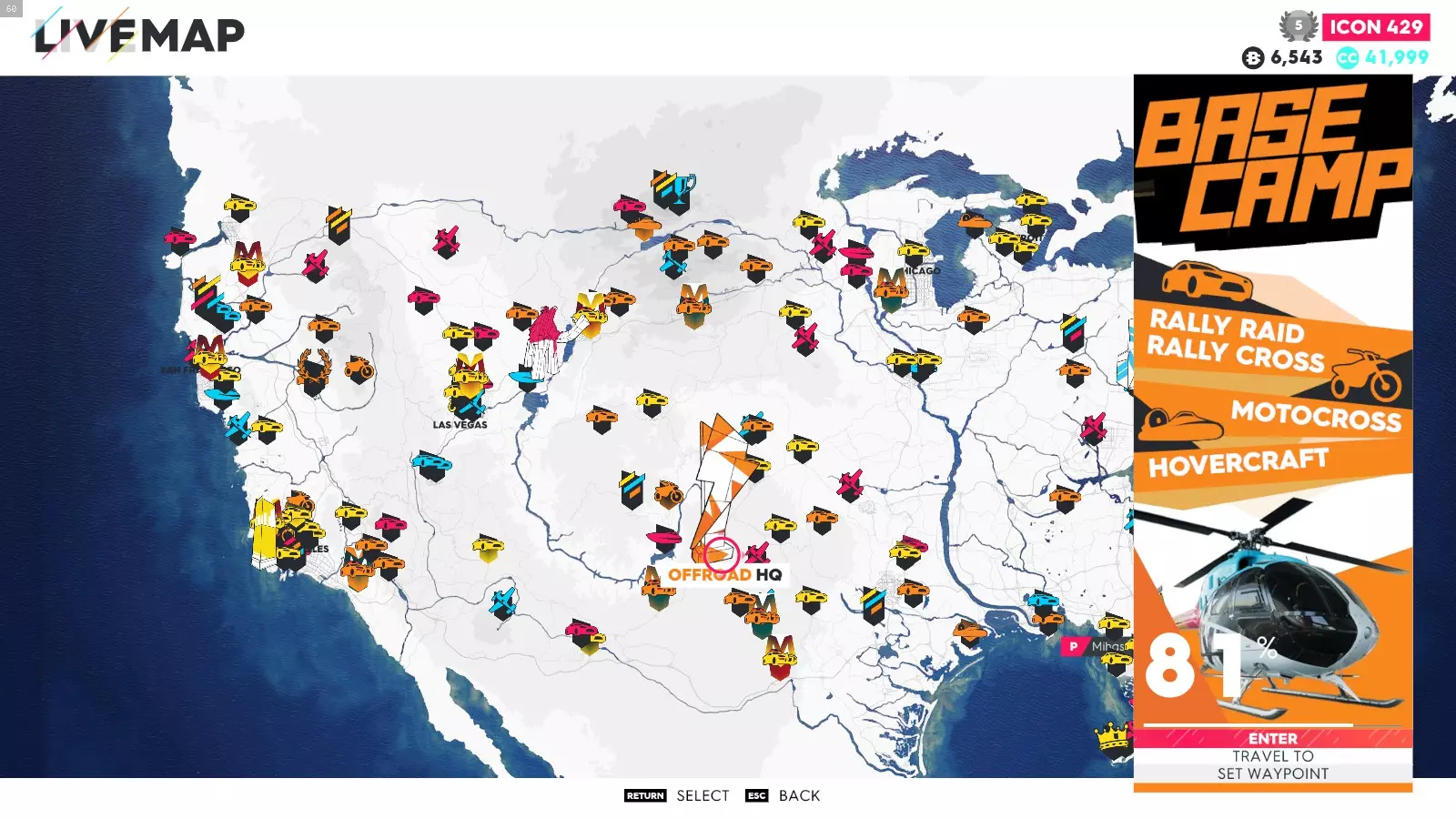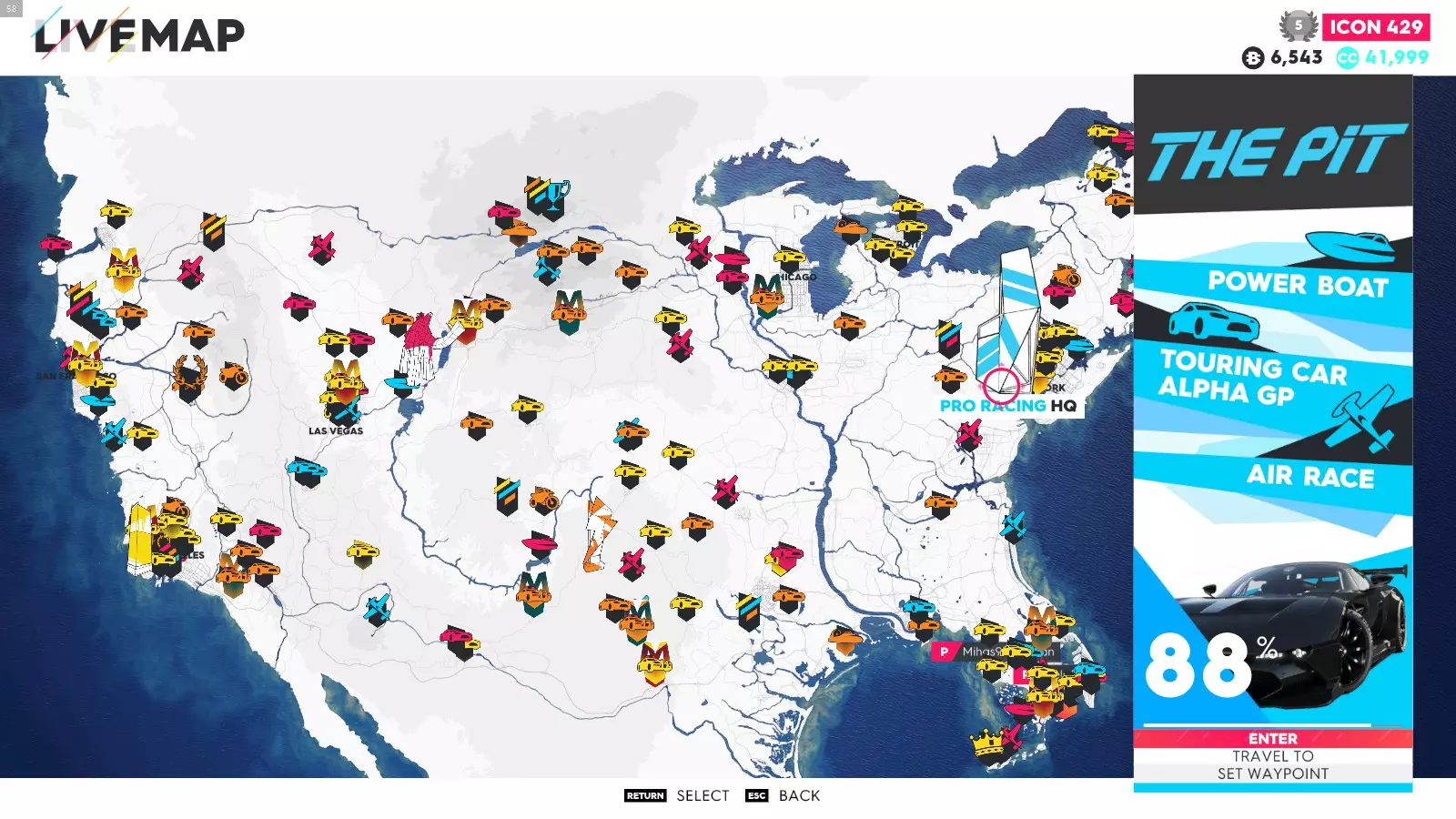 要解锁这些成就,你只需完成极限直播系列赛的所有赛事(1-5以及总决赛——部分玩家无需完成极限特别赛事即可解锁成就)。如果地图上没有显示某个赛事,可能是该赛事仍处于锁定状态,或者你没有所需的载具。在此我会说明如何使用筛选器在地图上找到这些赛事、所需的载具类型以及赛事位置。 如何在地图上轻松找到它们: 打开地图,在底部菜单中你会看到“打开筛选器”按钮。点击该按钮后,会出现一个用于筛选地图上赛事的选项列表。使用导航键选择所需的筛选条件,地图会相应地显示筛选结果。