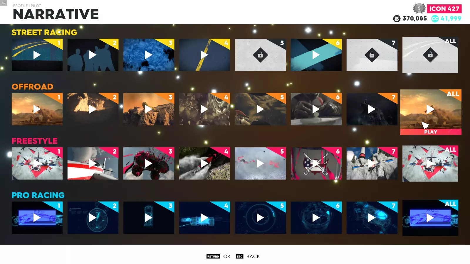 要获得此成就,你需要持续参与任意家族的赛事(街头竞速、专业竞速、自由风格、越野),直至获得所有剧情奖励。若要查看已获得的奖励数量以及观看该成就的剧情合集,需进入飞行员菜单。
