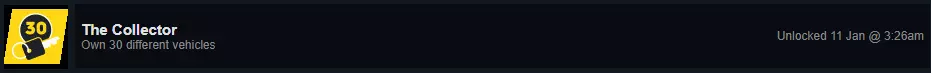 要获得此成就,你只需拥有任意30辆载具 Ride the Jewels
