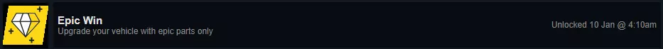 要获得此成就,你需要为任意载具仅装备史诗级(紫色)部件,若装备传说级(黄色)部件则无法达成。