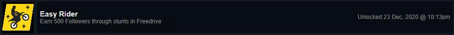 在游戏中累计游玩24小时后你最终会解锁此成就,考虑到加载界面的时间,实际所需时间可能会更长。 轻松骑手