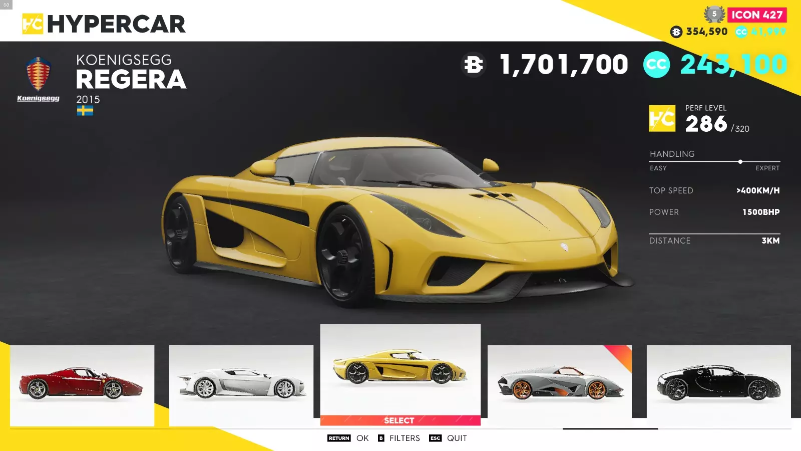 要解锁该成就,你需要驾驶最贵的车辆行驶2公里。这里有个无需花费所有金钱的技巧:在总部选择车辆时使用试驾选项。(在此示例中我展示的是Regera,因为它是游戏本体在更新前最贵的车辆,且我确认通过驾驶它获得了该成就)