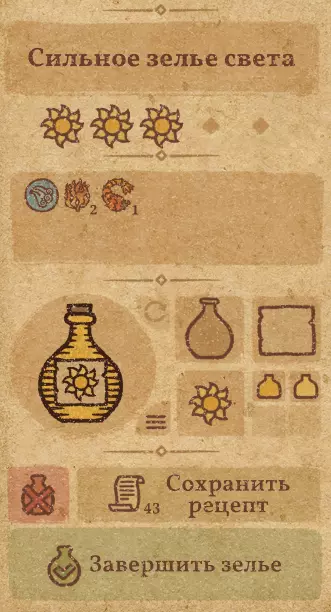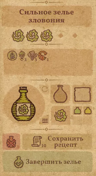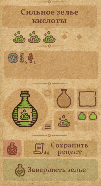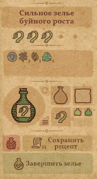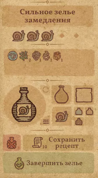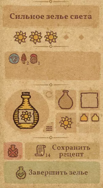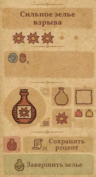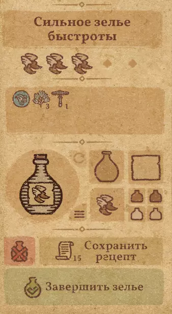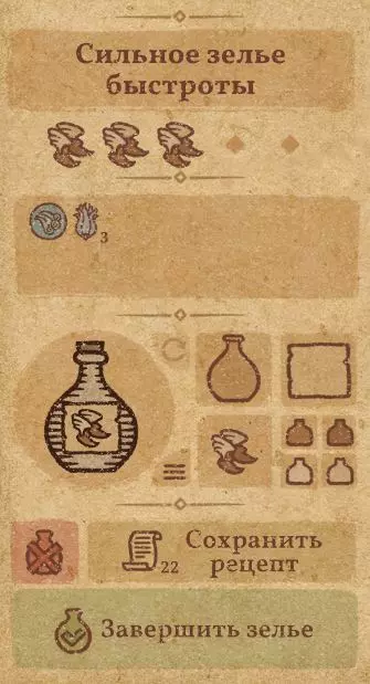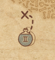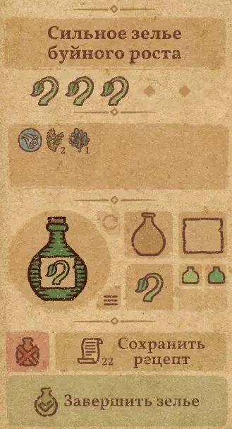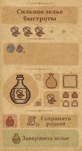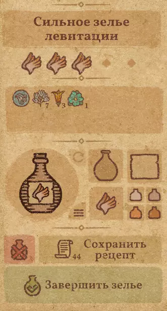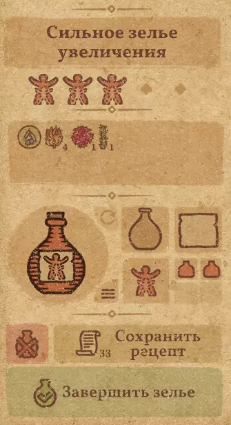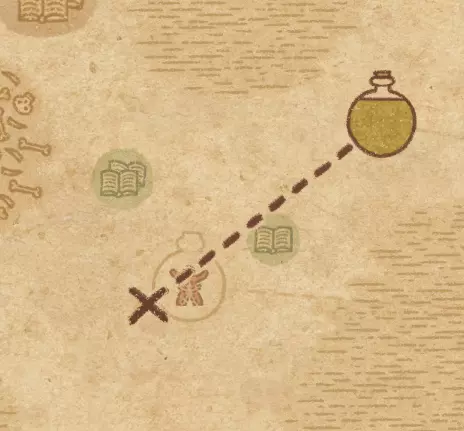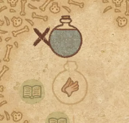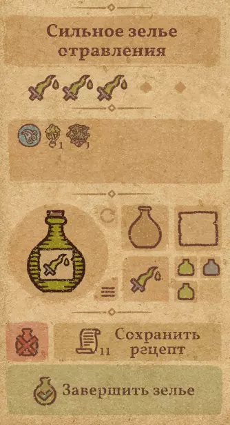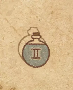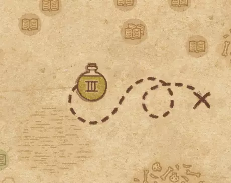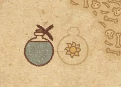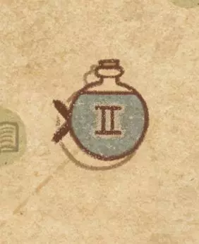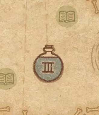 请注意:制作III级药水,有时甚至是II级药水时,需要地图上的药水气泡处于垂直状态(瓶口朝上)。倾斜的瓶子只能制作出I级药水,偶尔能制作出II级药水。(游戏初期无法翻转它们,但随着剧情推进,你将获得此功能) 举个例子: 地图上带有效果的瓶子处于垂直状态时,可以制作I级、II级、III级药水: