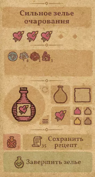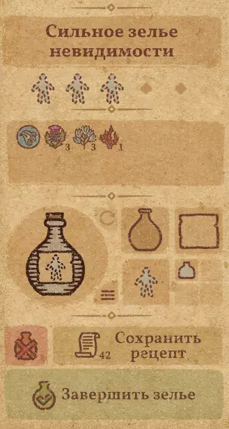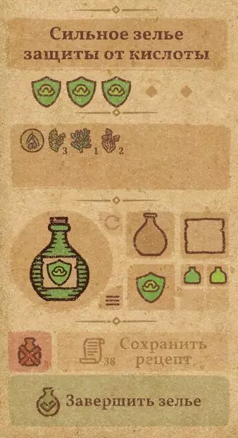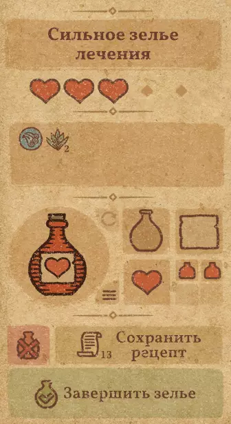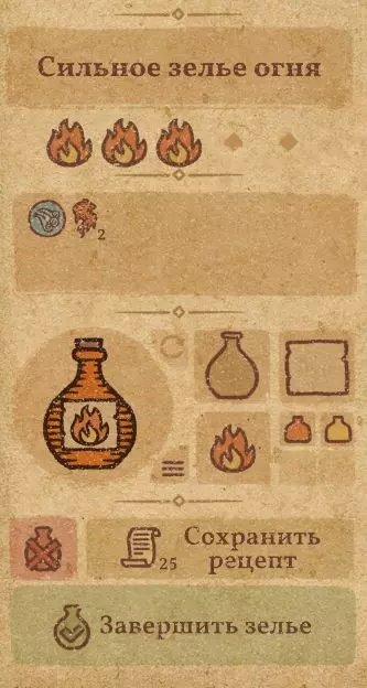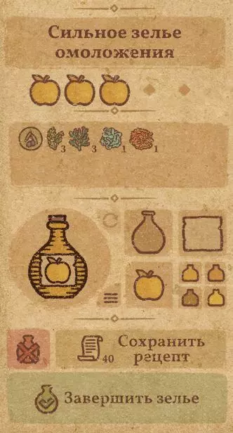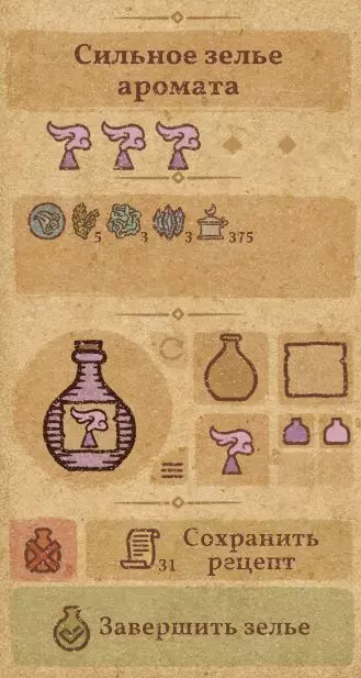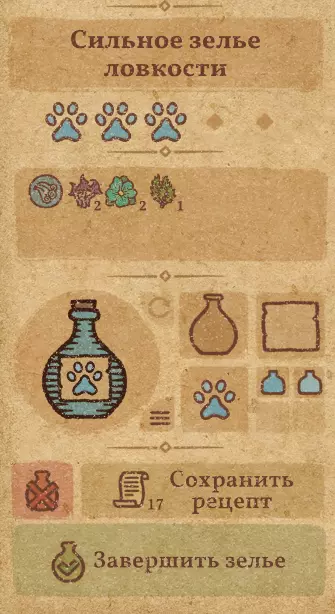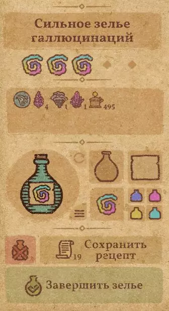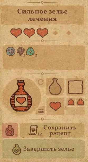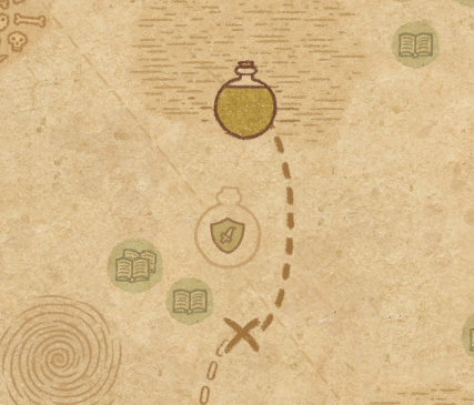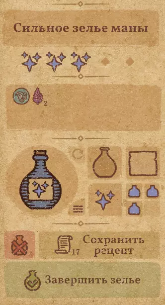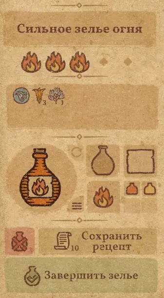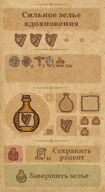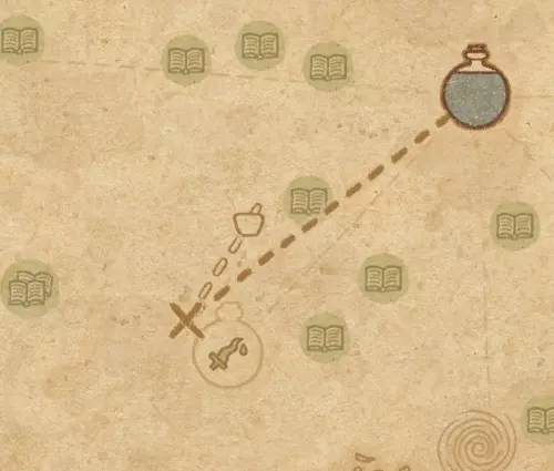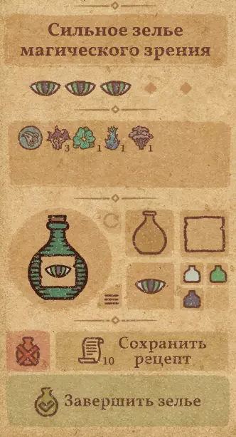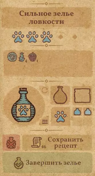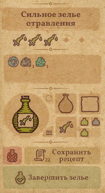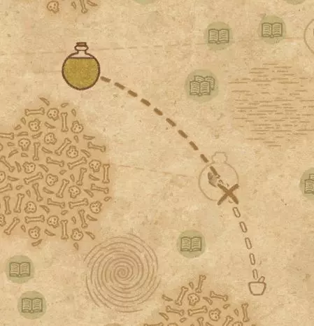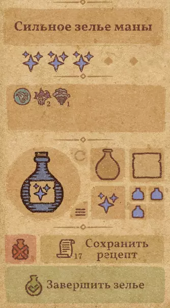 请注意:制作III级药水,有时甚至是II级药水时,需要地图上的药水气泡处于垂直状态(瓶口朝上)。倾斜的瓶子只能制作出I级药水,偶尔能制作出II级药水。(游戏初期无法翻转它们,但随着剧情推进,你将获得此功能) 举个例子: 地图上带有效果的瓶子处于垂直状态时,可以制作I级、II级、III级药水: