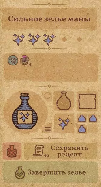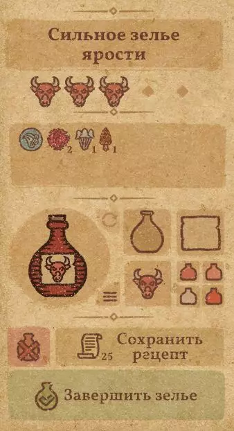 配方: 1. 将两个魔法蘑菇研磨至100% 2. 将一朵水之花同样研磨至100% 3. 将毒蝇伞研磨至与药水齐平的程度(见截图1) 4. 将剩余的水之花也完全研磨(见截图2) 5. 小心地加入水