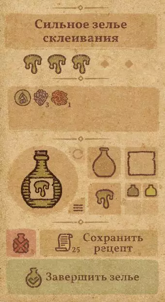 配方: 将三个玻璃容器完全研磨 第四个玻璃容器不研磨直接放入锅中 混合药水(参见截图1) 稍微加入水